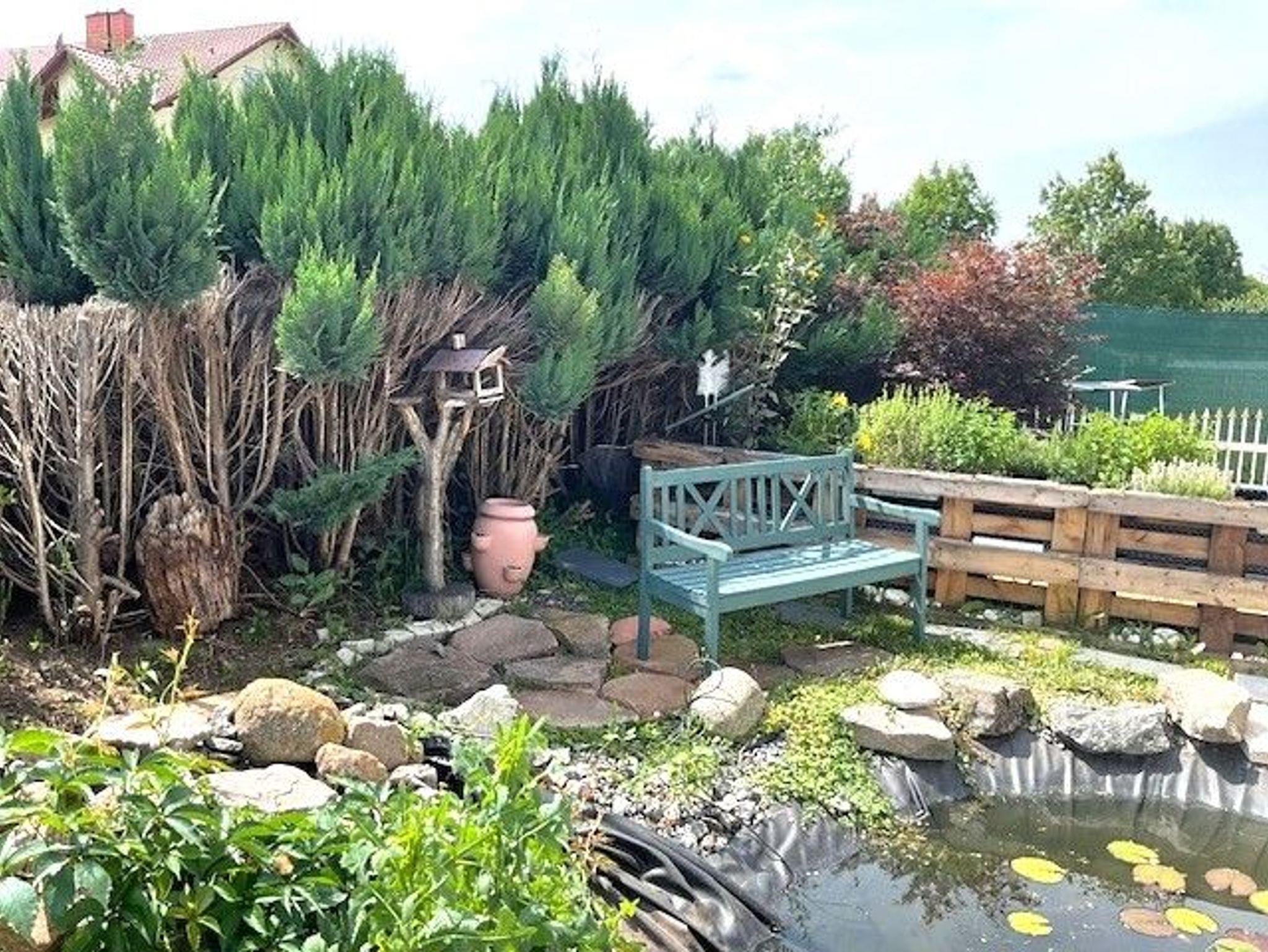 Das Landhaus Klein bietet Ihnen eine hochwertig ausgestattete Wohnfläche von 120 qm, eine teilüberdachte Terrasse sowie zwei Stellplätze und eine Garage für Ihr(e) Fahrzeug(e). Ein Teich mit Bachlauf befindet sich vor dem großen Wohnzimmerfenster.