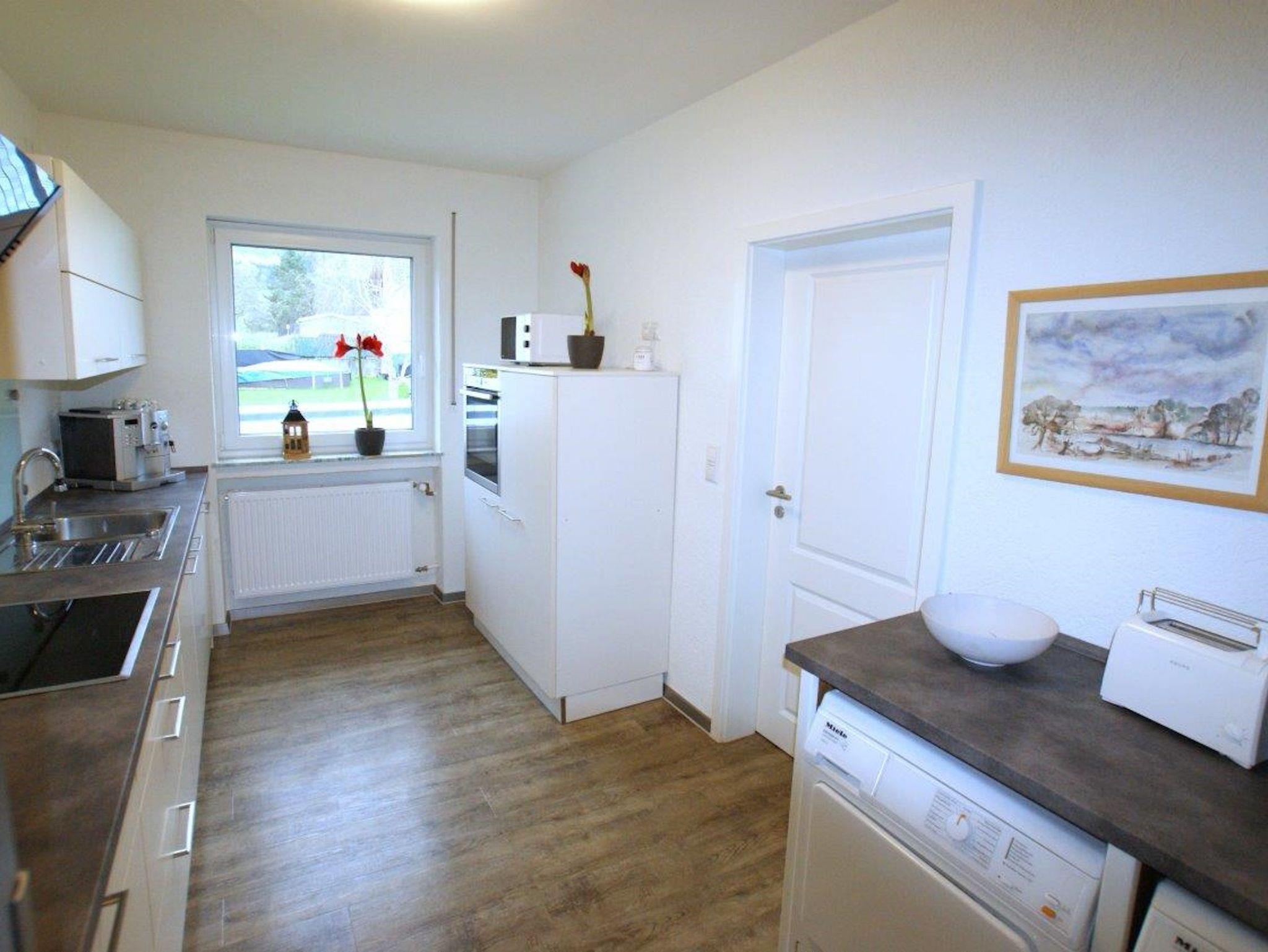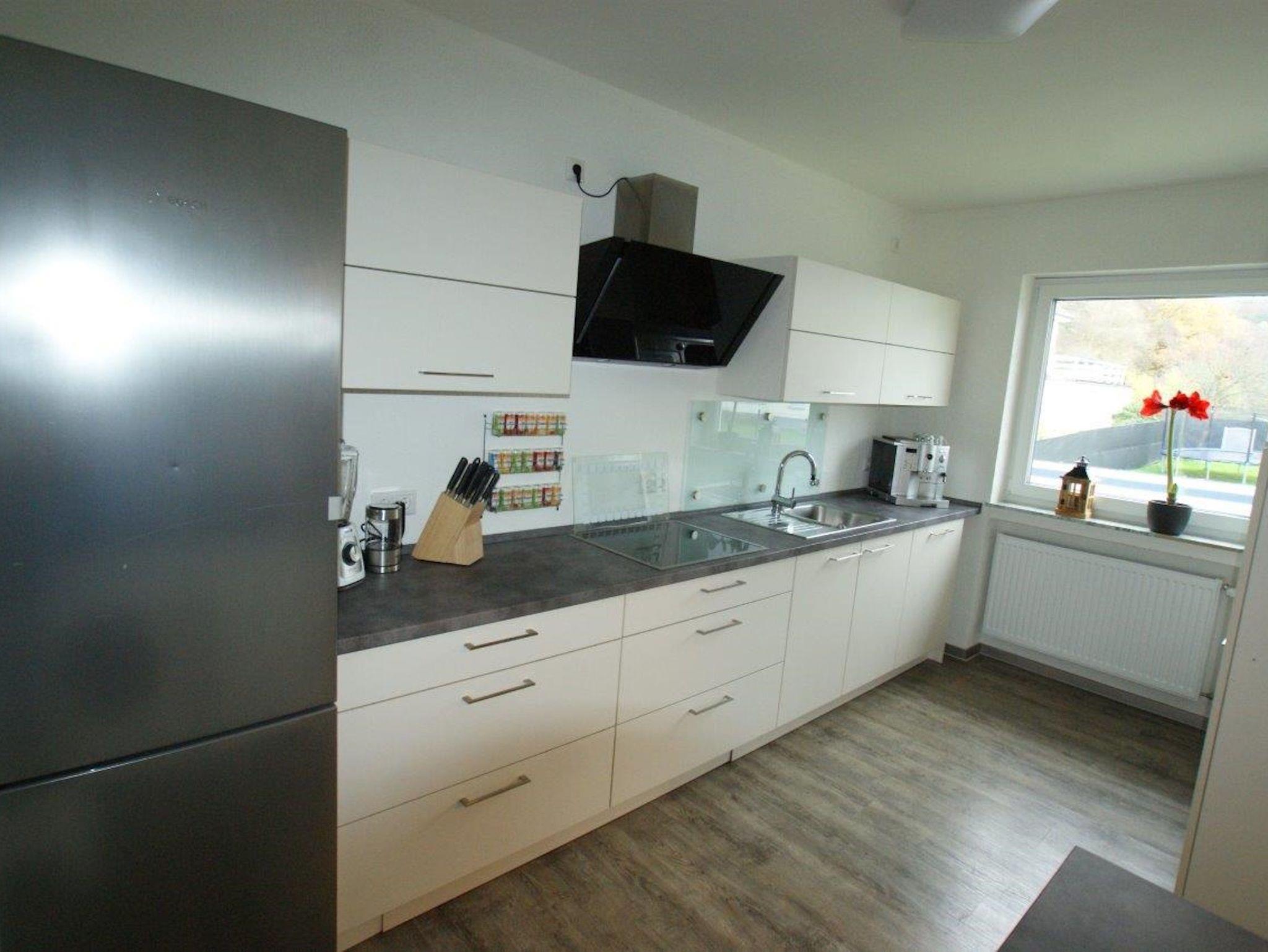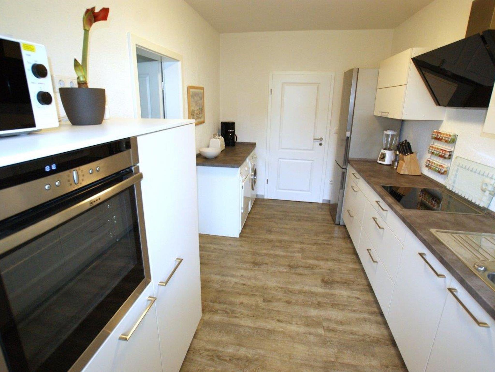 Die Einbauküche ist mit Induktionskochfeld, Spülmaschine, Kühl- und Gefrierschrank, Backofen, Kaffee- und Espressoautomat, Mikrowelle, Toaster, Mixer und weiteren Geräten sowie einer Waschmaschine nebst Trockner ausgestattet. Eine Grundausstattung an Küchenutensilien ist selbstverständlich vorhanden.