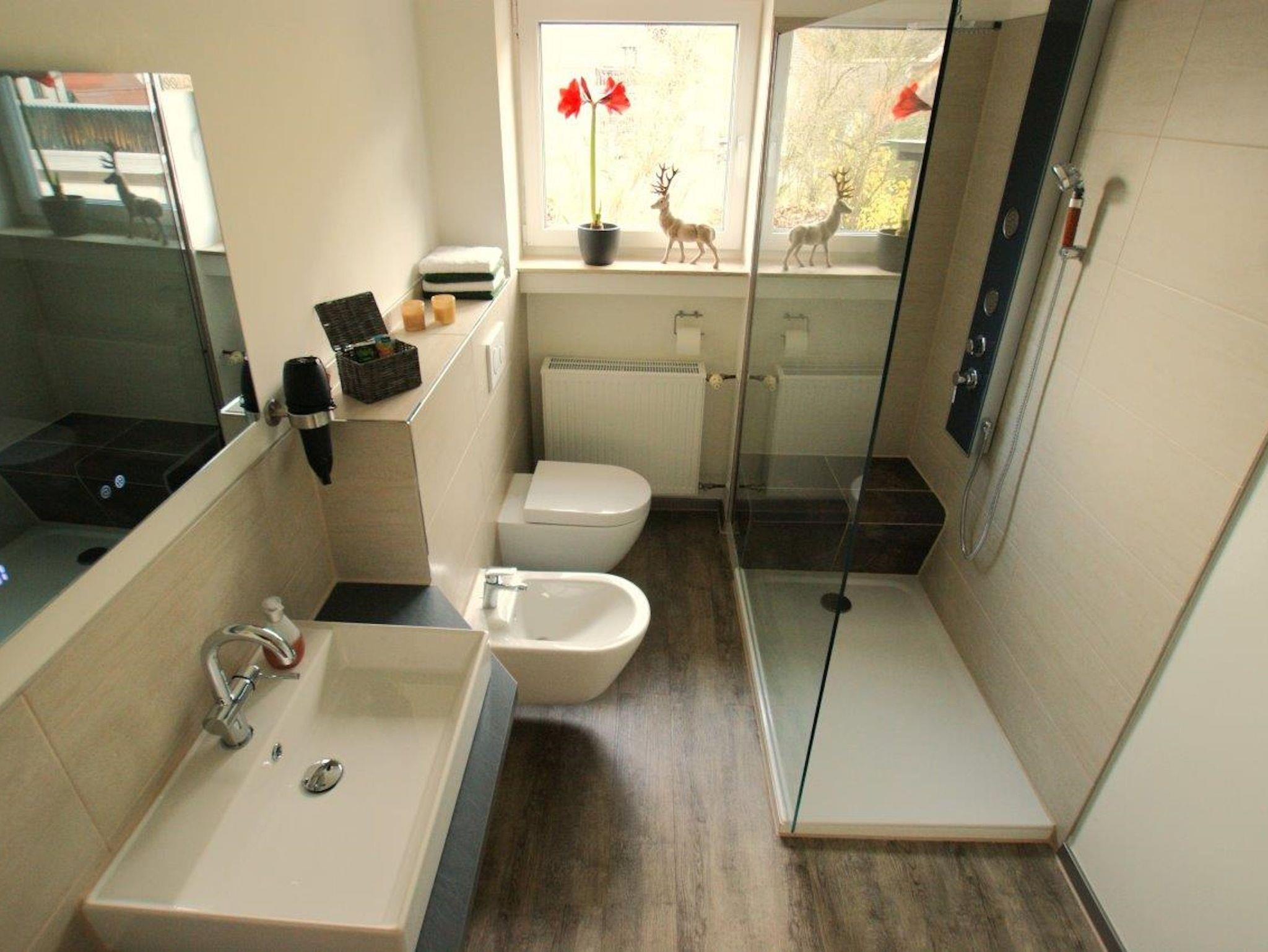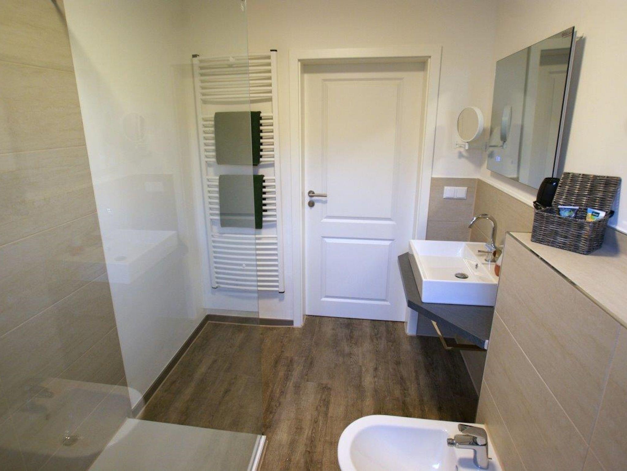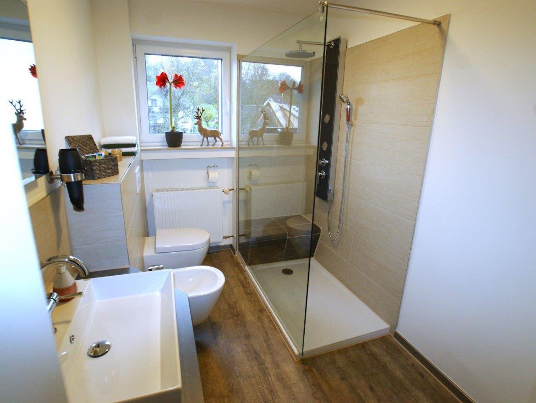 Das modern ausgestattete Duschbad mit Bidet, WC, beheiztem Spiegel und den kleinen Annehmlichkeiten wie Fön, Make-Up-Spiegel liegt zwischen den beiden Schlafzimmern. Beide Schlafzimmer sind mit jeweils einem bequemen Doppelbett von 180 x 200 cm, viel Platz für Ihre Kleidung und sonstigem Interieur ausgestattet. In dem linken Schlafzimmer sind elektrisch verstellbare Sprungrahmen sowie ein Fernseher nebst Spielekonsole eingerichtet.