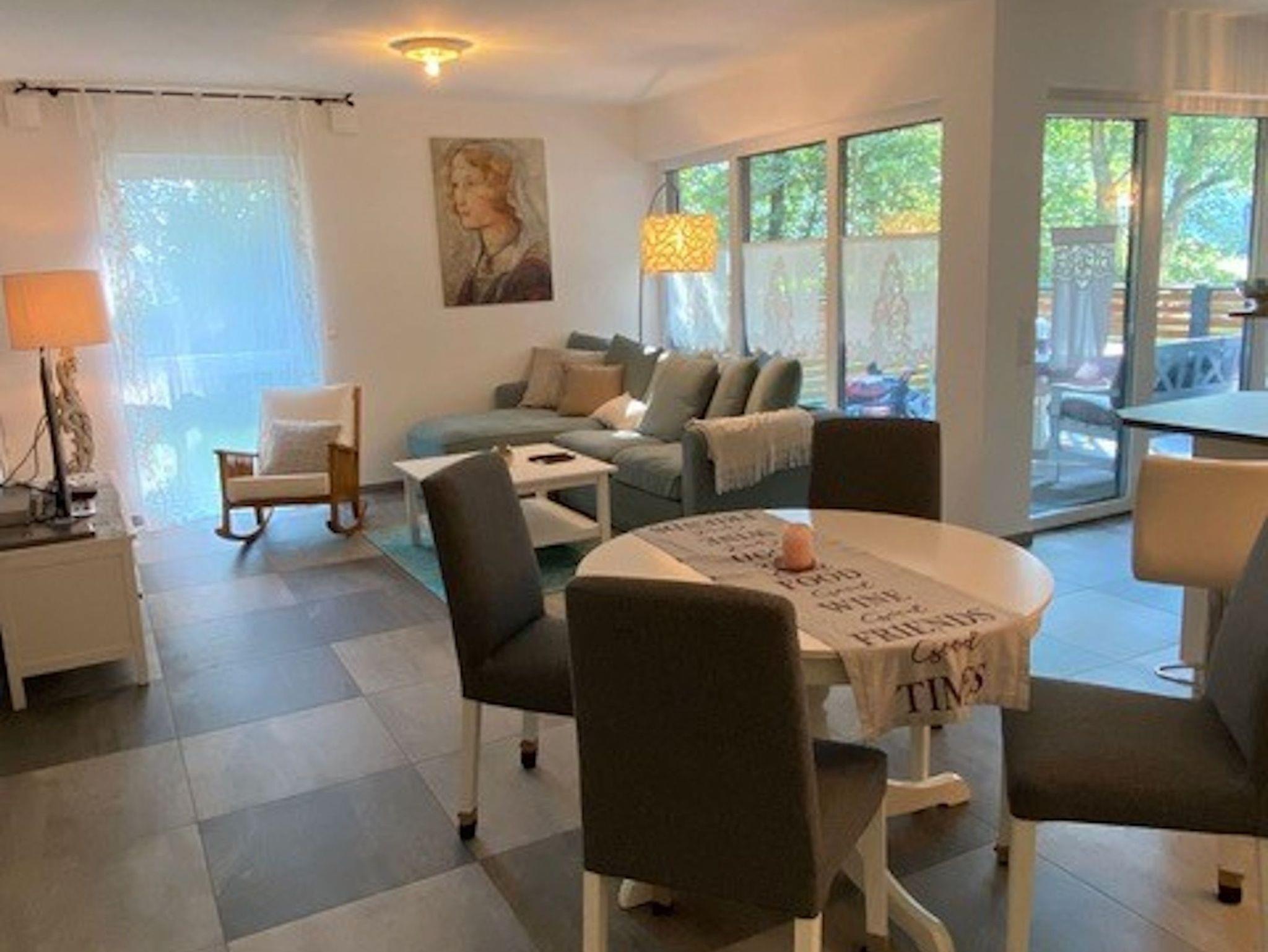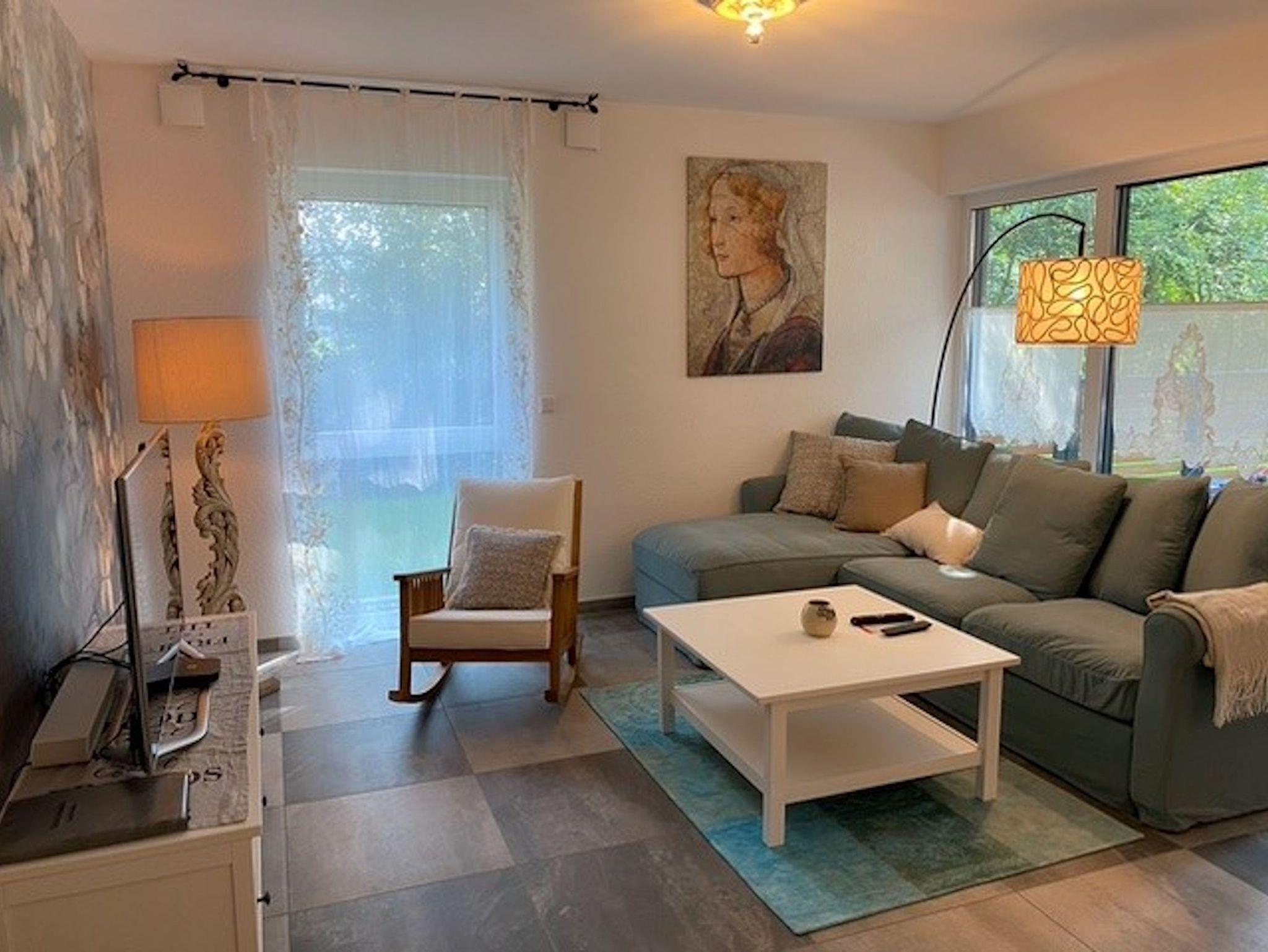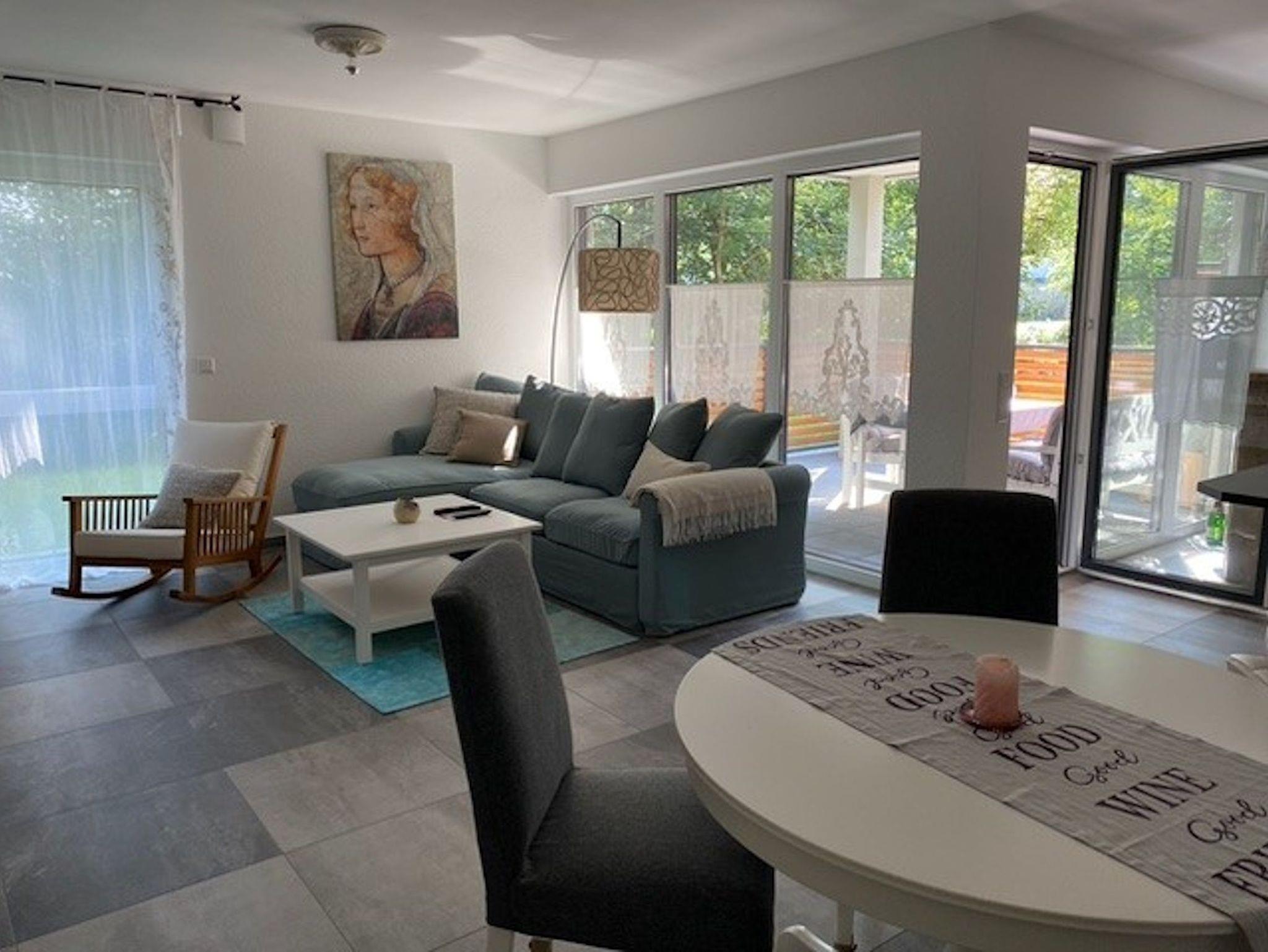 Aussergewöhnlich schöne Erdgeschosswohnung im Stadtzentrum von Erbach mit Terrasse und Garten direkt am Mümlingufer. Die barrierearme Neubauwohnung befindet sich 5 Gehminuten entfernt von Erbacher Altstadt und Einkaufsmeile und liegt gleich um die Ecke des Alexanderbades (Freibad). Radwege beginnen praktisch hinter dem Haus an der anderen Seite der Mümling entlang und die Wohnung verfügt über einen eigenen E-Bike Ladestellplatz. Auch der zugehörige Carport Stellplatz verfügt über eine E-Auto Lademöglichkeit (Steckdose). Der Erbacher Bahnhof ist ca. 15 Gehminuten entfernt. Die Wohnung verfügt über eine voll ausgestattete offene Küche, einen Waschtrockner und eine große begehbare Dusche. Das separate Schlafzimmer hat ein Bett von 180x200 cm. Das Schlafsofa im Wohnzimmer mit eigener Matratze und Bettkasten hat eine Größe von 140x200 cm. WLAN steht kostenlos zur Verfügung.