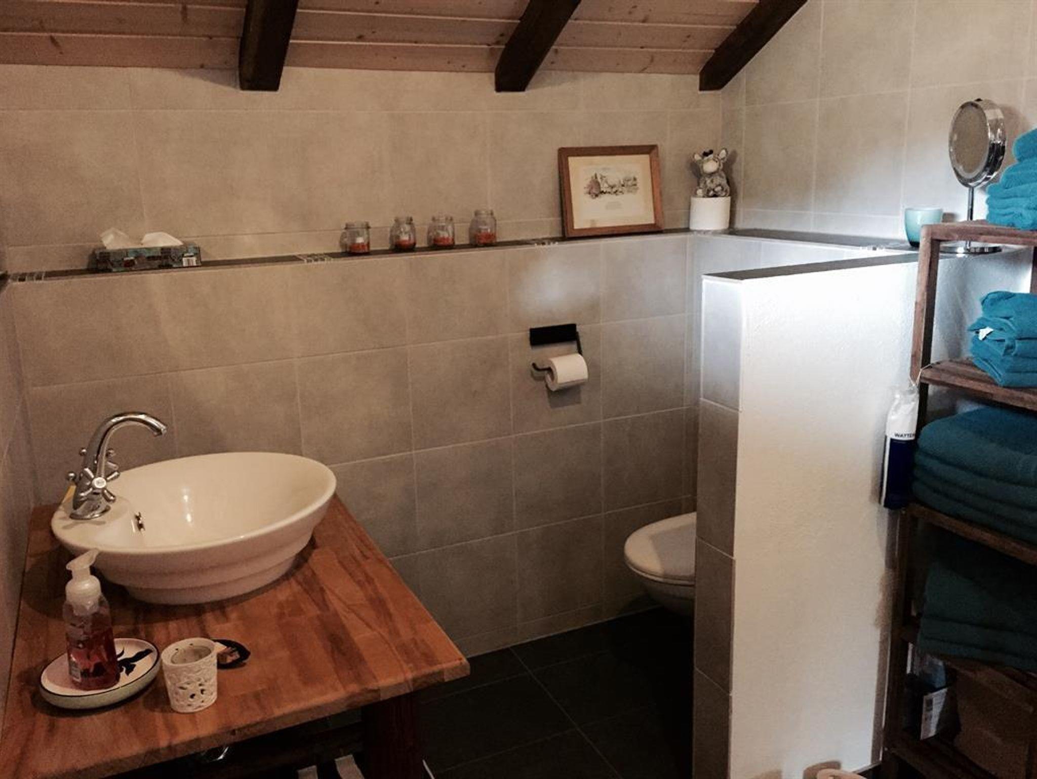 Unsere Unterkunft bietet Platz für bis zu 6 Personen und verfügt über ein modernes Bad, eine komplett ausgestattete Wohnküche mit Holz- und Elektroherd und eine Frühstücksterrasse.