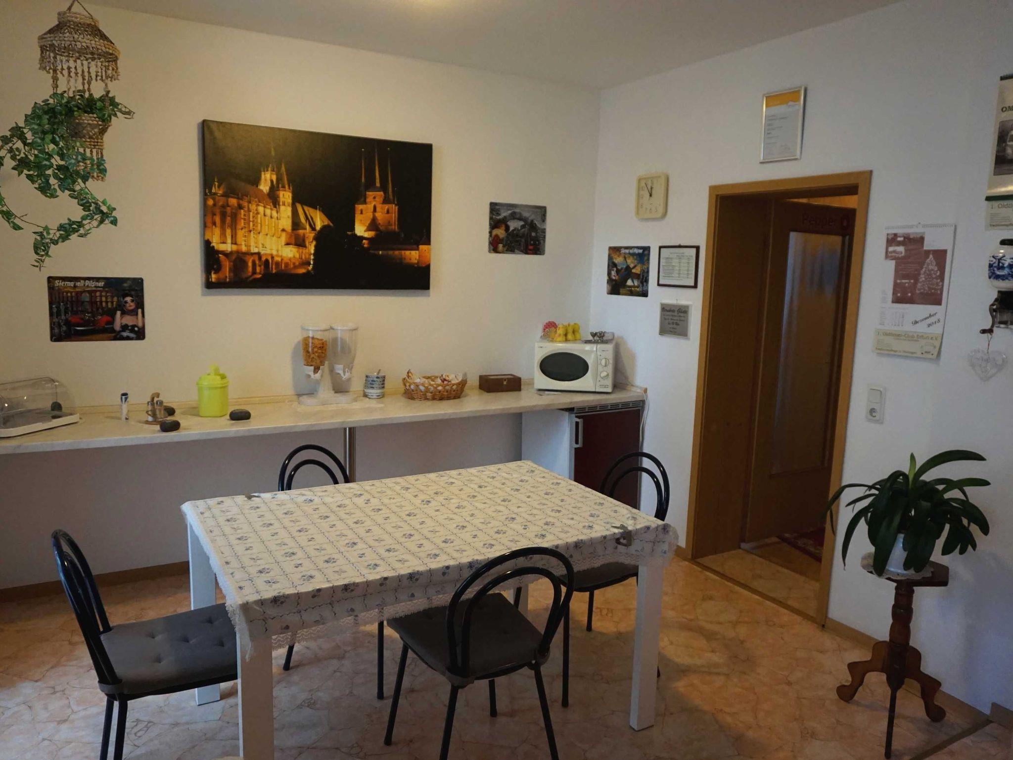 Unser Haus liegt zentrumsnah und verfügt über eine sehr gute Anbindung an den öffentlichen Nahverkehr. Auch Veranstaltungsorte wie Messehalle, Thüringenhalle, Dom und Theater liegen unweit unserer Gästezimmer. Wir verfügen über 2 Gästezimmer für je 2 Personen und eine Ferienwohnung.Eine Aufbettung in den Gästezimmern ist jeweils für eine 3. Person möglich. Das Frühstück für 8,00 € pro Person ist vor Ort gern zubuchbar