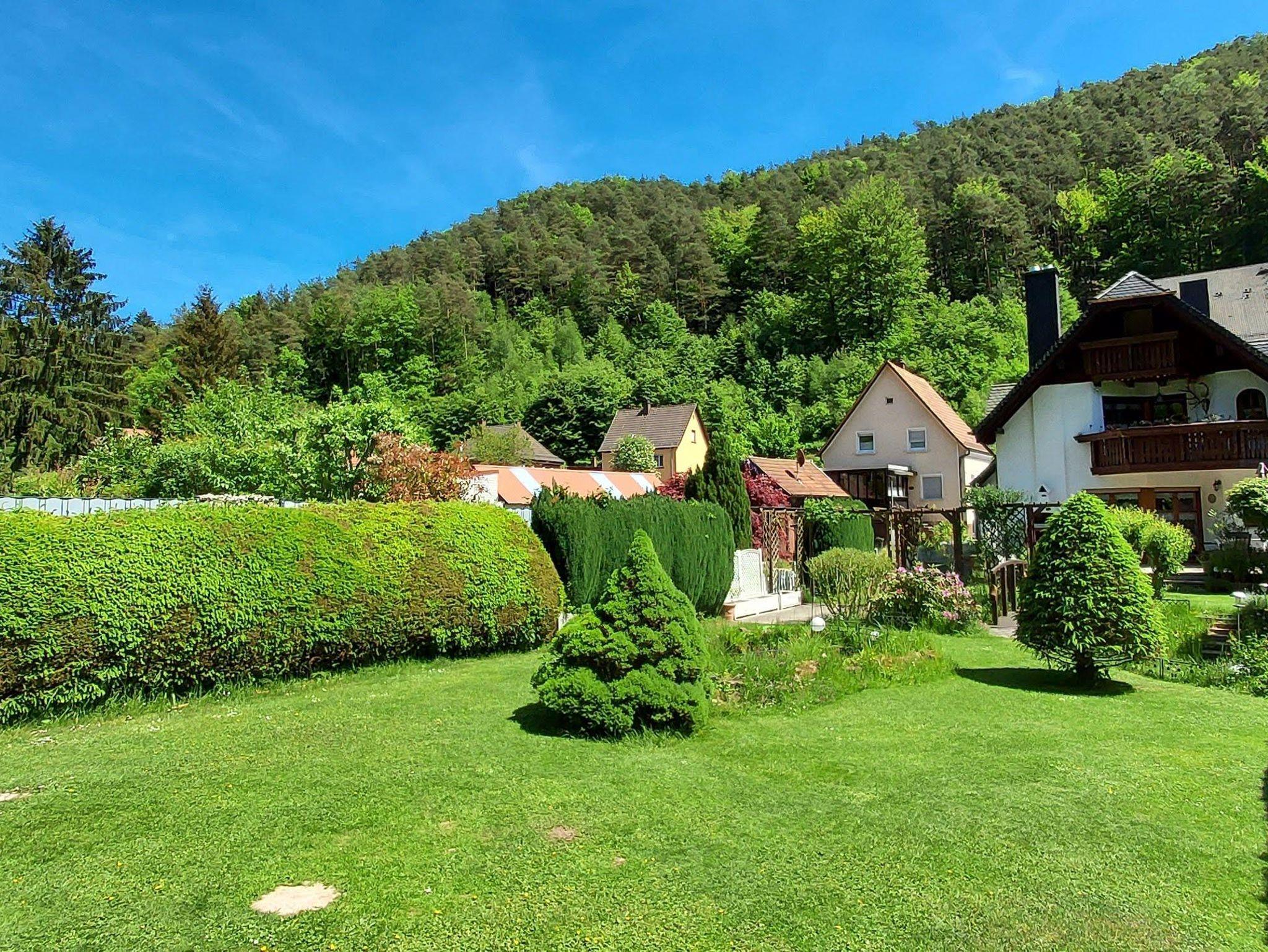 Es erwartet Sie ein Idyll am klaren Eibach mit Liegewiese, Gartenteich, Terrasse und Grillkamin.