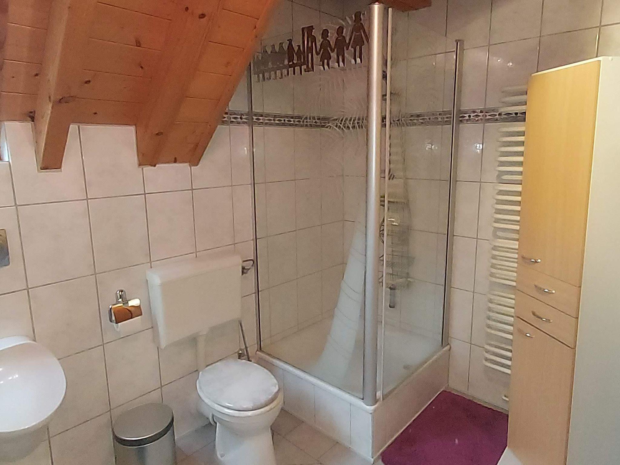 Neben dem Badezimmer mit Dusche und WC befindet sich auch ein Gäste-WC.