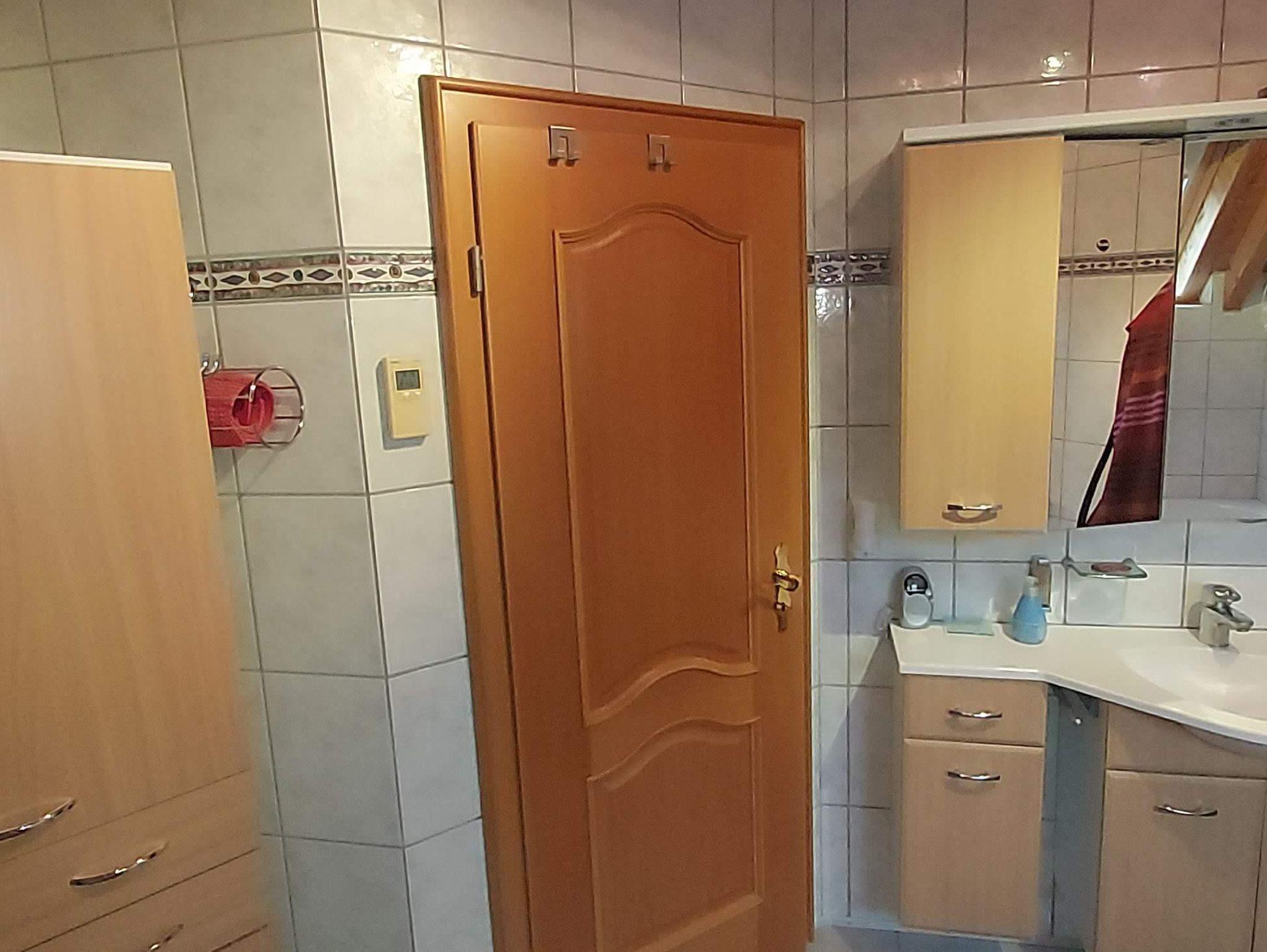 Es gibt ein Schlafzimmer mit Doppelbett ( 2 x 2 m) und ein Schlafzimmer im Dachgeschoß mit Doppelbett (2 x 1,8 m) und eigenem WC.