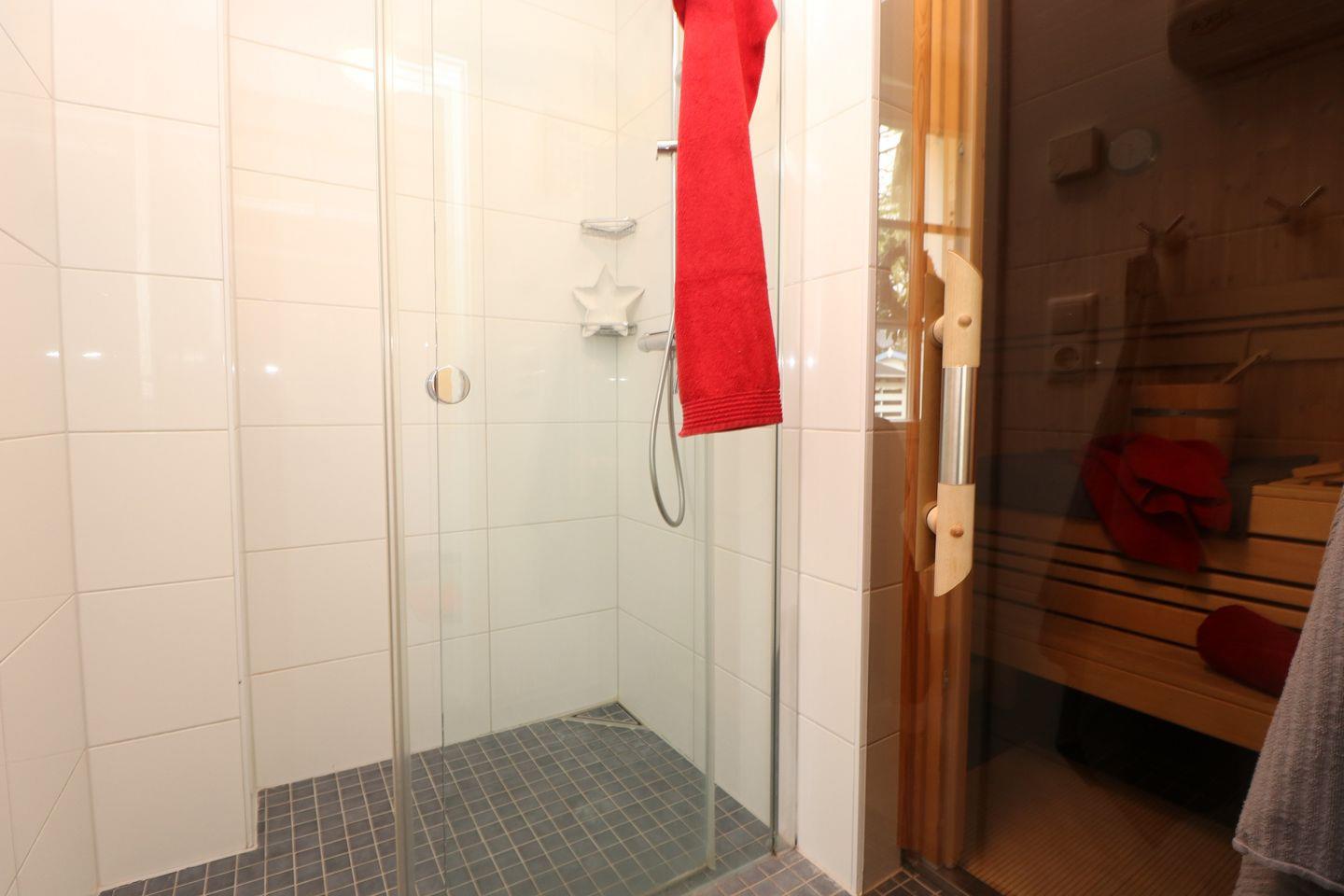Für besondere Wohlfühlmomente steht Ihnen eine eigene Sauna zur Verfügung – ideal, um nach einem langen Spaziergang entlang des Boddens oder einem aktiven Tag an der frischen Ostseeluft zu entspannen.