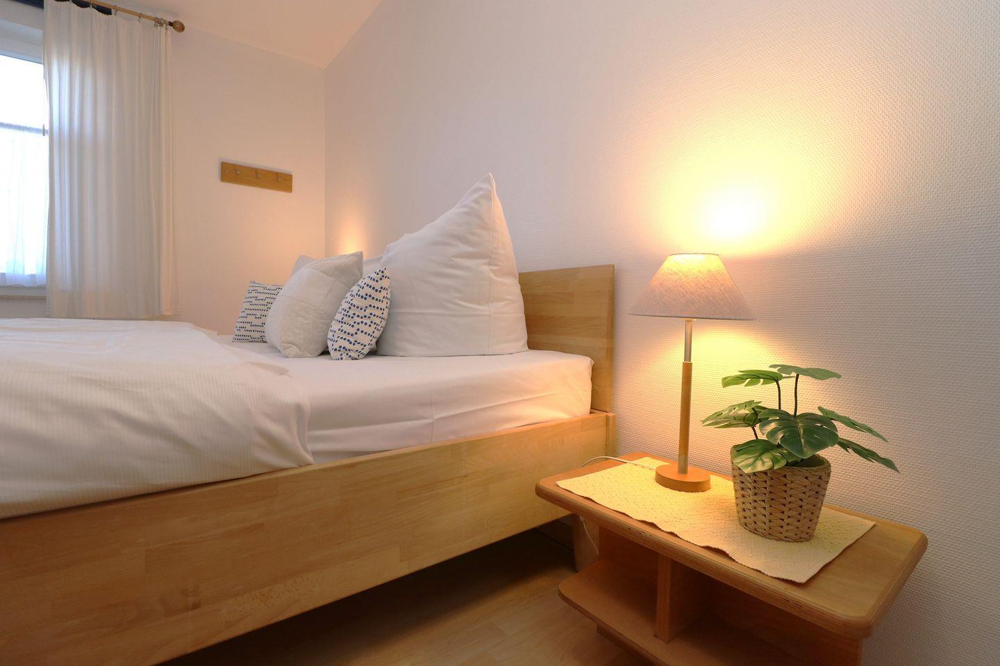 Zwei separate Schlafzimmer bieten ausreichend Platz für Familien oder Freunde: ein Zimmer mit komfortablem Doppelbett sowie ein weiteres mit zwei Einzelbetten – ideal für Kinder oder zusätzliche Gäste.