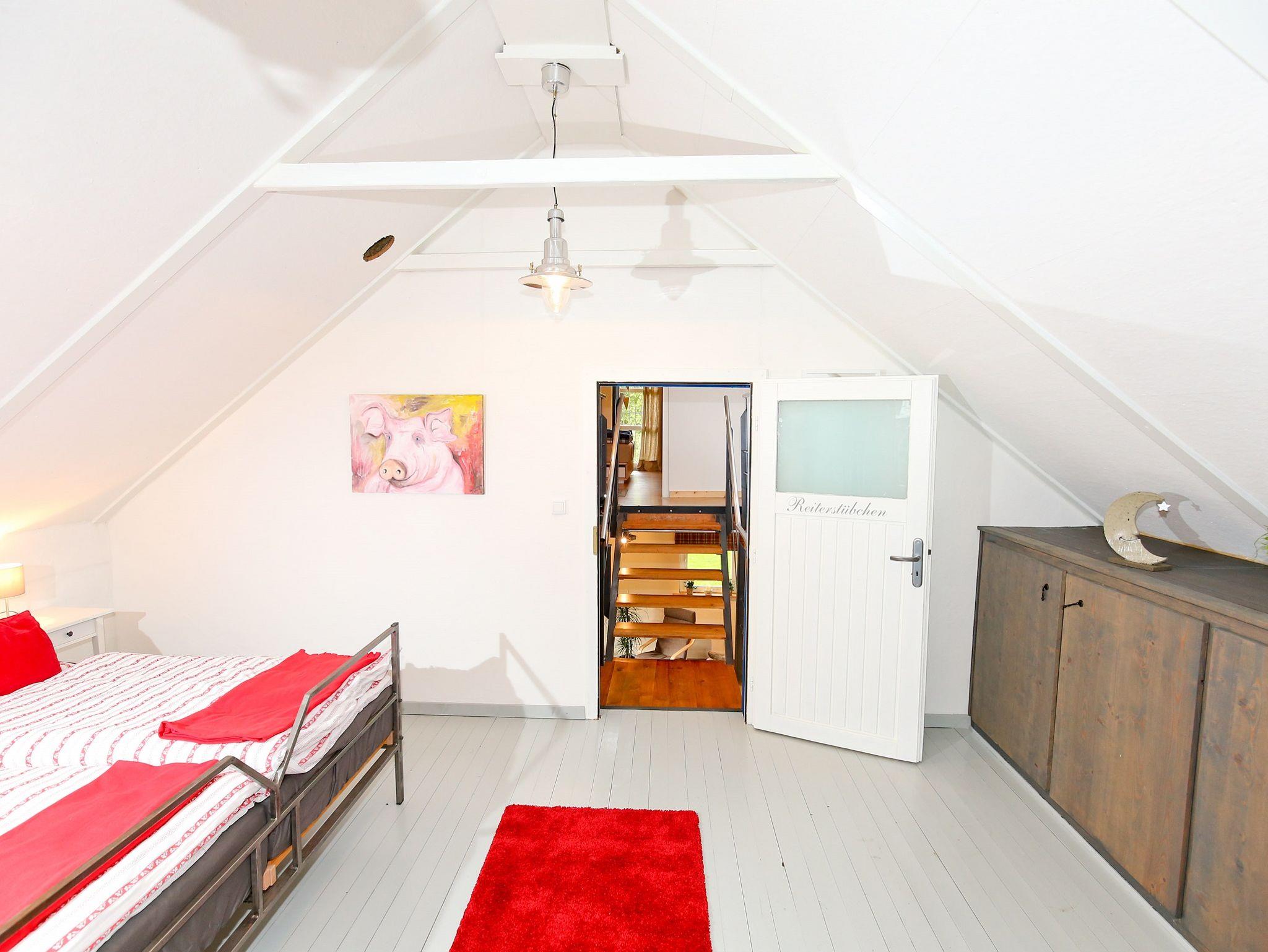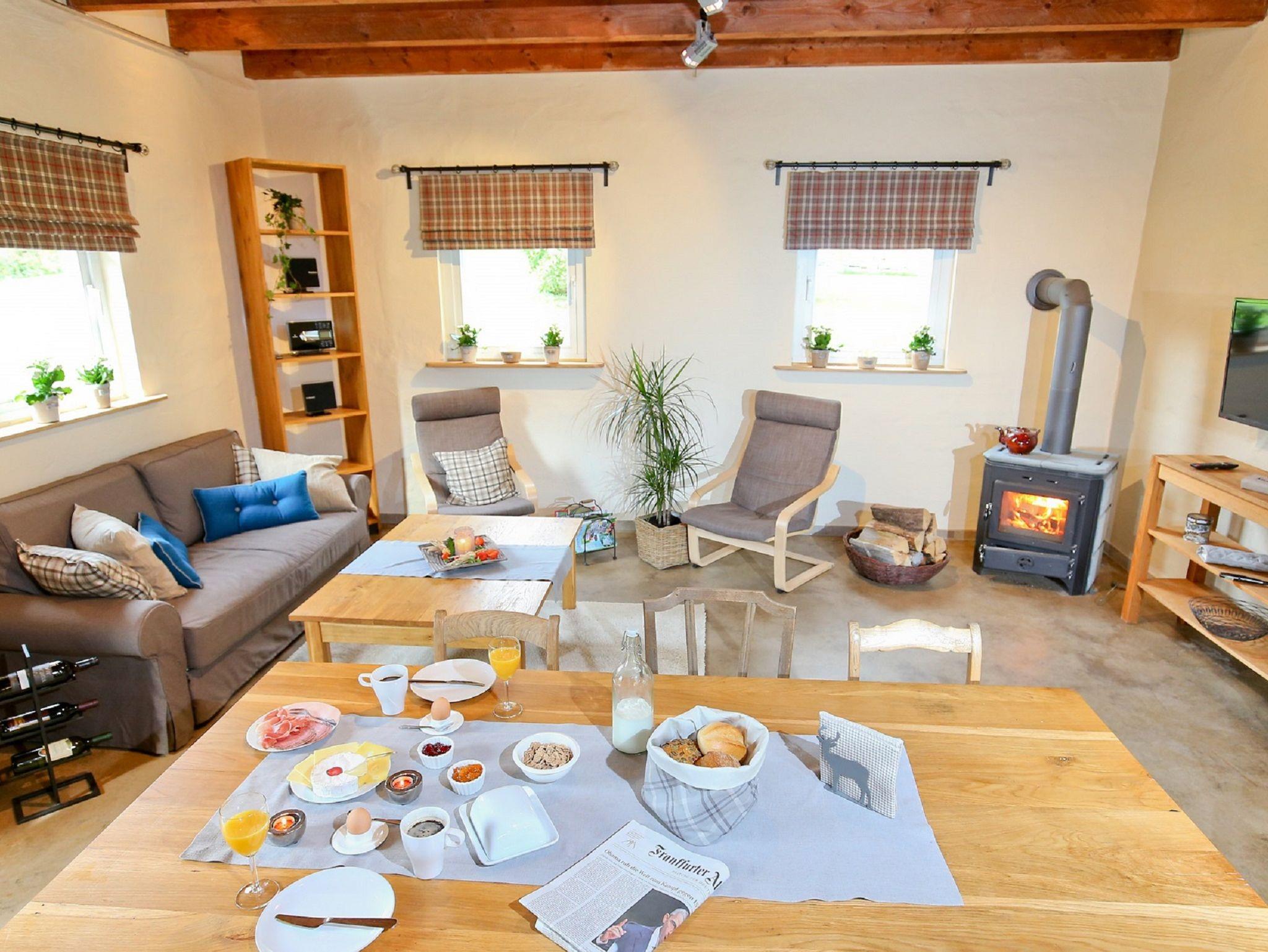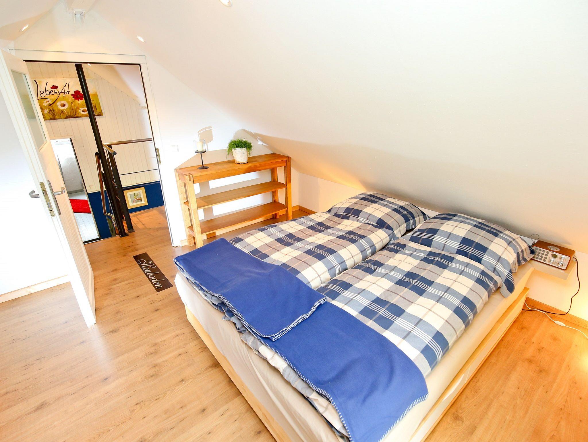 Auf 120?m² bietet das Ferienhaus komfortablen Raum für bis zu sechs Personen. Der großzügige Wohn- und Essbereich ist mit Fußbodenheizung, Pellet-Ofen, bequemen Sitzmöbeln, einem Schlafsofa sowie einem Esstisch ausgestattet und lädt zum Verweilen ein. Zwei gemütliche Schlafzimmer im Obergeschoss, jeweils mit Doppelbett und eigenem Fernseher, sorgen für erholsamen Schlaf. Die voll ausgestattete Küche lässt keine Wünsche offen und im modernen Bad mit ebenerdiger Dusche, Fußboden- und Infrarotheizung beginnt und endet Ihr Urlaubstag entspannt. Eine große überdachte Terrasse, ein Parkplatz direkt am Haus und eine sichere Abstellmöglichkeit für Fahrräder oder E-Bikes ergänzen das Angebot. WLAN, Bettwäsche, Hand- und Küchentücher sowie Pellets für den Ofen sind im Preis inbegriffen.