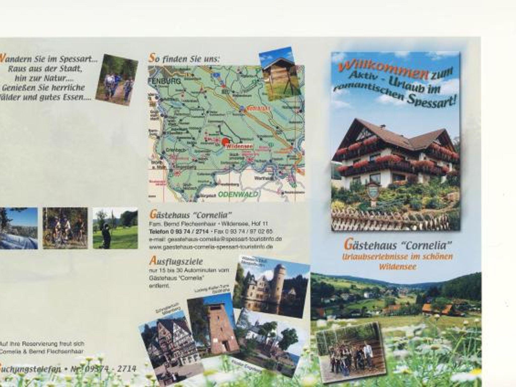 Unsere Privatpension Gästehaus Cornelia ist idyllisch im Herzen des Naturpark Spessart ist Wildensee gelegen. Der staatlich anerkannte Luftkurort bietet beste Vorraussetzungen für einen erholsamen Aufenthalt. Der Spessart, das größte Laubwaldgebiet in Deutschland, zeigt sich als wahres Urlaubsparadies für Wanderfreunde. Seine unberührte Natur lädt zu entspannenden Spaziergängen oder ausgedehnten Wanderungen durch reizvolle Täler und sonnige Lichtungen ein.