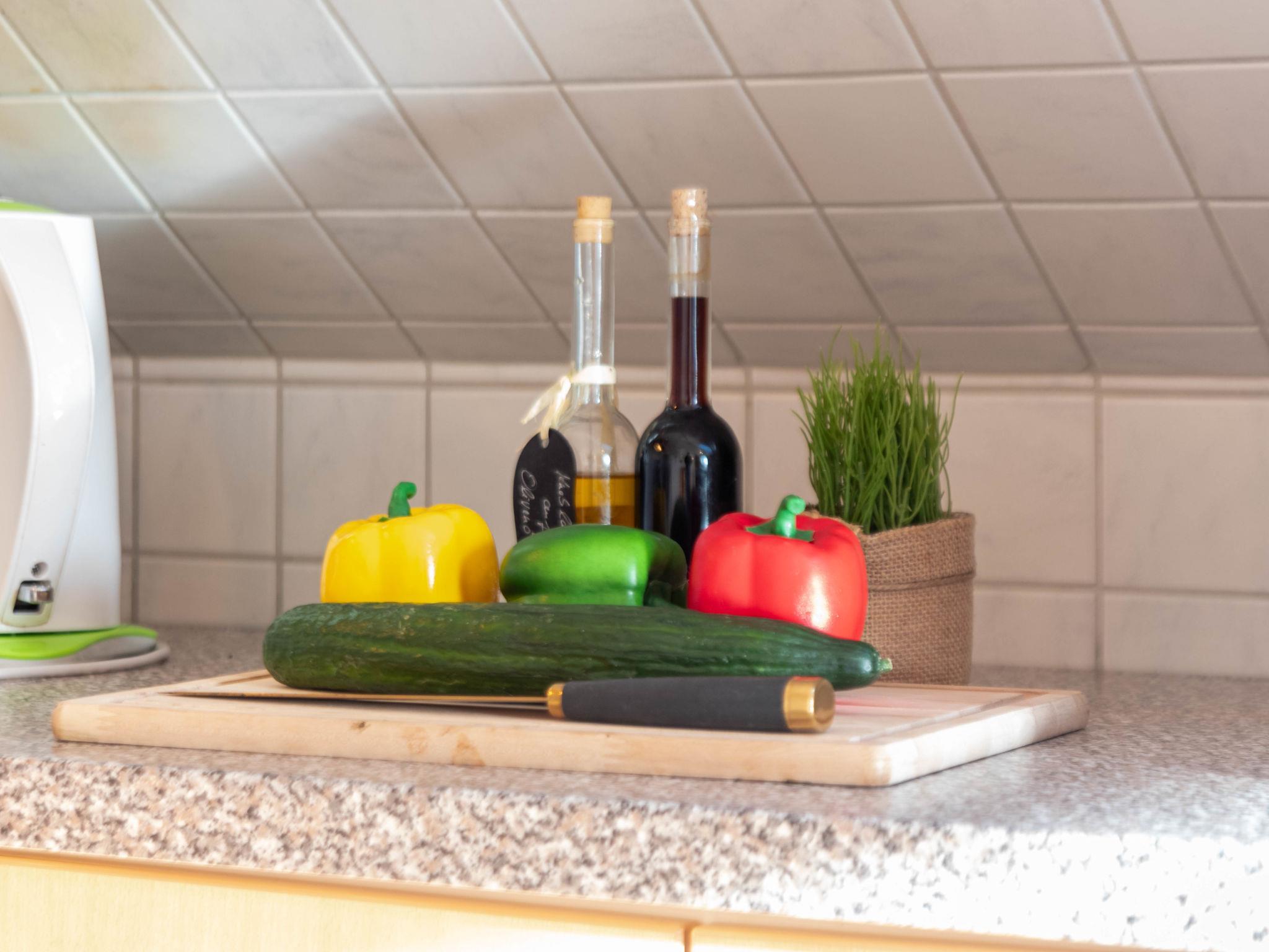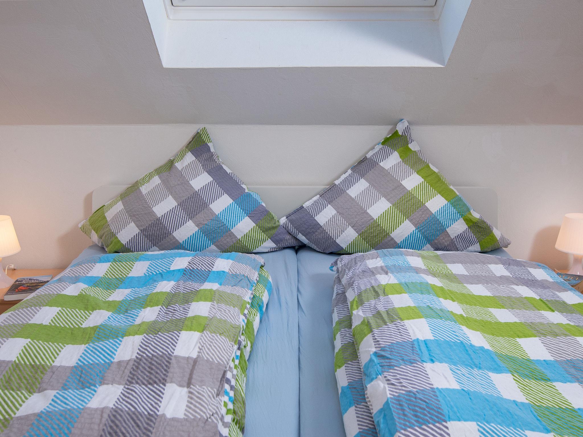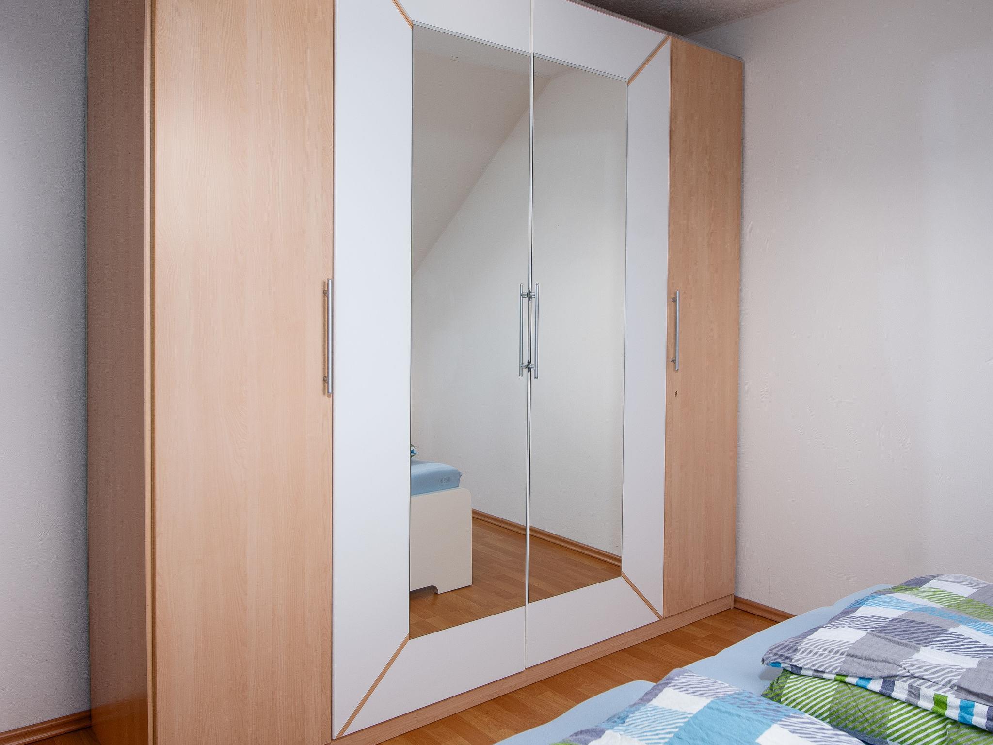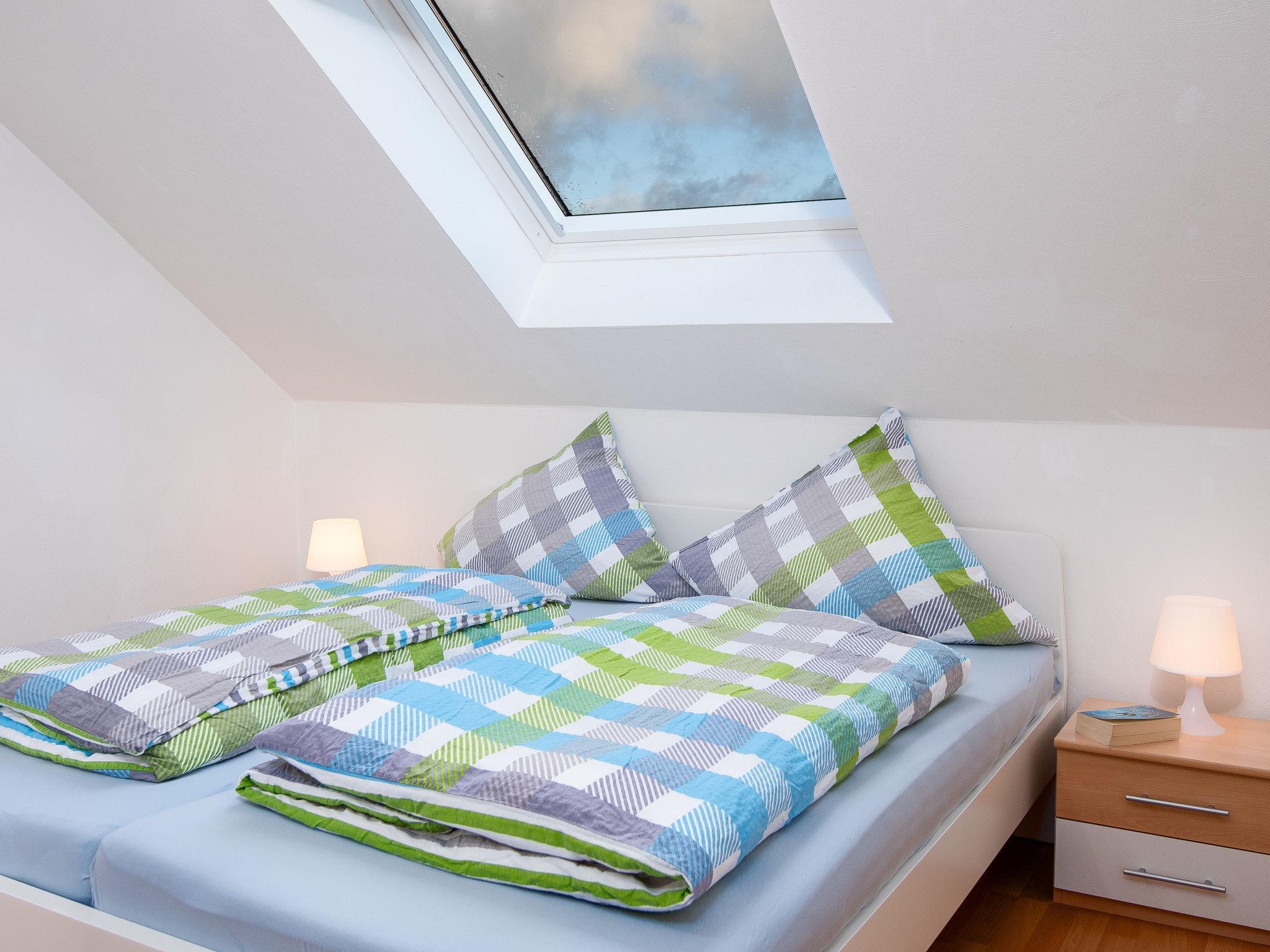 2-room apartment 55 m2 on 1st floor. Object suitable for 2 adults + 1 child. With sloping ceilings, cosy furnishings: living/dining room 24 m2 with 1 sofabed (140 cm, length 200 cm), satellite TV (flat screen), CD-player. Exit to the balcony. 1 room 11 m2 with 1 double bed (2 x 90 cm, length 200 cm). Kitchenette (4 hot plates, oven, microwave, electric coffee machine). Shower/WC. Large balcony, south facing position. Balcony furniture. Facilities: children's high chair. Internet (WiFi, free). Blu-ray player. Please note: non-smokers only. Smoke alarm.
