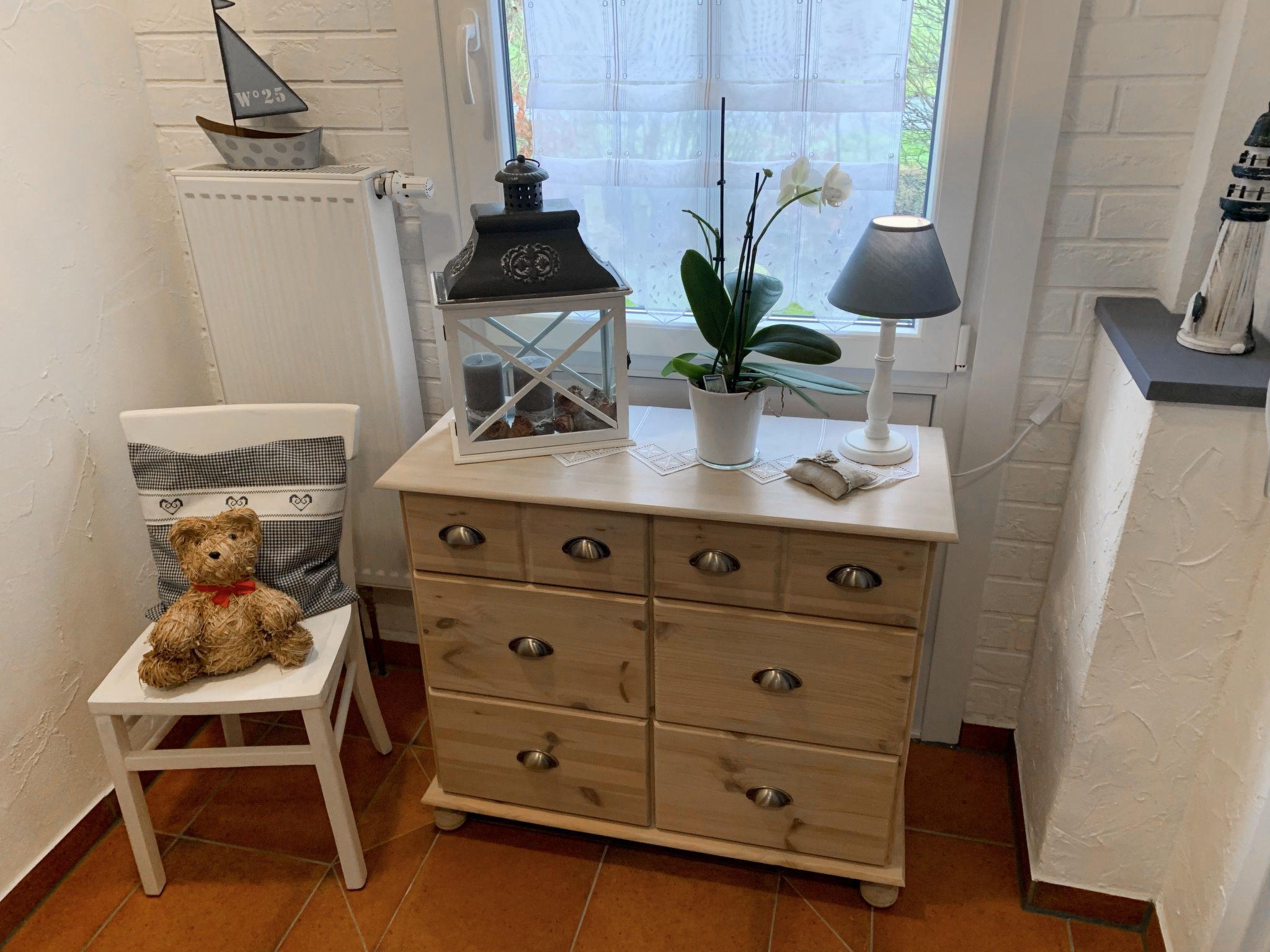 Beautiful cottage "Witten". In the district of Moorweg, on the outskirts, 6 km from the centre of Esens, in a secluded position, 9 km from the sea, 9 km from the beach. Private: large garden with lawn and flowers. In the house: storage room for bicycles, central heating system. Parking (for 2 cars) at the house. Shop 6.5 km, grocery 6.5 km, bakery 4 km, café 4 km, bus stop 2.2 km, railway station "Esens" 7 km, ferry "Bensersiel" 9 km, sandy beach 9 km, outdoor swimming pool 9 km, indoor swimming pool 9 km. Golf course (18 hole) 23 km. Please note: car recommended.