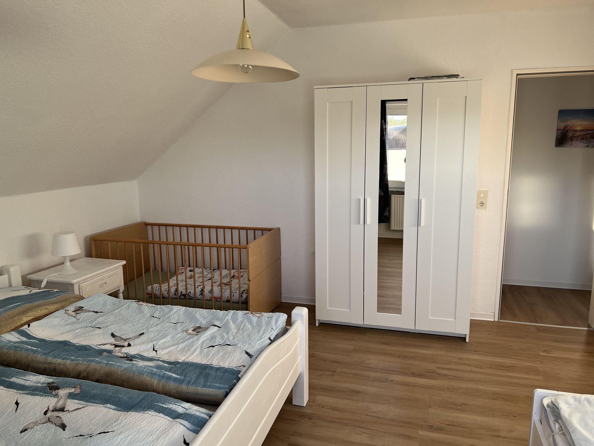 Diese einladende Erdgeschosswohnung auf 117 qm bietet optimalen Komfort und ist ideal für bis zu vier Erwachsene und zwei Kinder. Mit drei individuell gestalteten Schlafzimmern, eines mit Doppelbett, eines mit zwei Einzelbetten und ein Kinderzimmer mit zwei separaten Betten bietet die Wohnung ausreichend Raum für die ganze Familie. Auf Anfrage steht zudem kostenfrei ein Gitterbett für Kinder bis zu drei Jahren bereit.