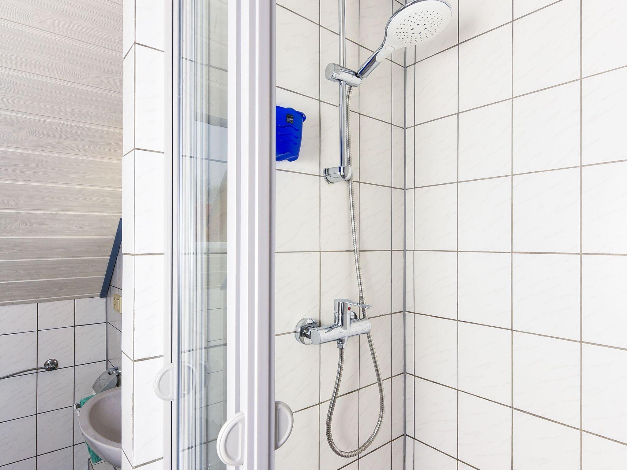 Waschtisch und WC, Obergeschoss, Terrasse, optimal für 1 bis 2 Personen.