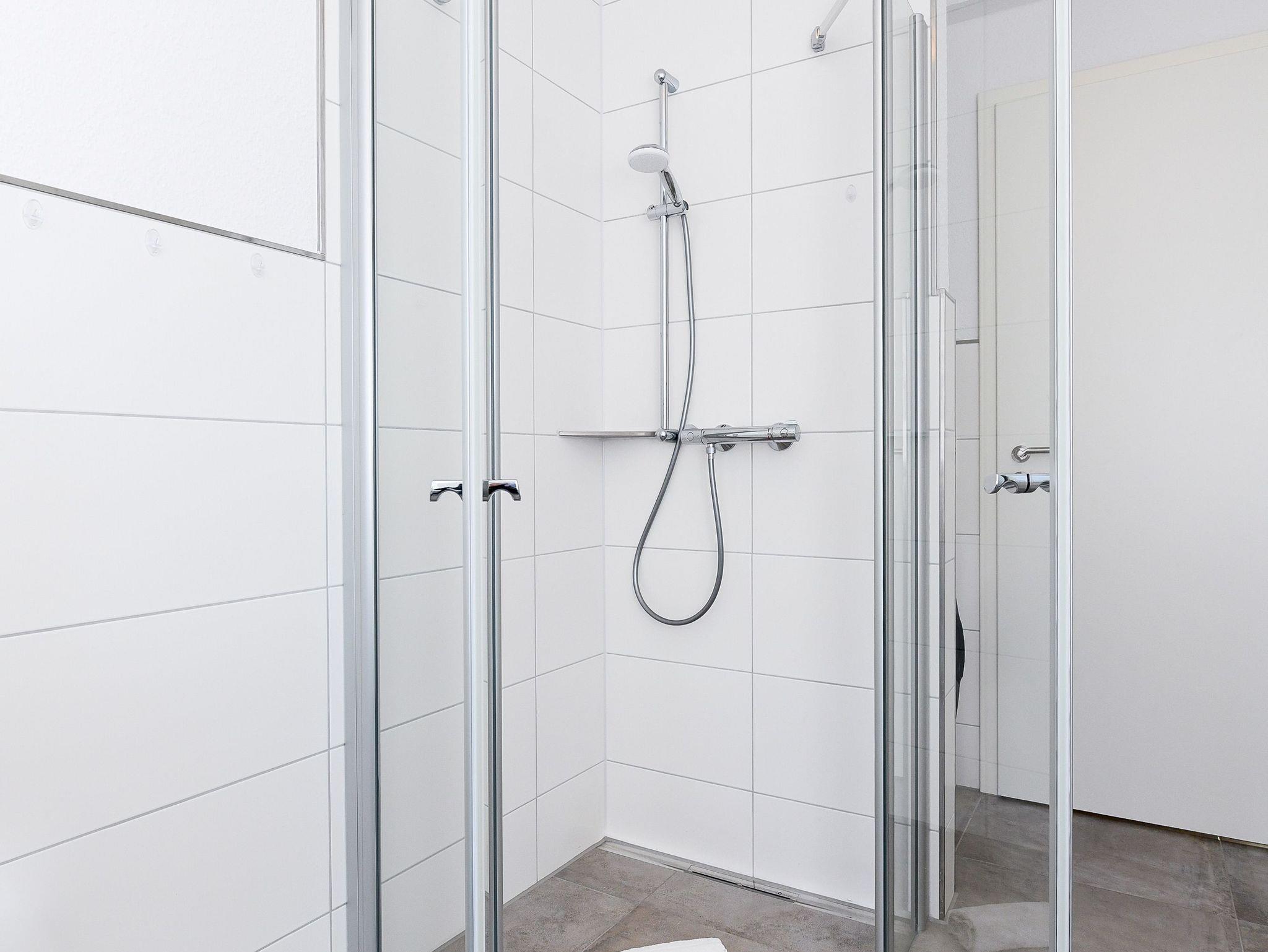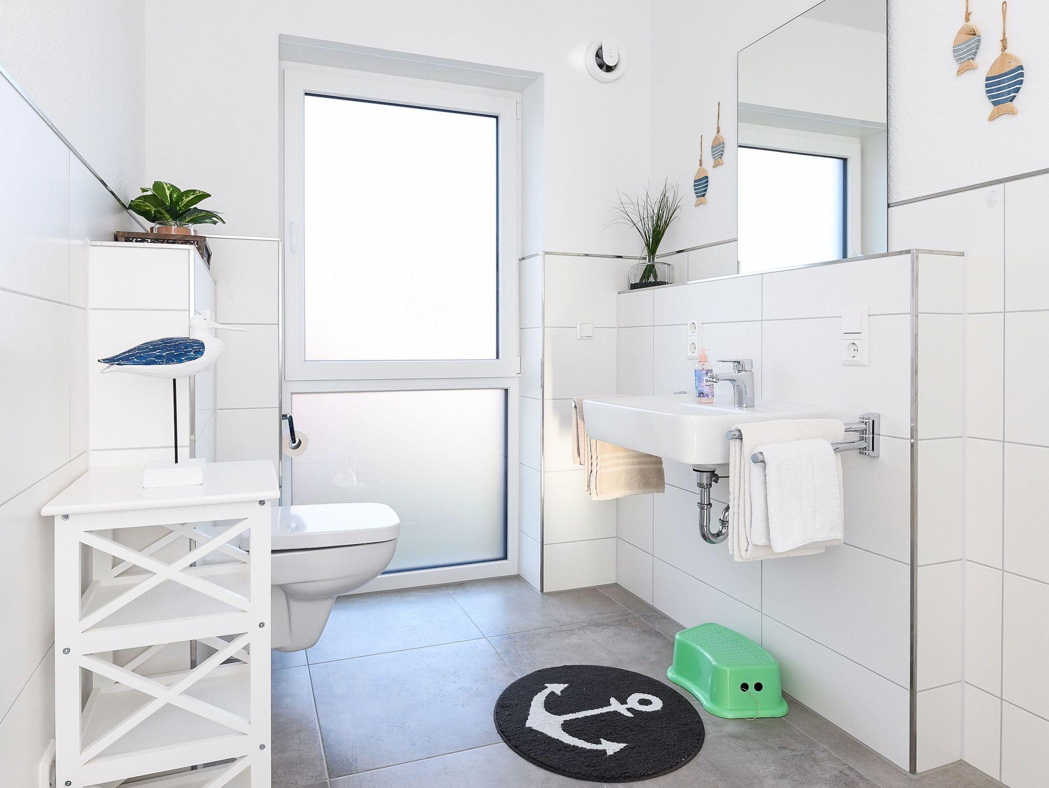 Badezimmer mit Dusche, Waschtisch und WC