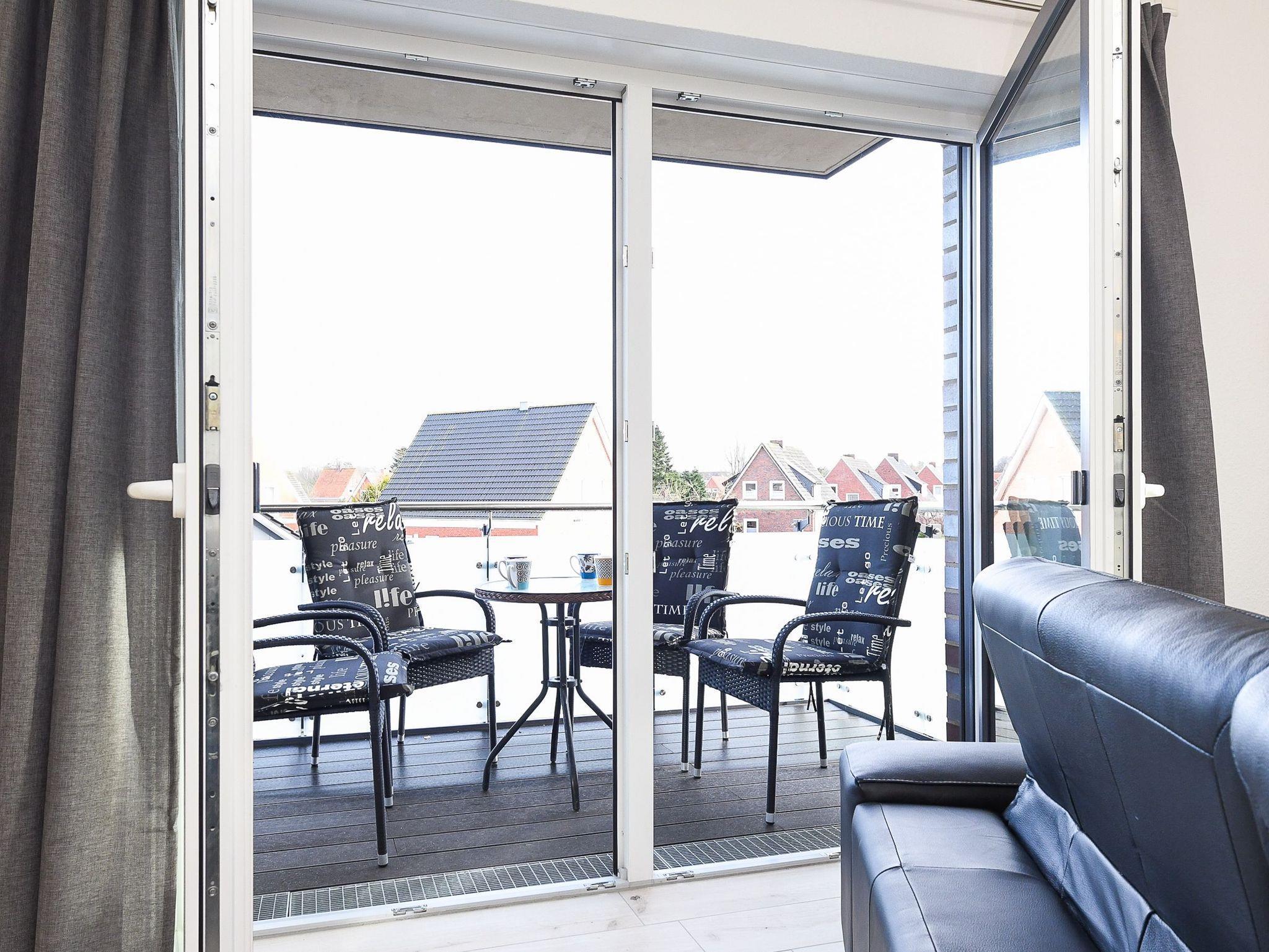 Vom schönen und liebevoll gestalteten Wohnzimmer erreichen Sie den angenehm großen Balkon und hier wie dort genießen Sie Ihre Tage in Ostfriesland bei einer schönen gemütlichen Tasse Tee!