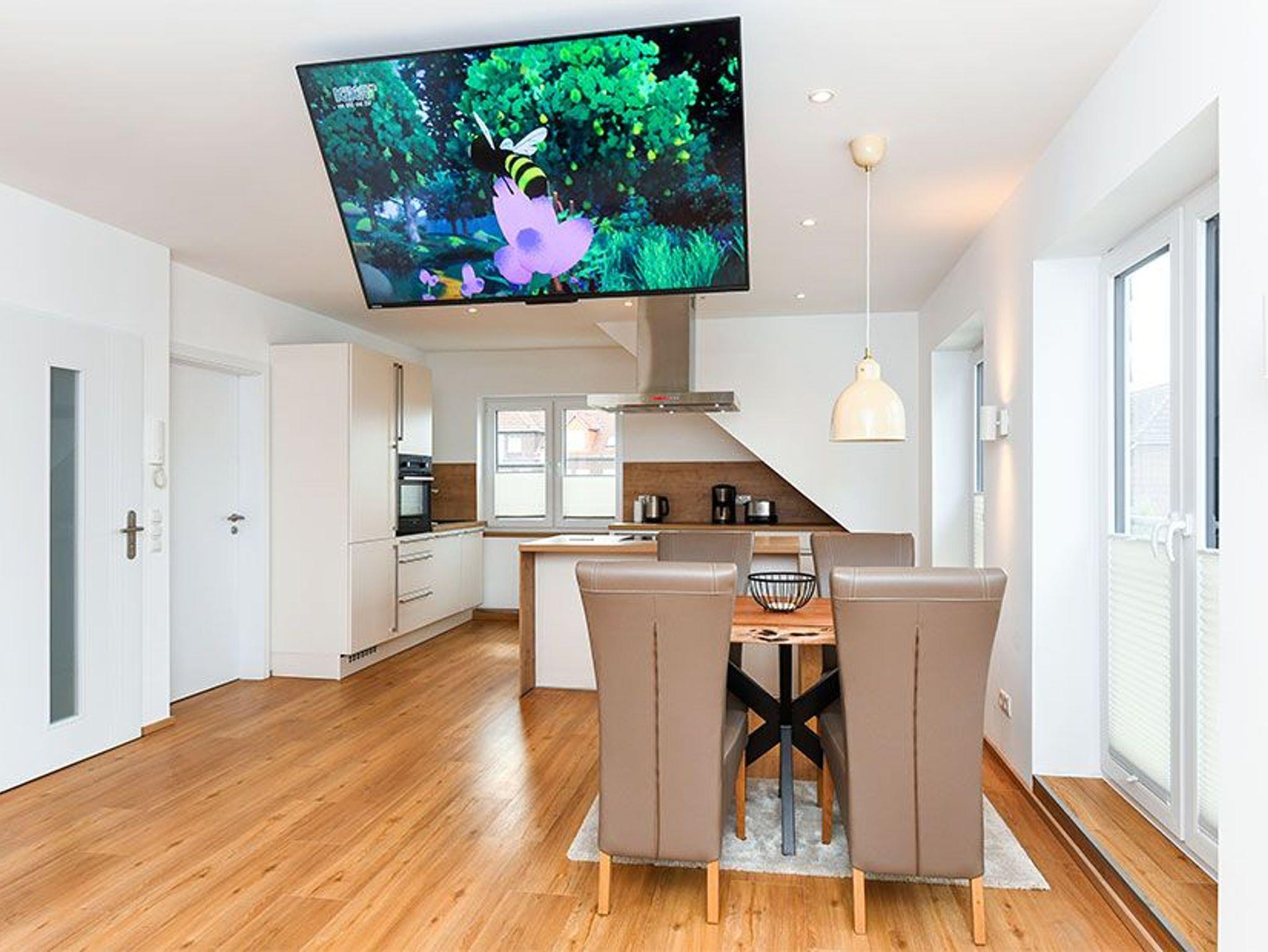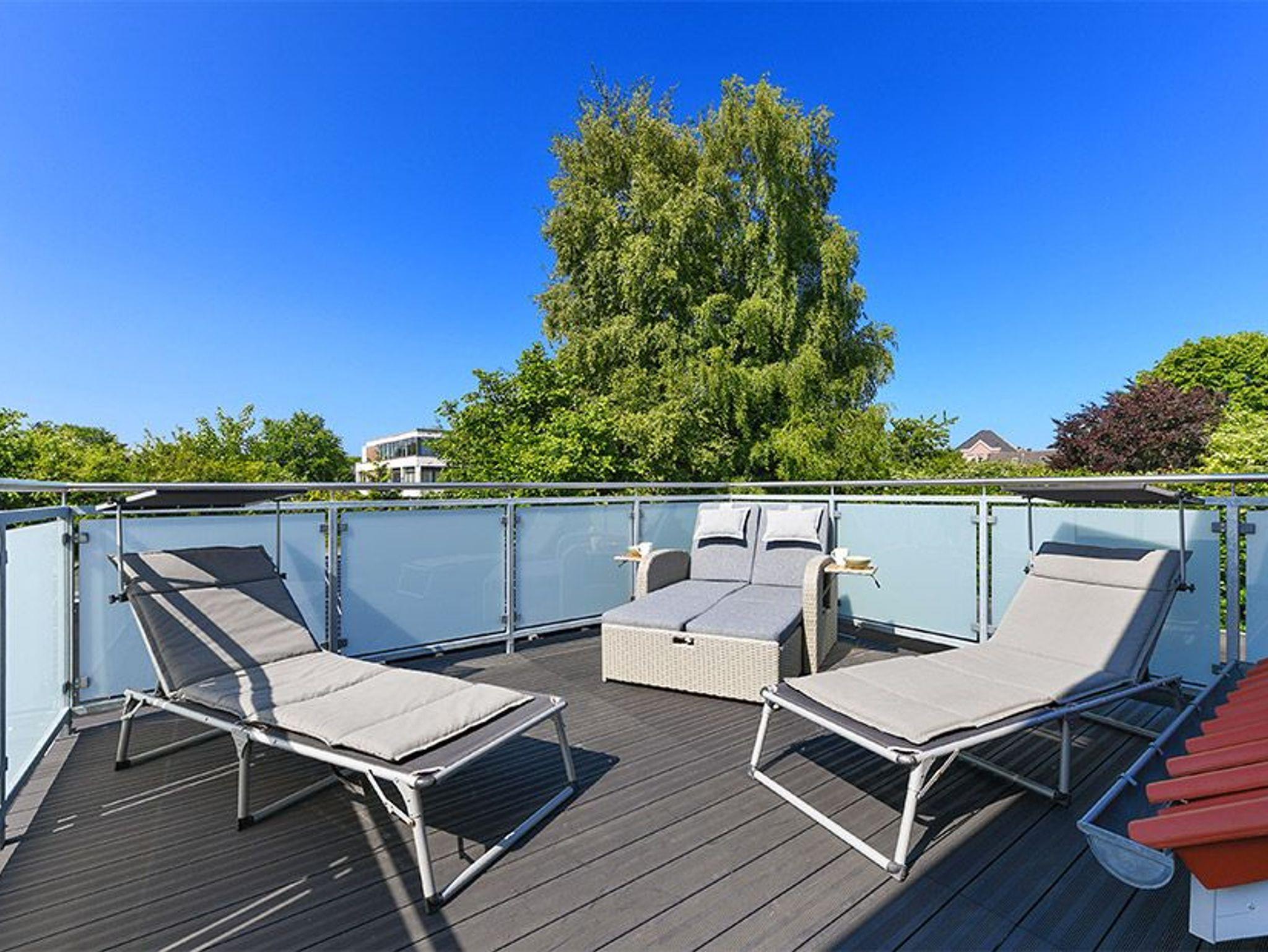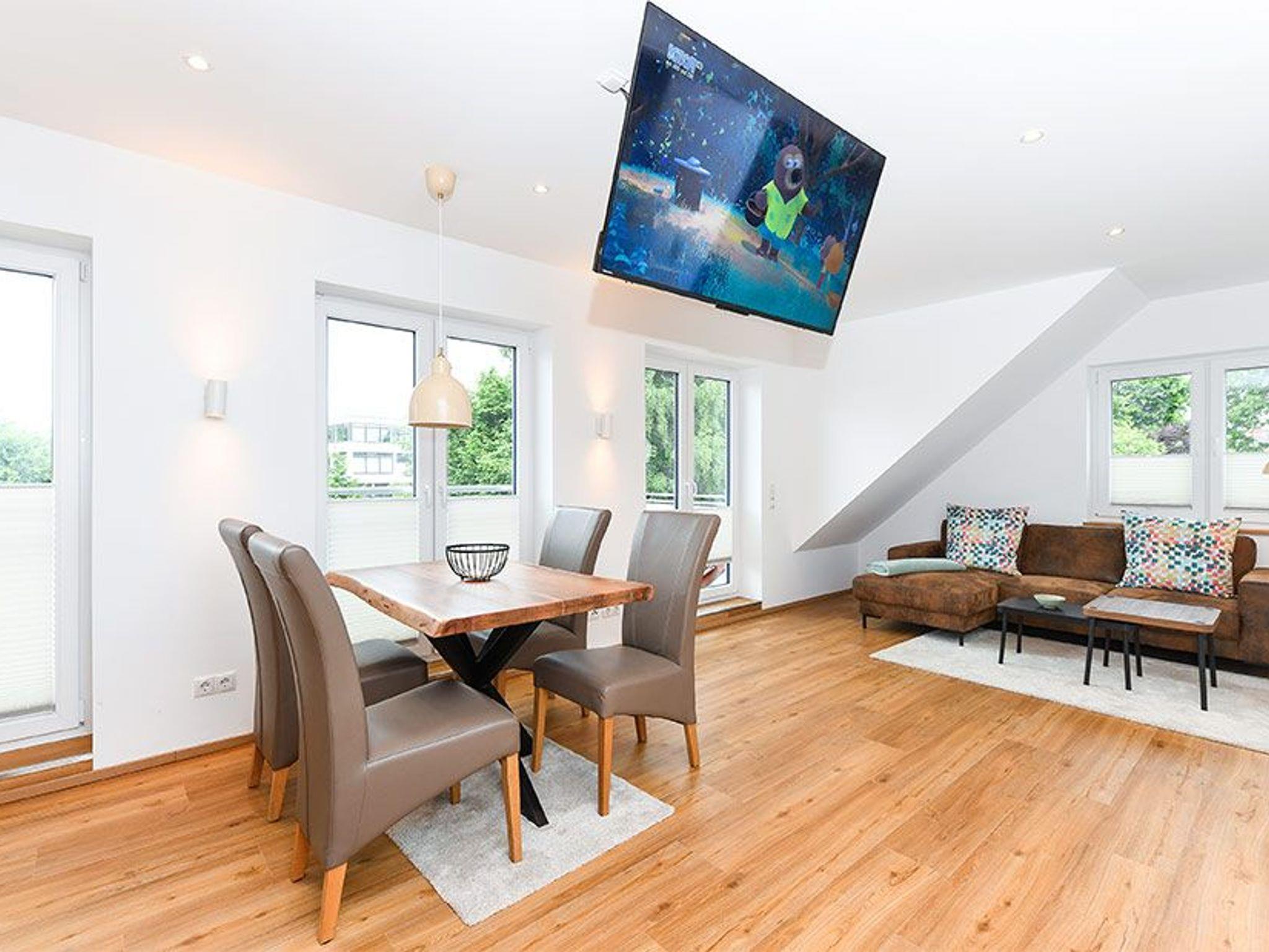 Die Ferienwohnung sind geschmackvoll, hell und freundlich eingerichtet und technisch hochwertig ausgestattet. Die Wohnung bietet eine schöne Dachterrasse mit schönem Ausblick über die Stadt.