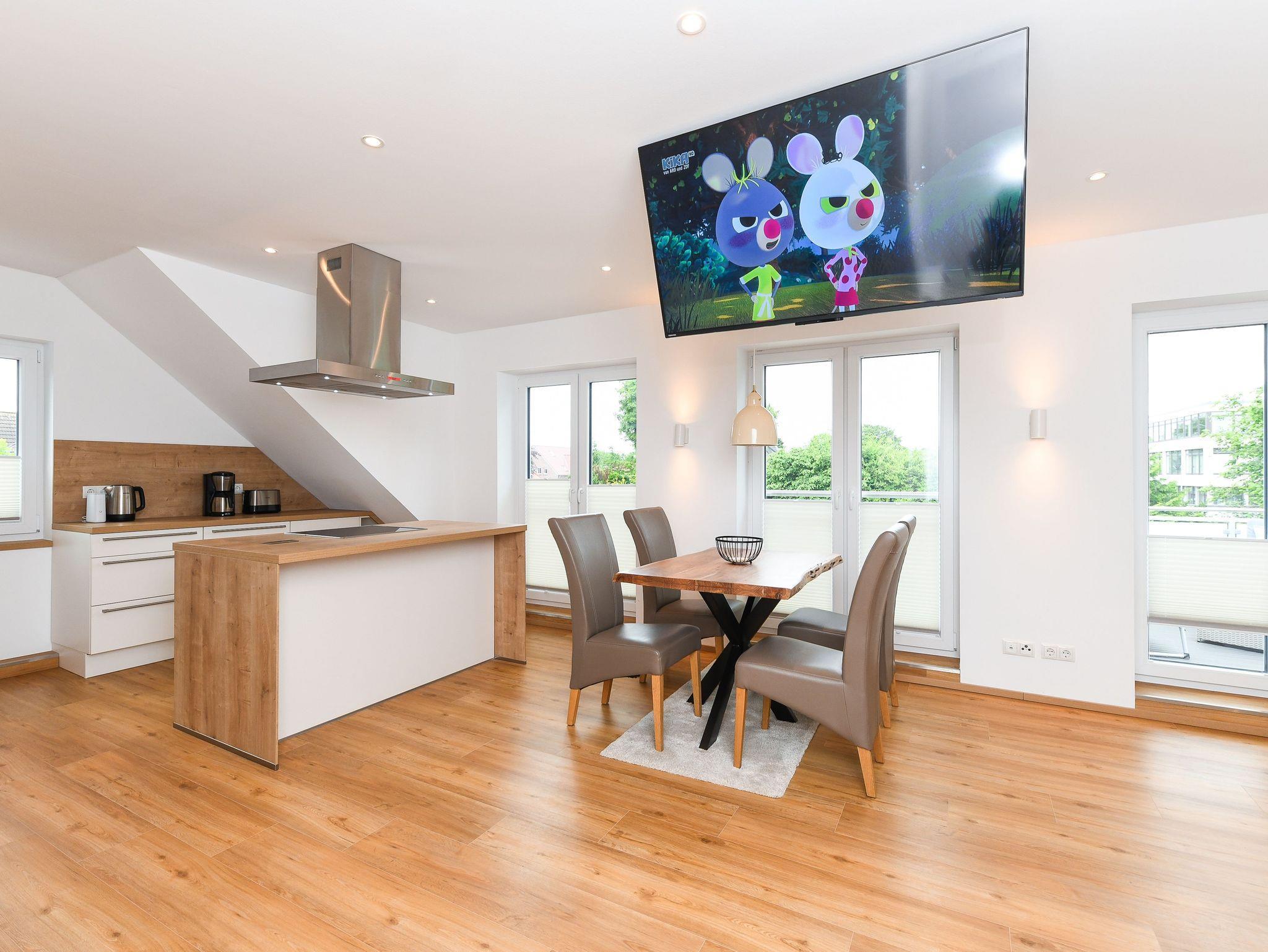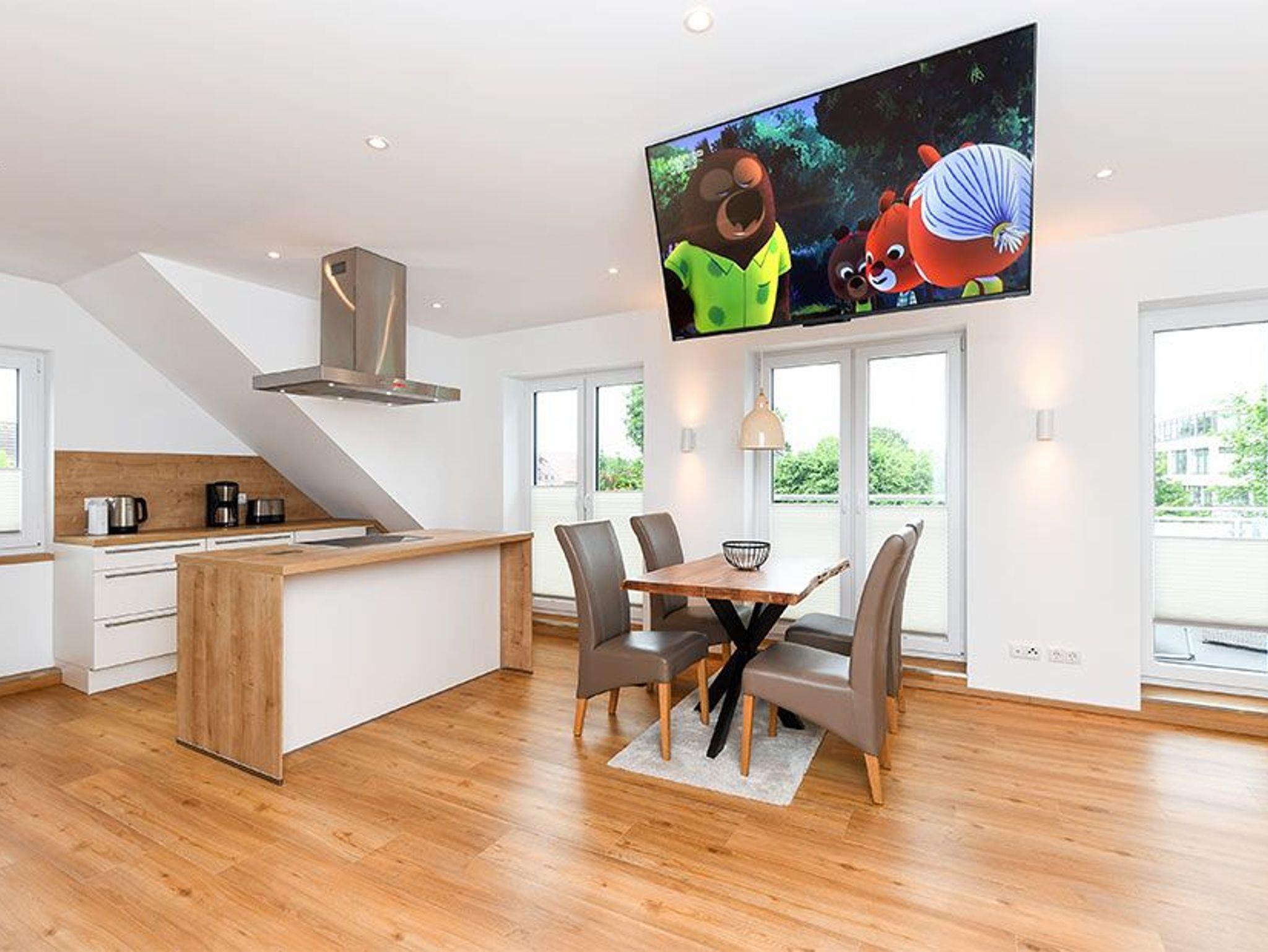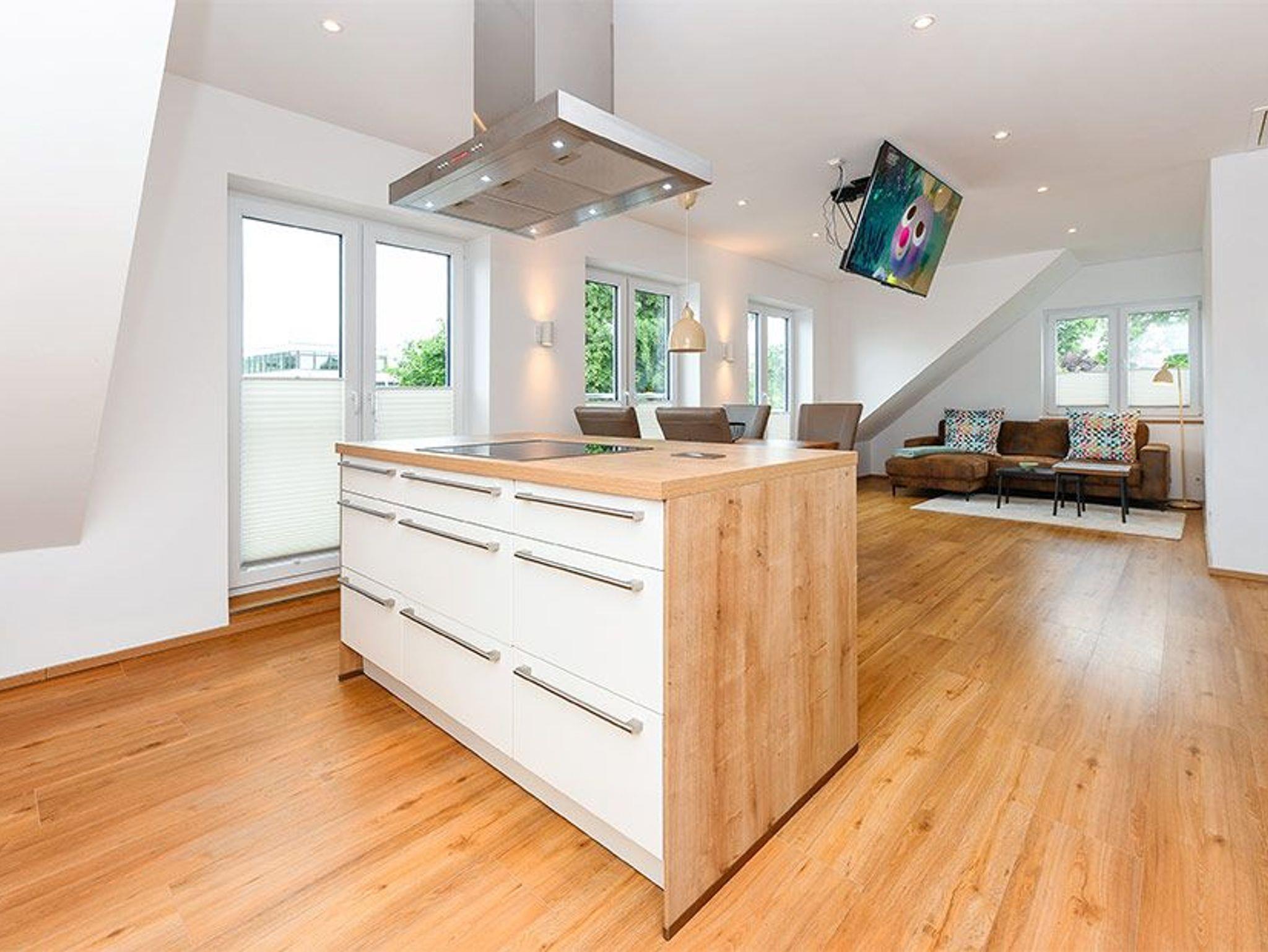 Die Ferienwohnung sind geschmackvoll, hell und freundlich eingerichtet und technisch hochwertig ausgestattet. Die Wohnung bietet eine schöne Dachterrasse mit schönem Ausblick über die Stadt.