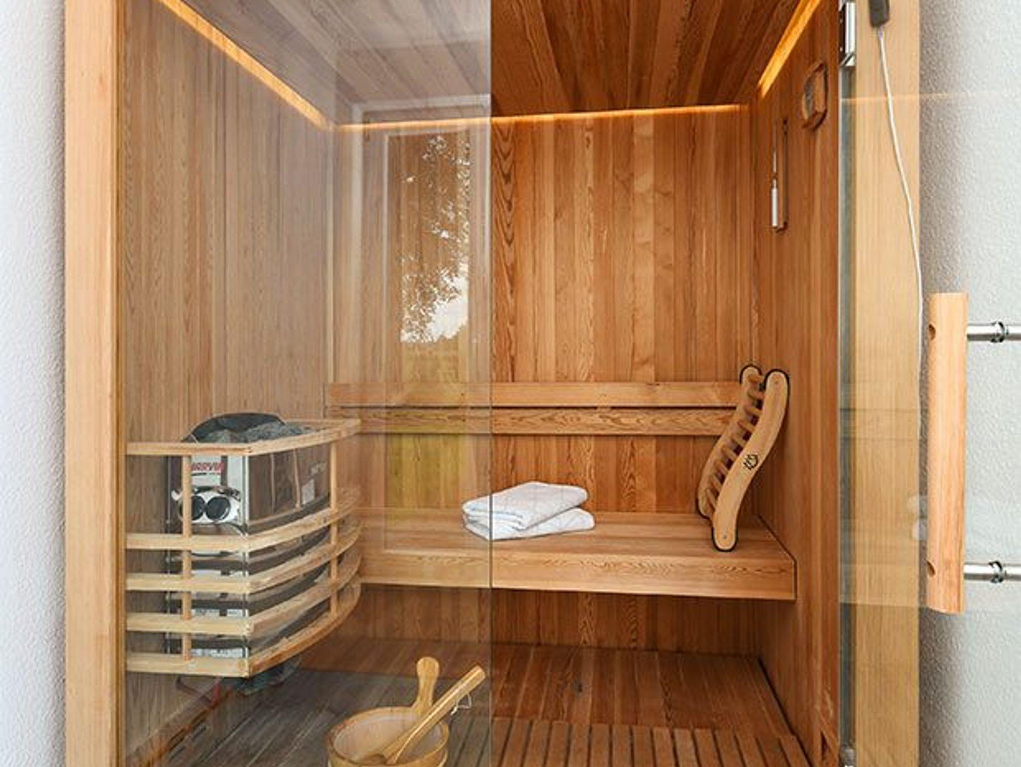 Außerdem verfügt das Ferienhaus über eine Sauna und einen Kamin.