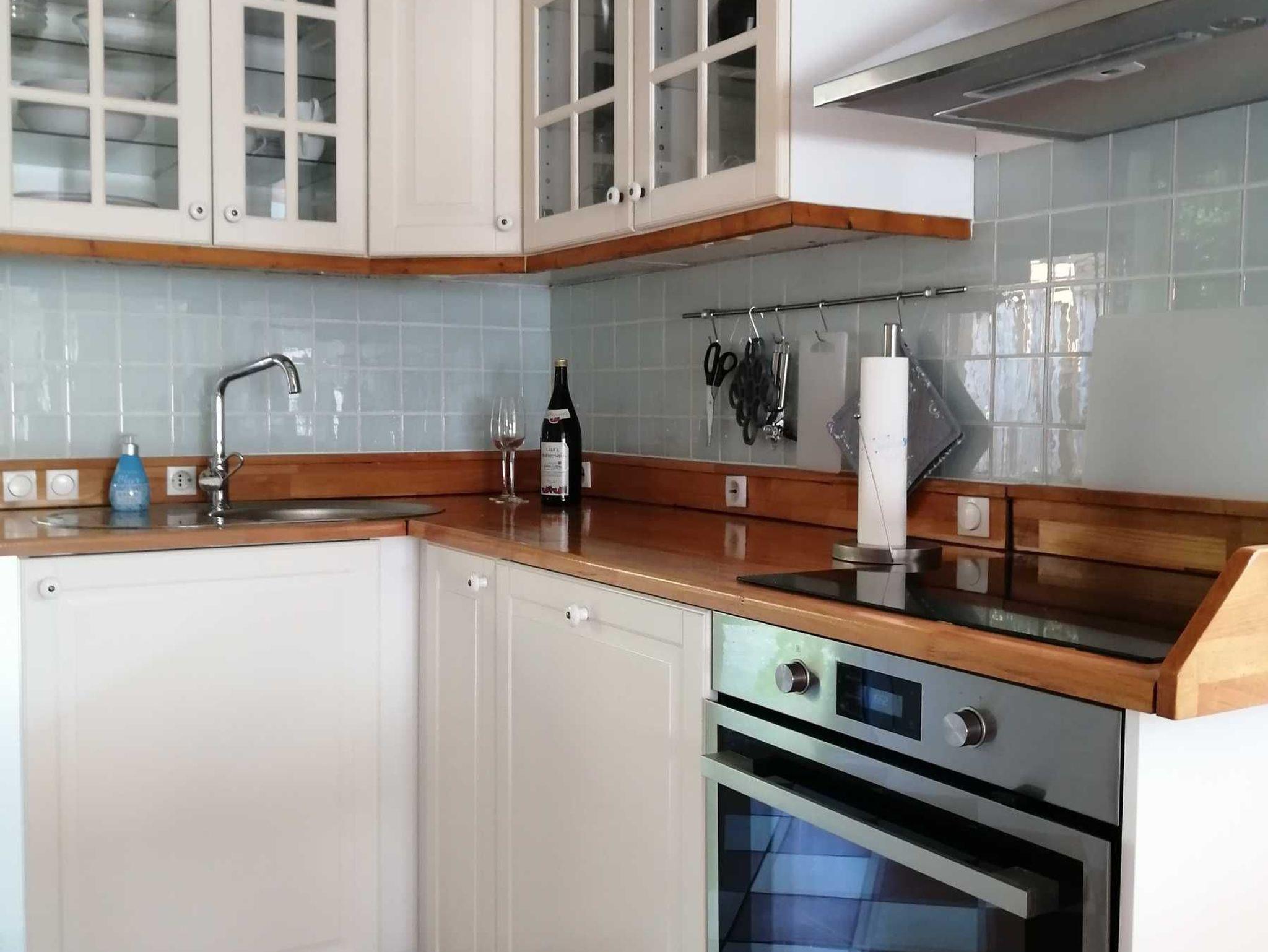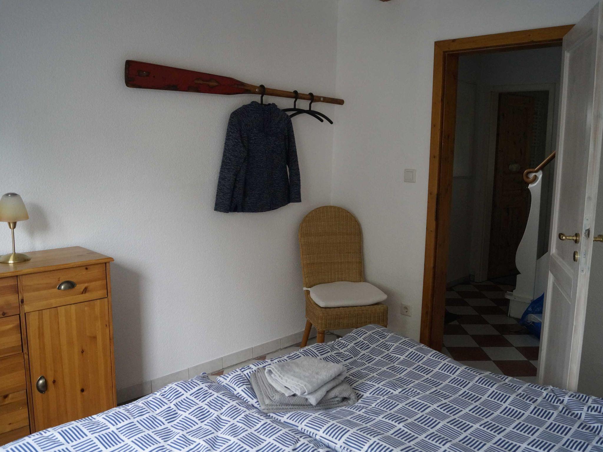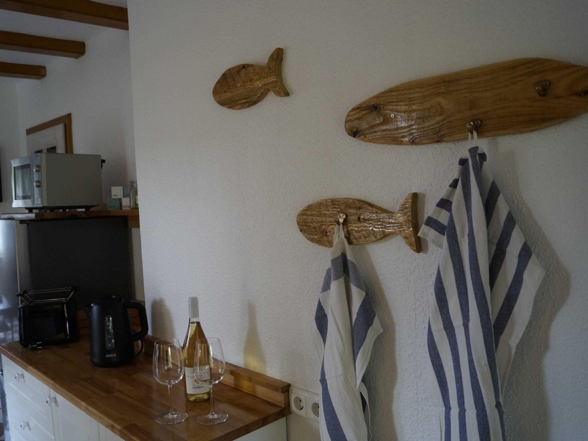 • In der modernen Landhausküche erleichtern Ihnen Spülmaschine, Mikrowelle, Gefrierschrank und Backofen die Selbstversorgung. Für die kleinen Gäste gibt es am Esstisch auch einen Hochstuhl. Vom Sofa aus können Sie im Wohnbereich bequem Fernsehen. Die Lampen sorgen auch am Abend für ein angenehmes Licht beim Lesen. Im Badezimmer mit einer Dusche steht auch eine Waschmaschine. Ebenerdig erreichen Sie das Schlafzimmer mit dem Doppelbett. In der ersten Etage, die über eine recht steile Treppe zu erreichen ist, befinden sich die zwei weitere Schlafzimmer und ein Spielbereich. Die Treppe ist für Kinder mit einem Schutzgitter abgesichert.
