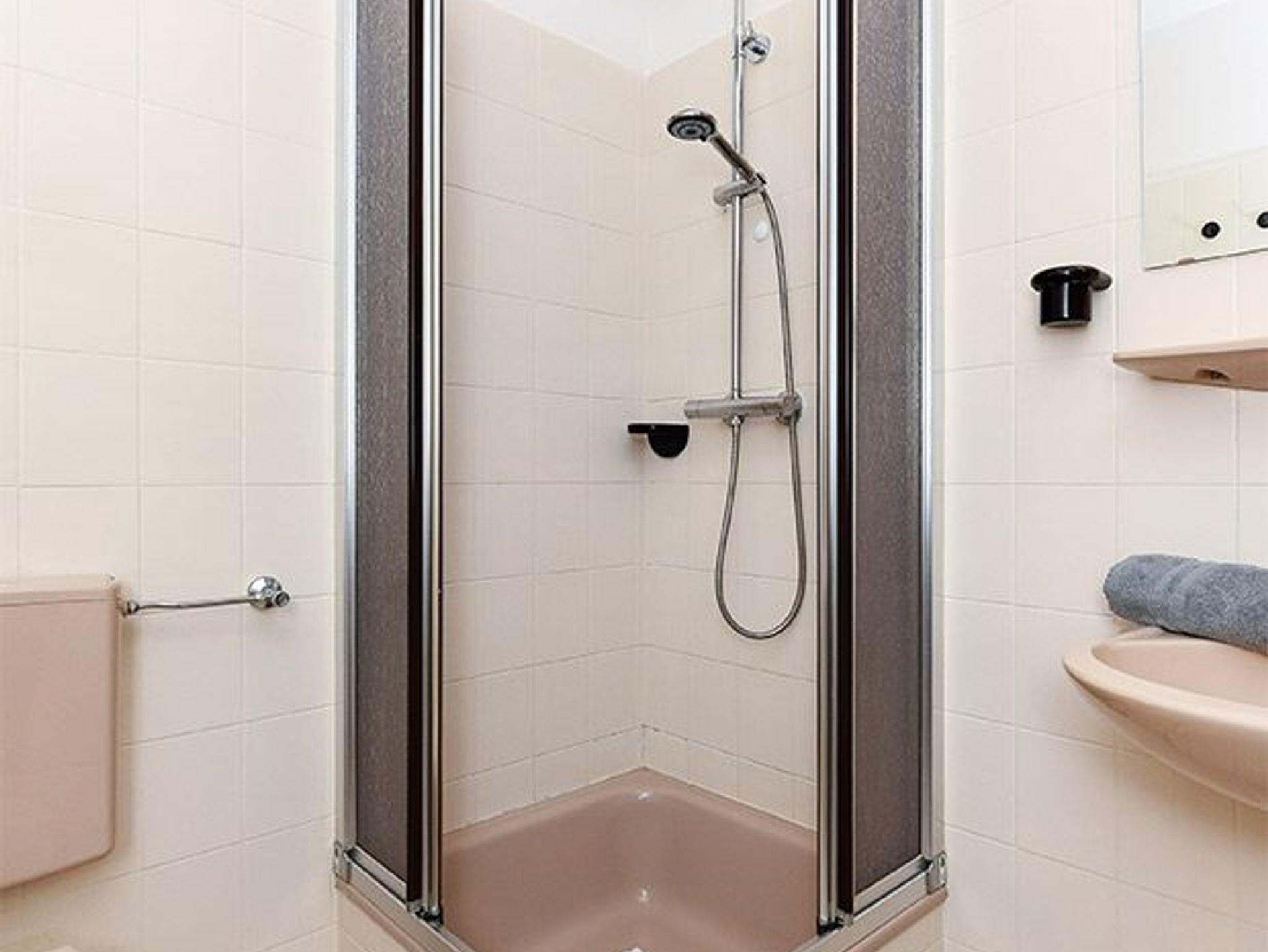 Badezimmer mit Dusche, Waschtisch und WC