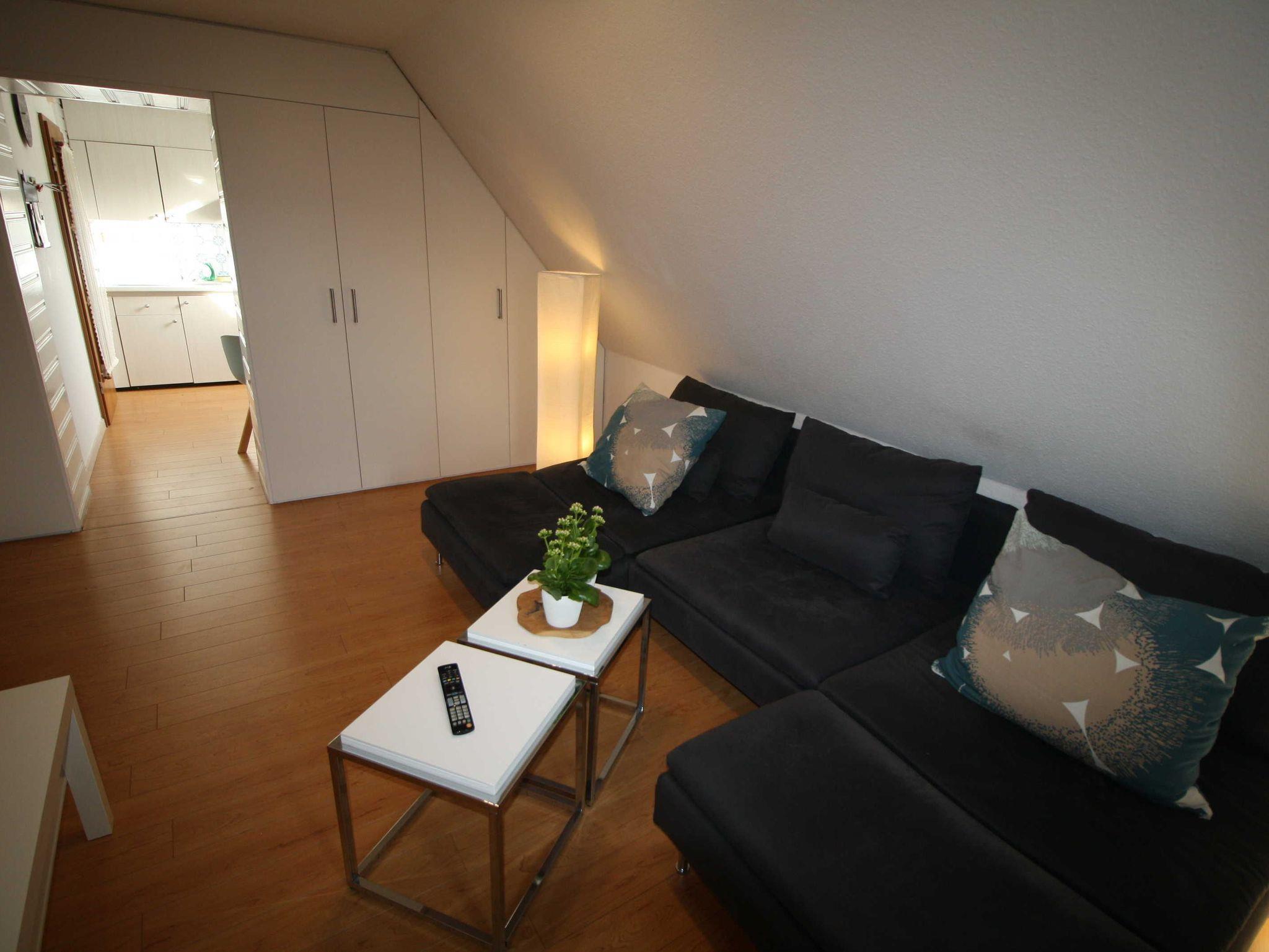 Es gibt 3 modern eingerichtete Räume, im Wohnzimmer befindet sichein schönes großes Sofa mit Flachbildfernseher und ein Tageslichtbad.