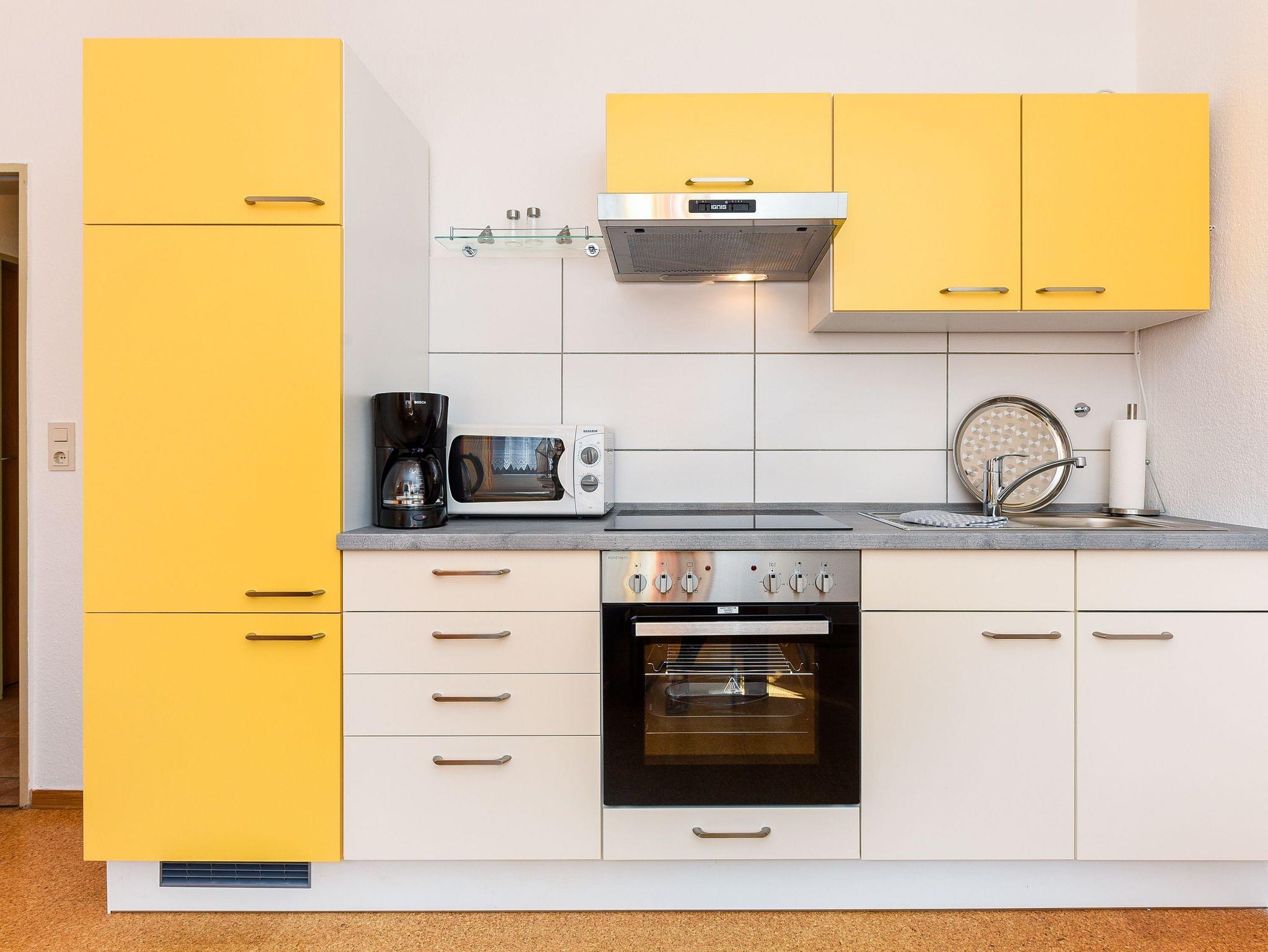 Größe ca. 40 Quadratmeter, Wohnraum mit integrierter Küche, Schlafzimmer, Badezimmer mit Dusche, Waschtisch und WC, Erdgeschoss, optimal für 1 bis 2 Personen und zusätzlich ein Kleinkind.