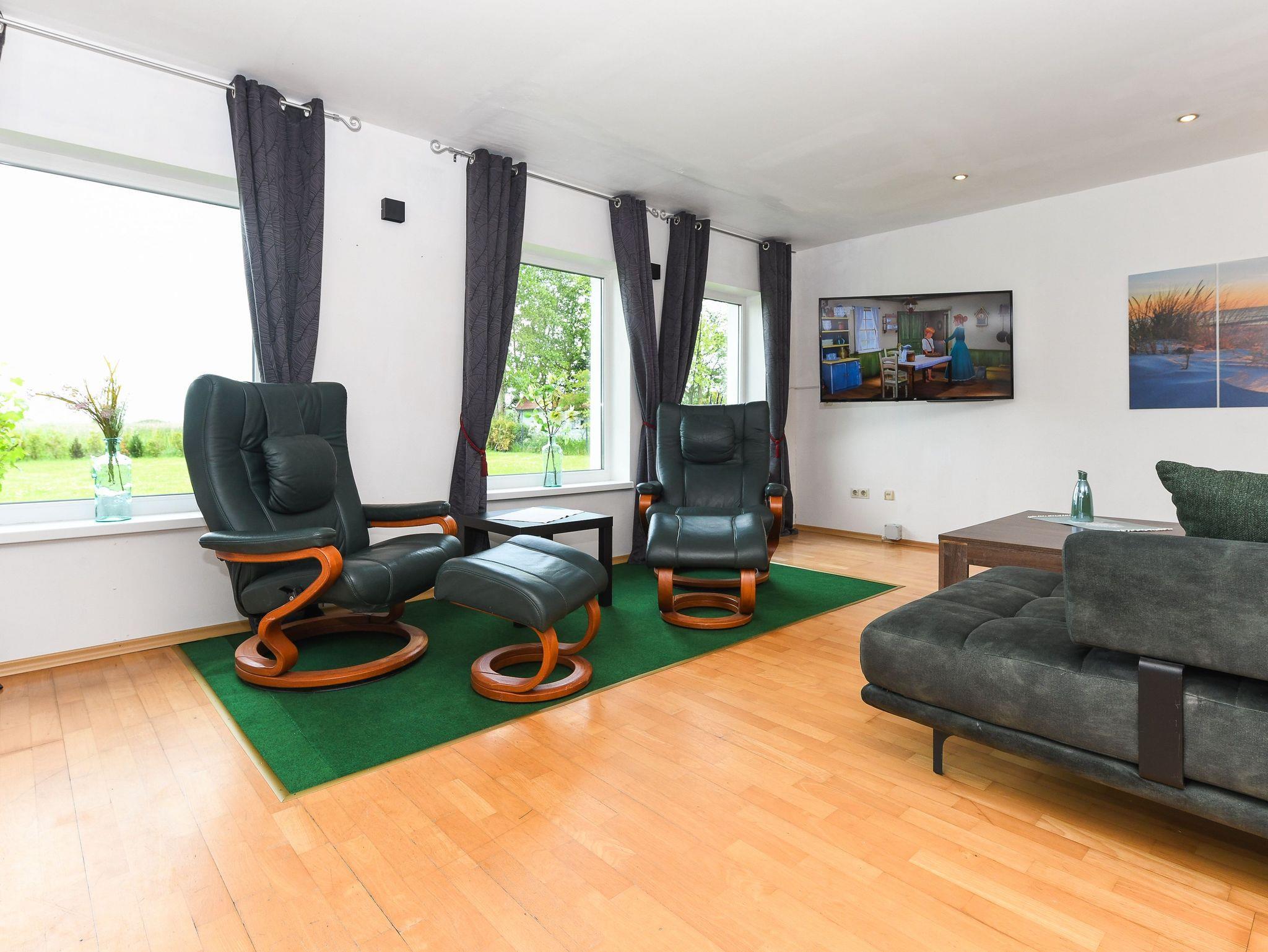 Die Ferienwohnung ist für Ihren Urlaub sehr gut ausgestattet. Aus der Wohnungen genießen Sie einen unverbauten Ausblick auf die ostfriesische Marsch und abends auf wunderschöne Sonnenuntergäng auf der großzügigen Terrasse.