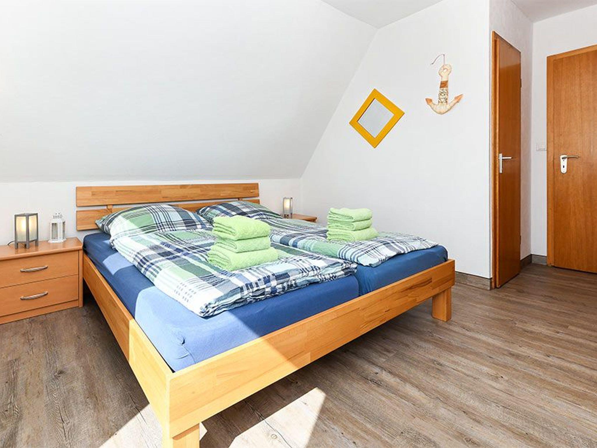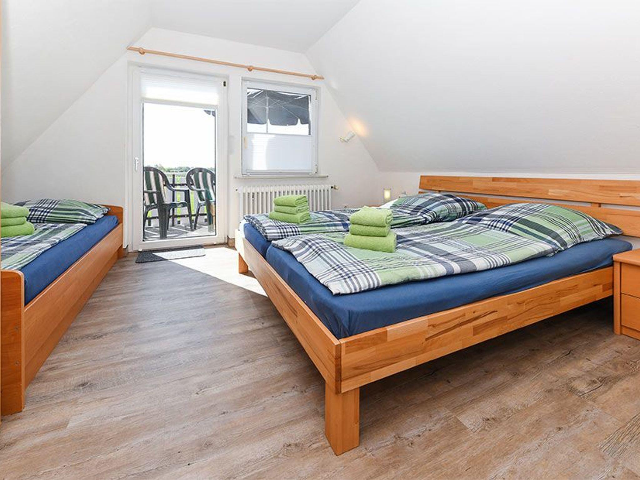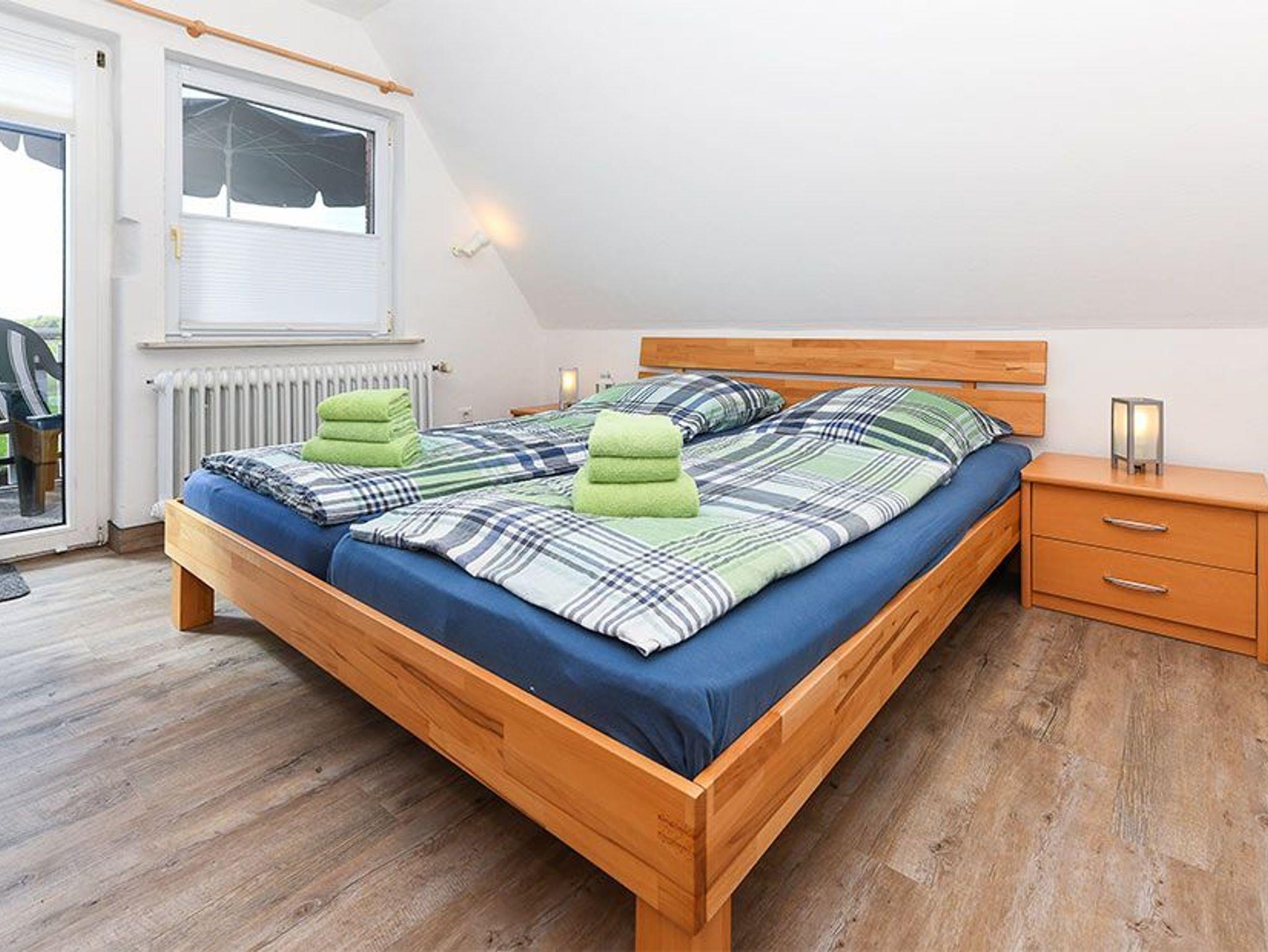 Größe ca. 60 Quadratmeter, Wohnraum mit integrierter Küche, Schlafzimmer, zweites separates Schlafzimmer mit, Waschgelegenheit, Badezimmer mit Dusche und Waschtisch, separates WC, Obergeschoss, Balkon, optimal für 2 bis 5 Personen.