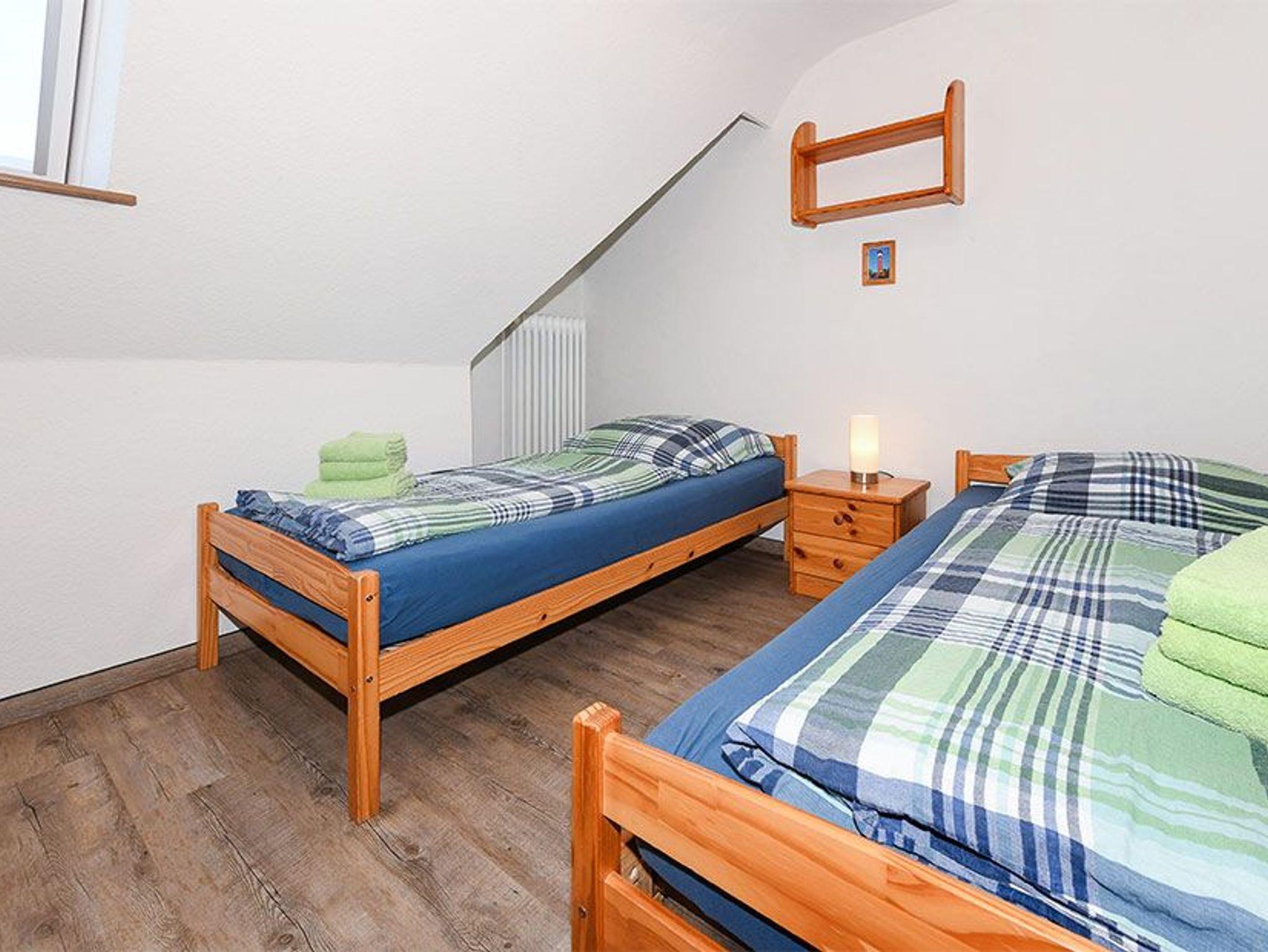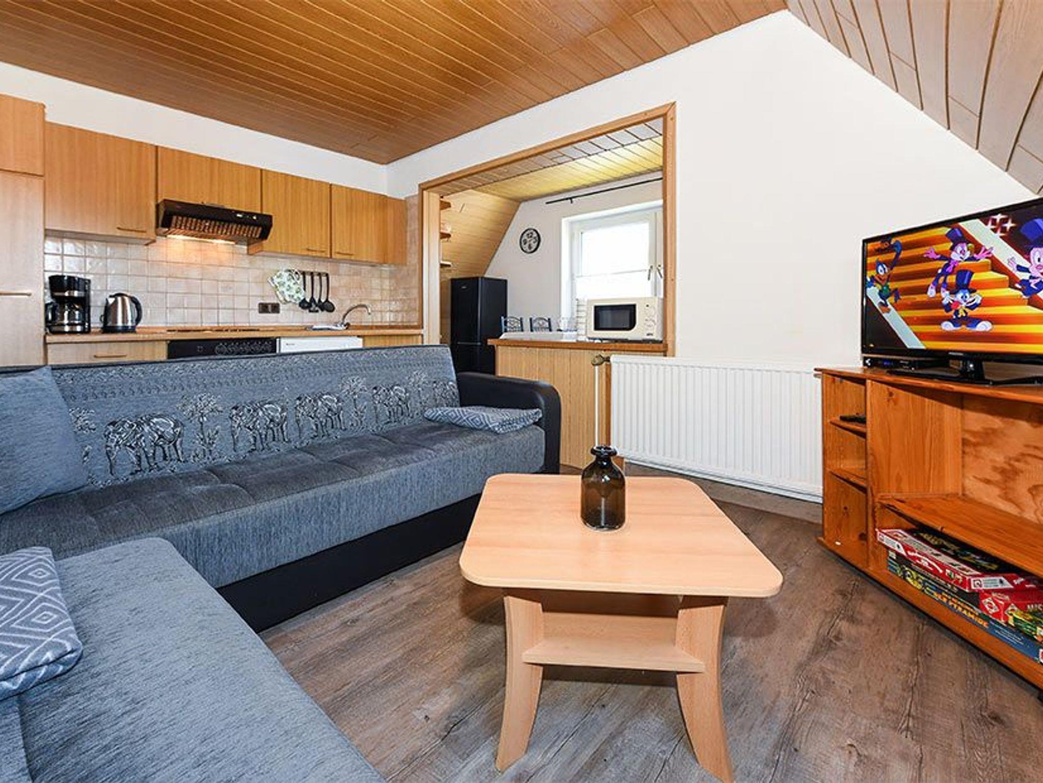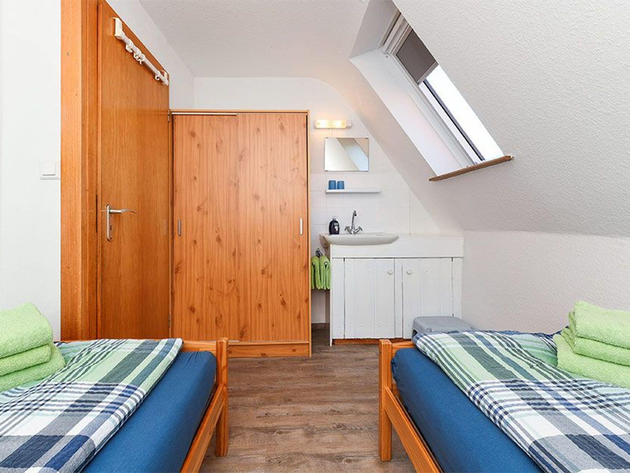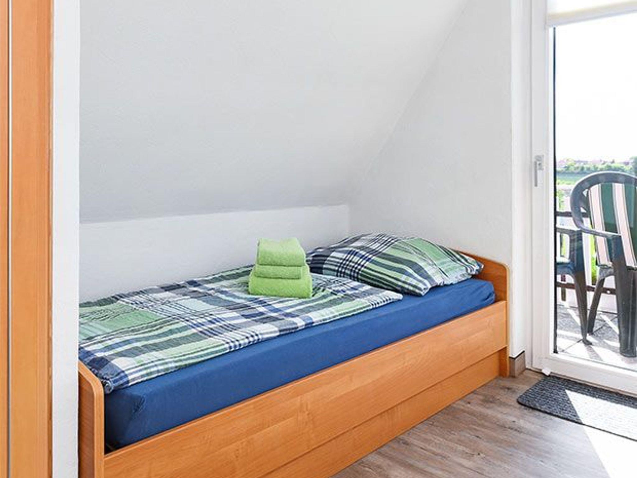 Größe ca. 60 Quadratmeter, Wohnraum mit integrierter Küche, Schlafzimmer, zweites separates Schlafzimmer mit, Waschgelegenheit, Badezimmer mit Dusche und Waschtisch, separates WC, Obergeschoss, Balkon, optimal für 2 bis 5 Personen.
