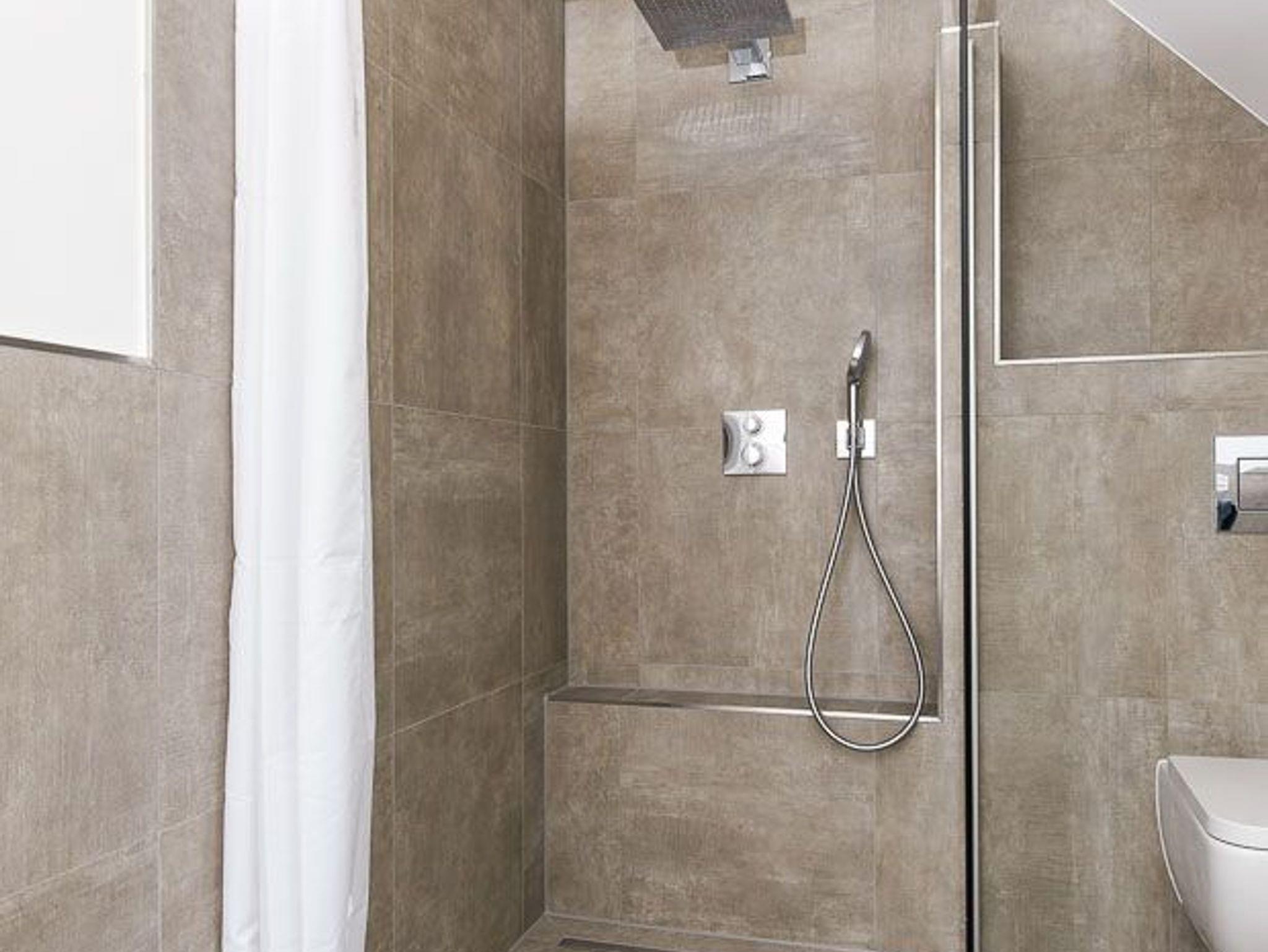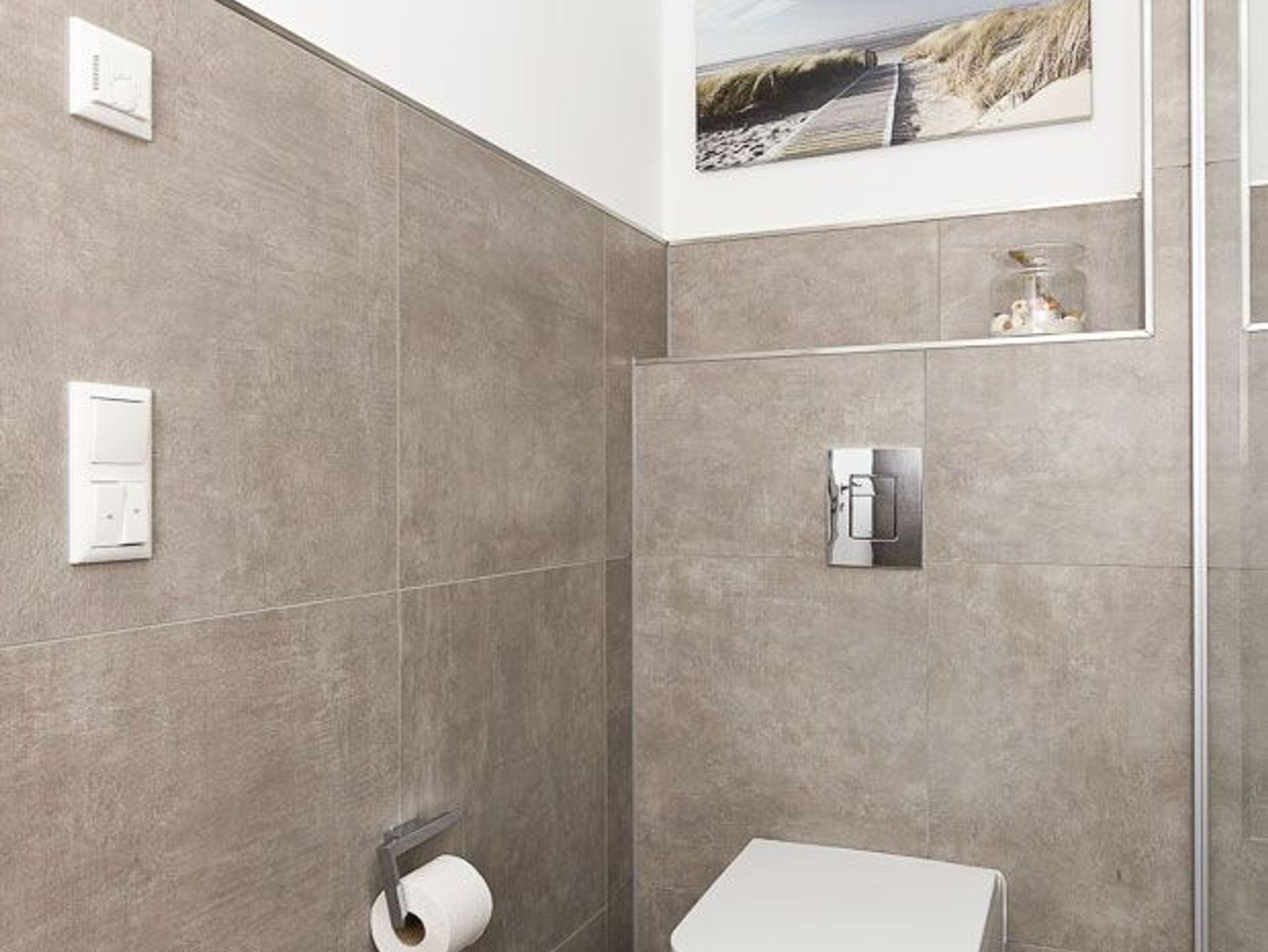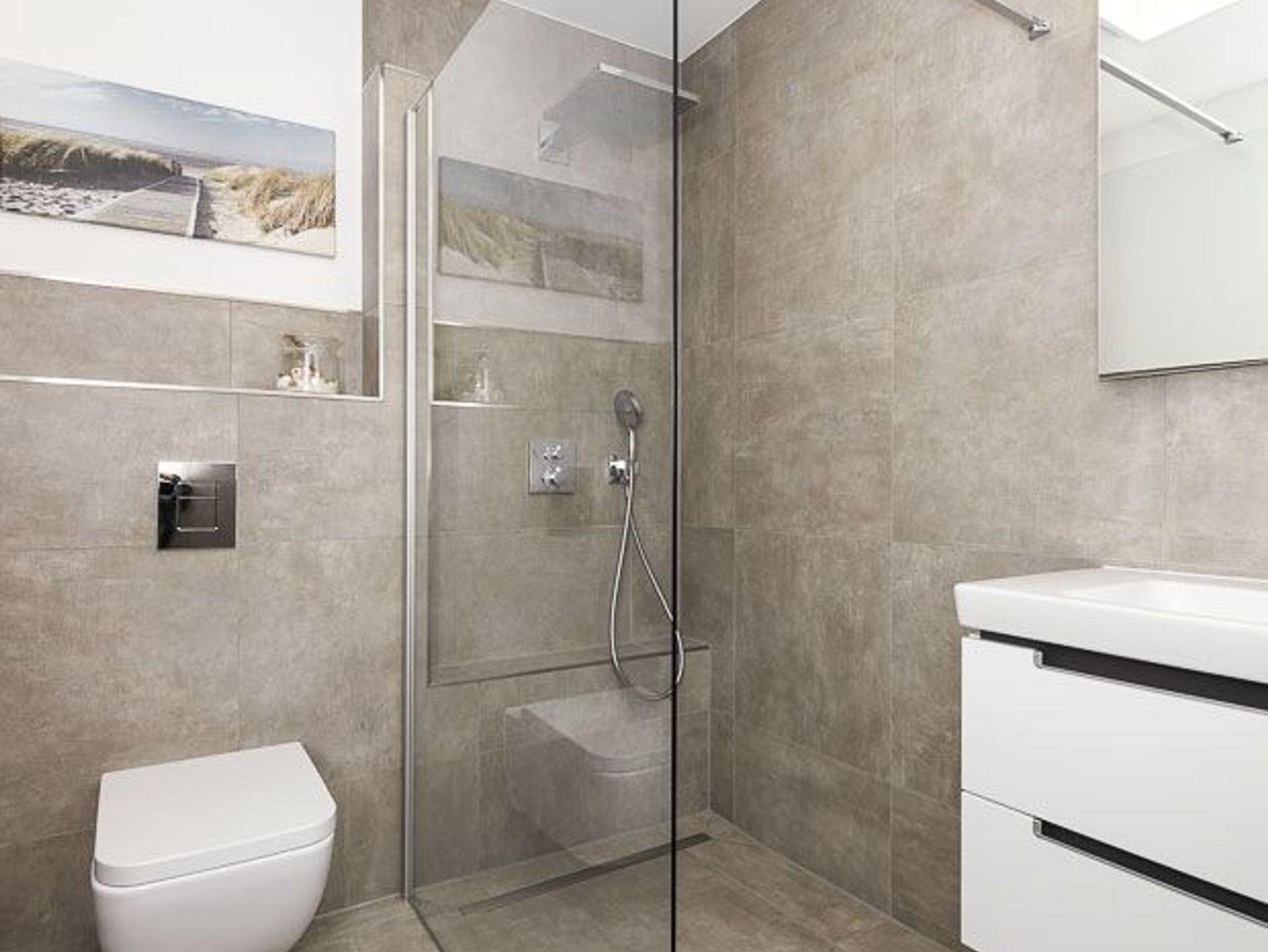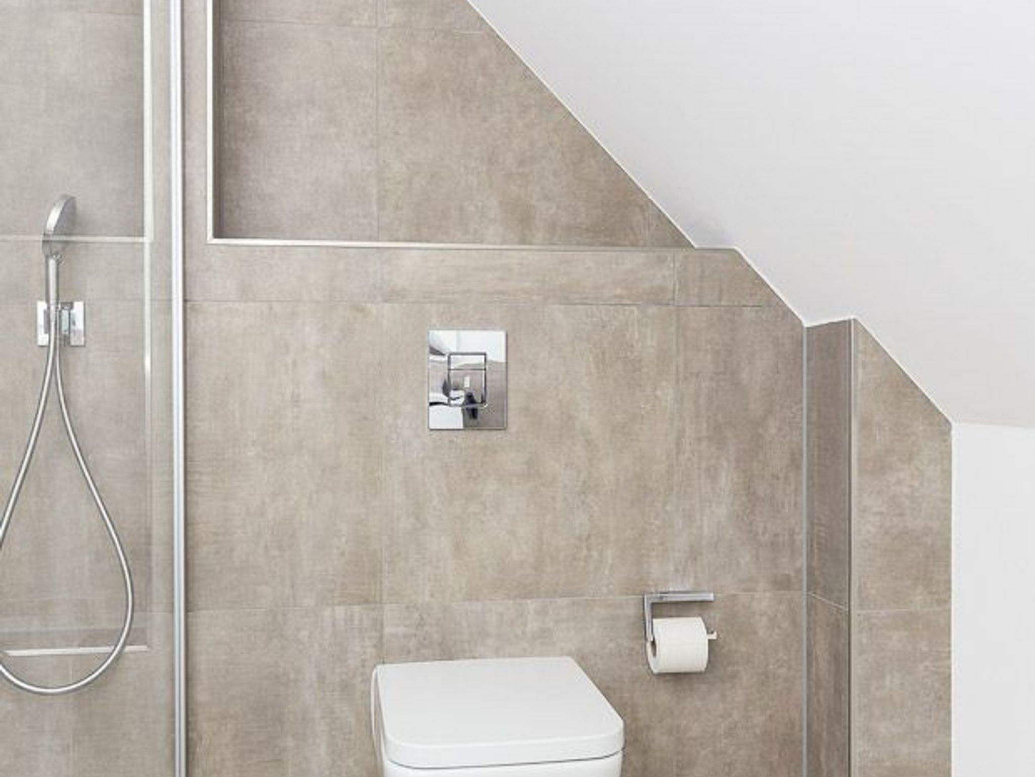 zweites Badezimmer mit Dusche, Waschtisch und WC