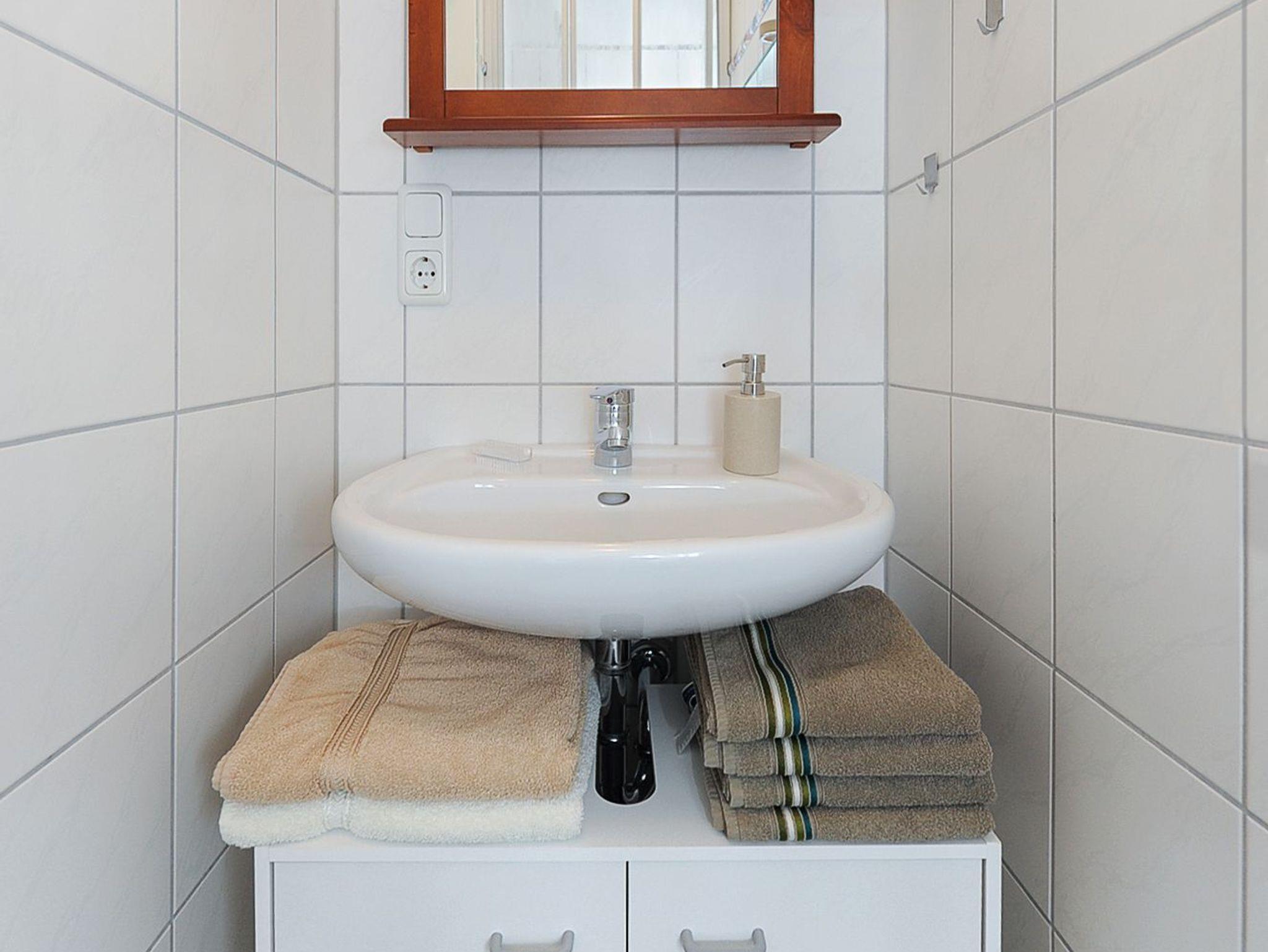 Badezimmer mit Dusche und Waschtisch
