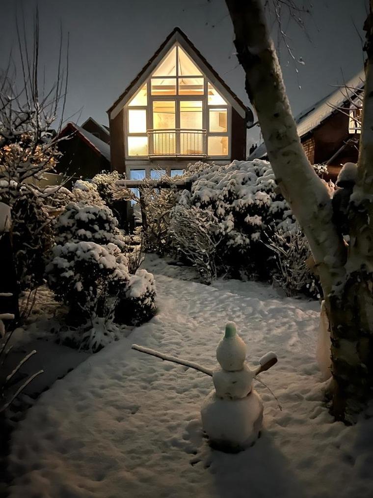 • einer großen Wohnküche mit großer Fensterfront und kleinem Balkon in Richtung Garten.