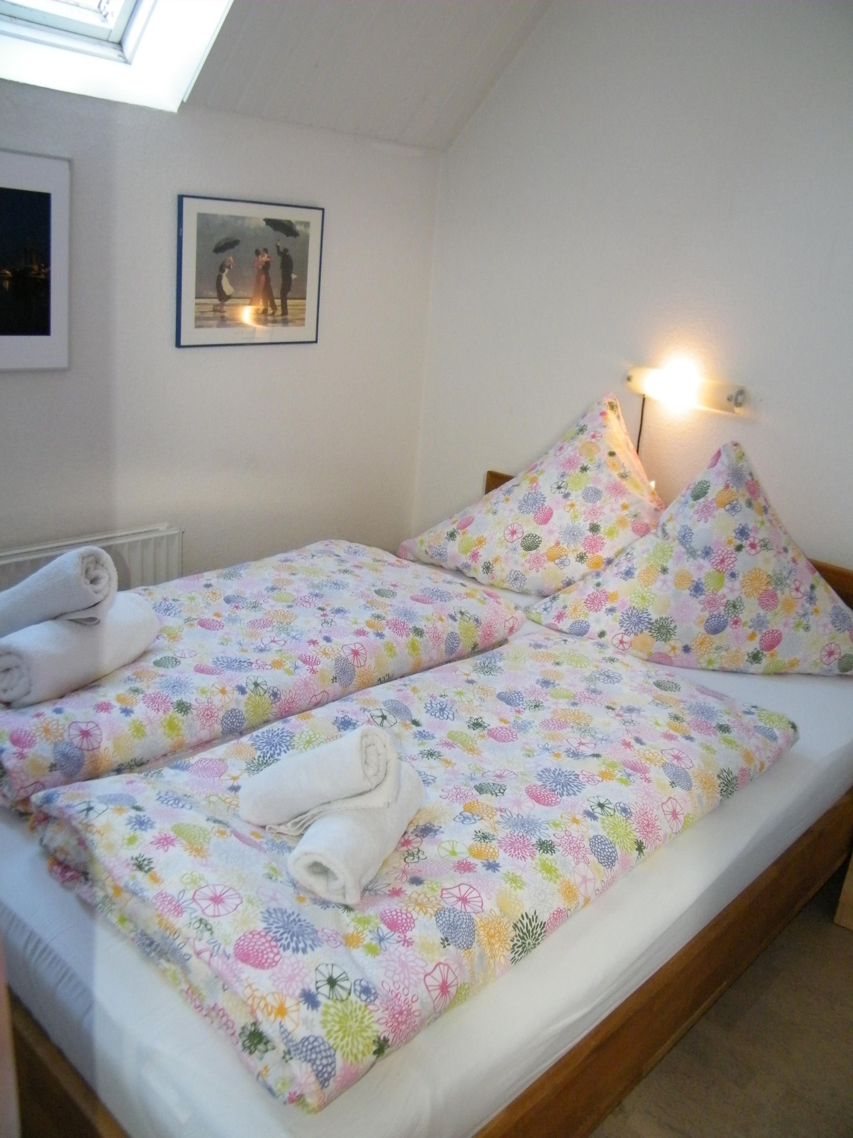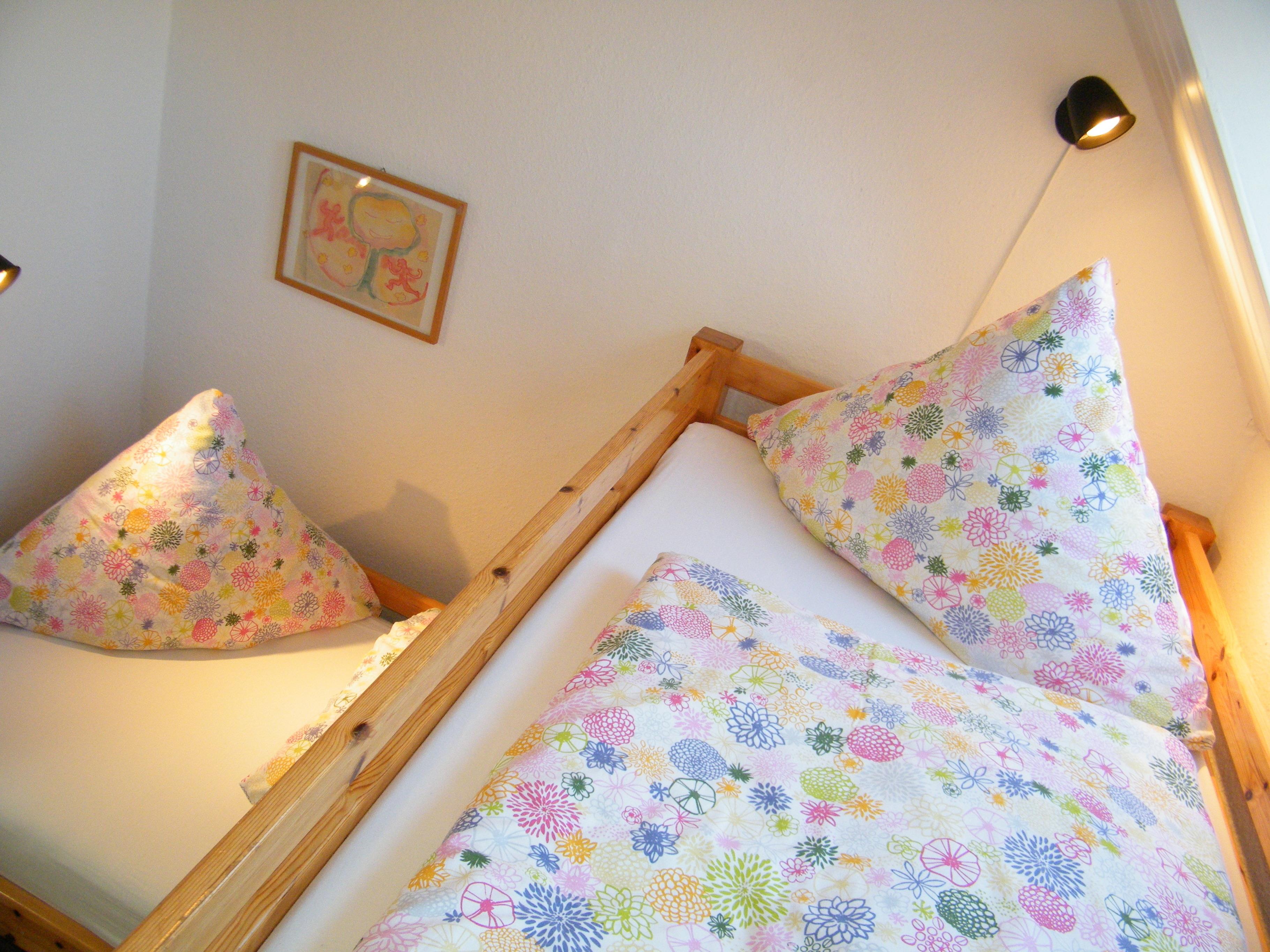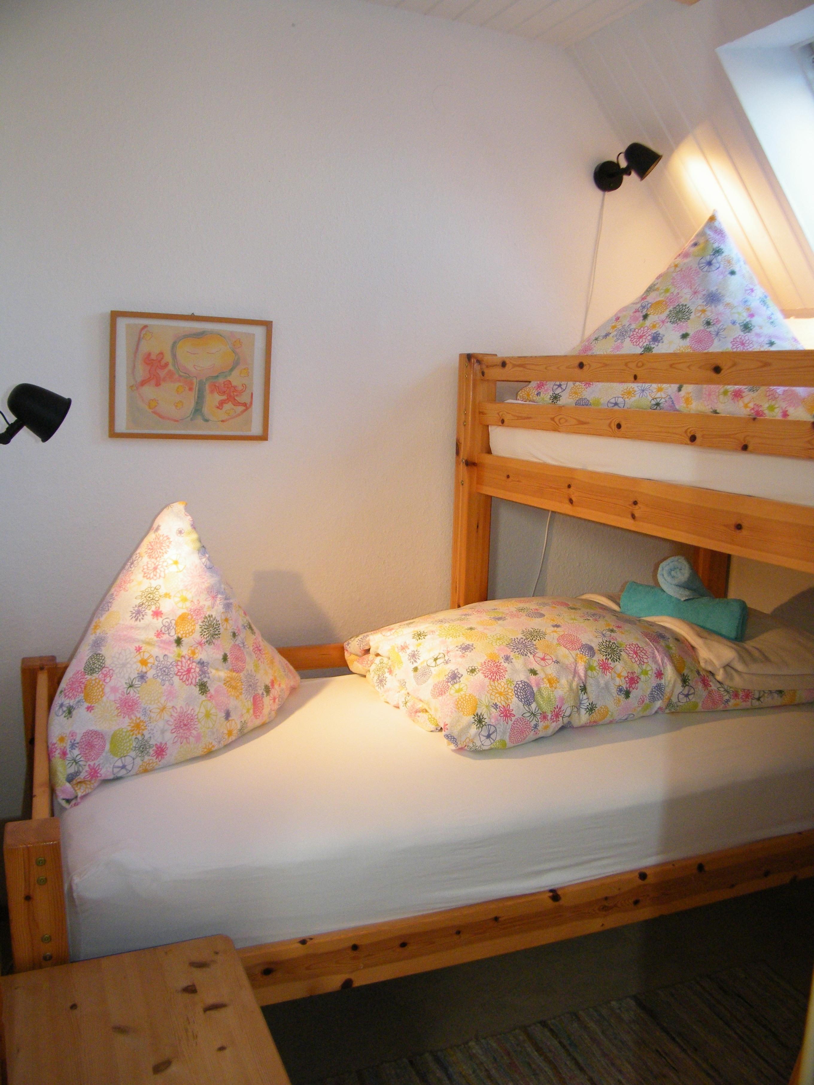 • einem kleinem Schlafzimmer mit zwei halbübereinander stehenden Betten.(90 cm x 200cm)