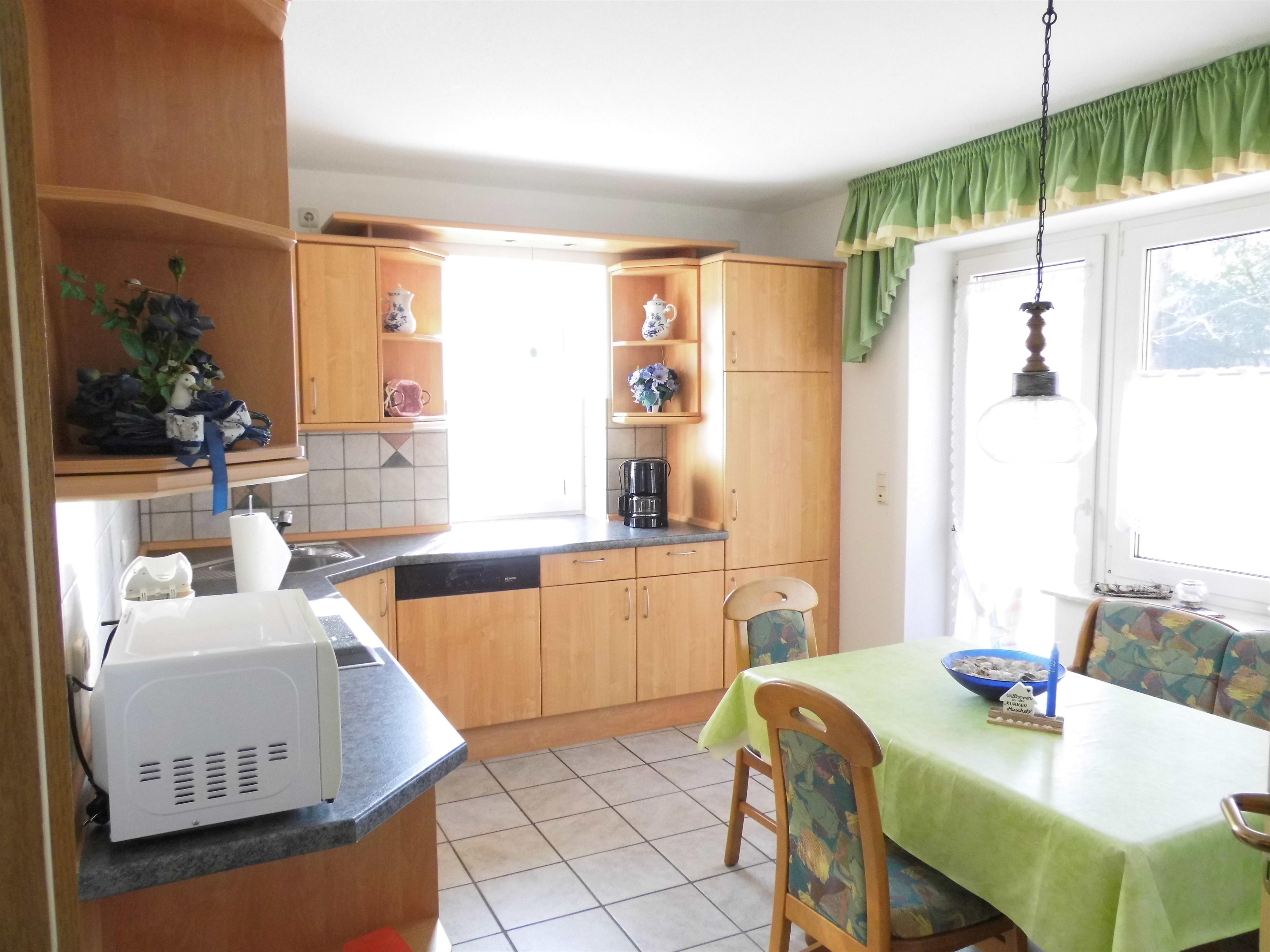 Die gut ausgestattete Küche besitzt unter anderem einen Toaster, eine Kaffeemaschine sowie eine Geschirrspülmaschine für mehr Komfort.