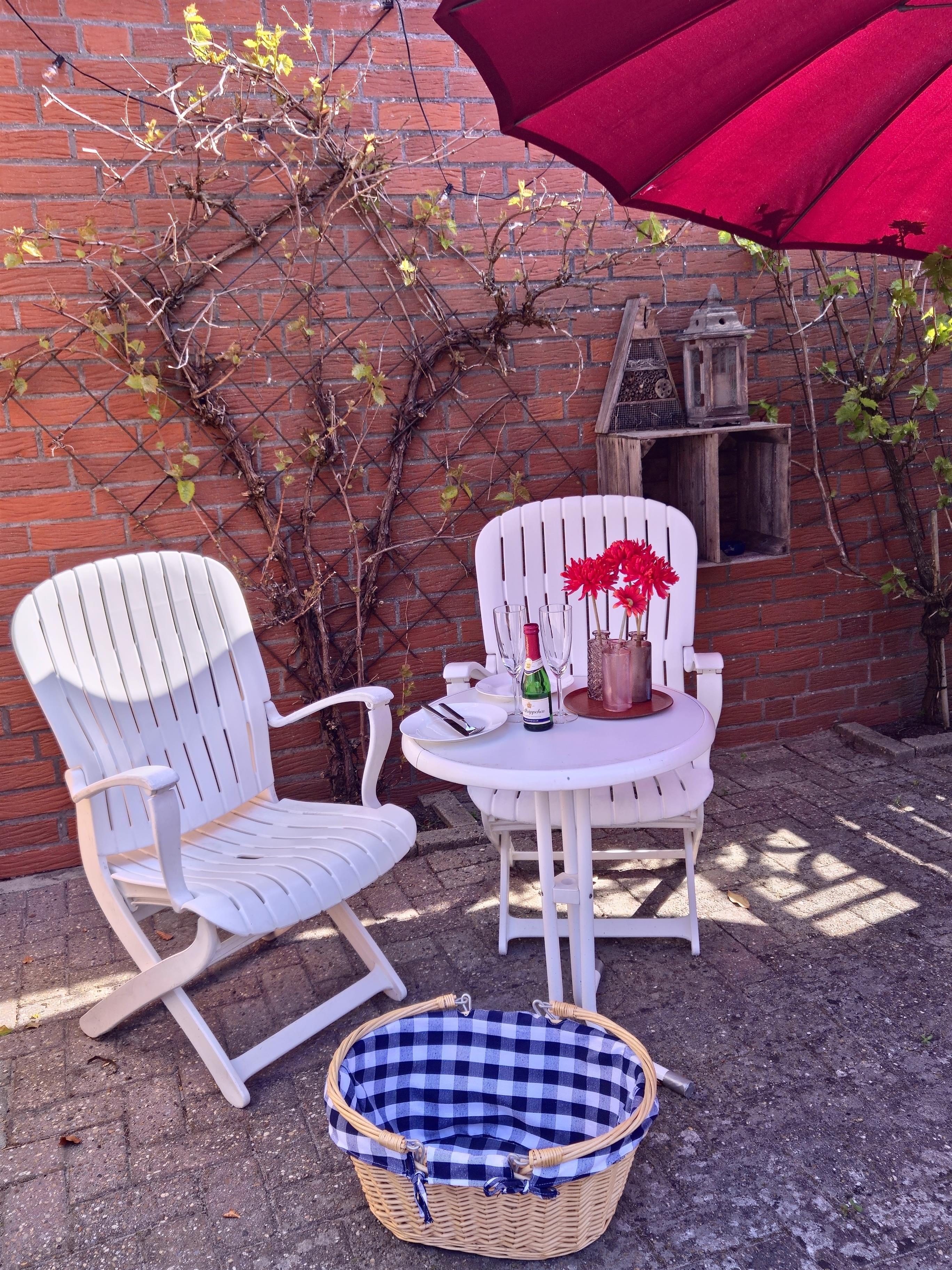 Hochwertiges Inventar, wie ein Boxspringbett. ein Schlafsofa( welches sich als vollwertiges Bett umfunktionieren lässt!), ein Relaxsessel oder ein großer Fernseher laden zum Entspannen und schönen gemeinsamen Stunden ein. Draußen habe ich eine kleine ruhige Terasse zum Verweilen für Sie eingerichtet. Ein Picknickkorb für das Frühstück auf der Terasse befindet sich auf dem Schlafzimmerschrank. Genießen sie eine traditionelle Teezeremonie mit "echtem" Teegeschirr oder kochen Sie sich eine Suppe nach einem durchgepusteten Ausflug in der kleinen Küche.