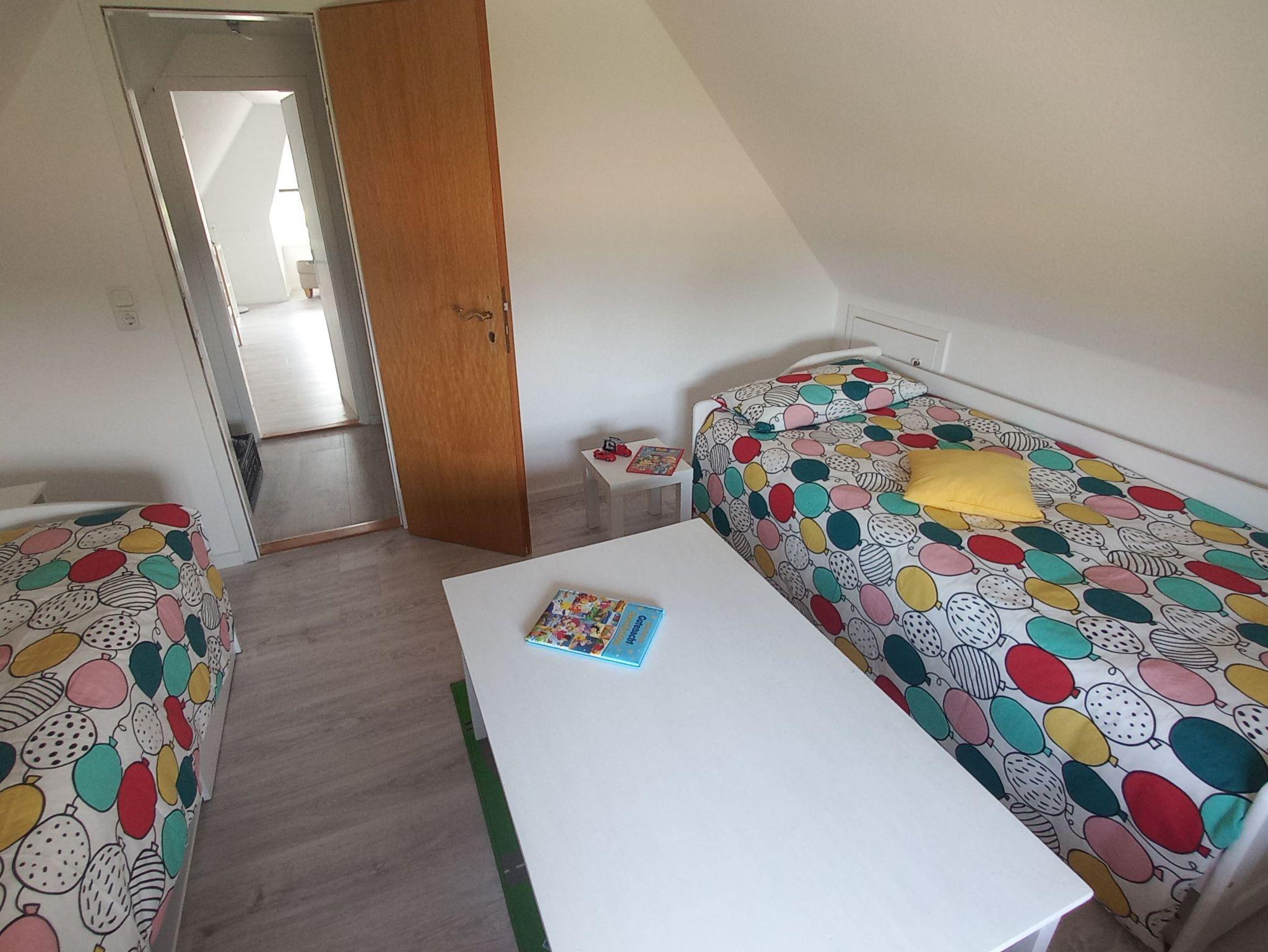 • Schlafzimmer mit 2 Einzelbetten (90x200), Spieltisch und Spielteppich; Bettwäsche zu buchbar