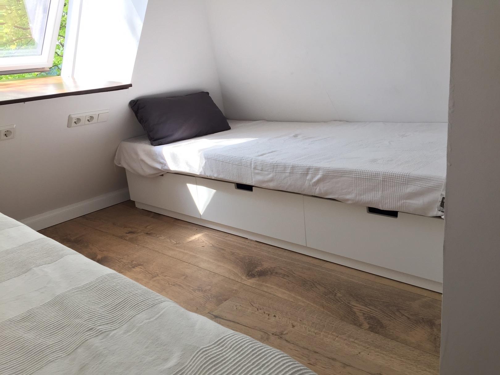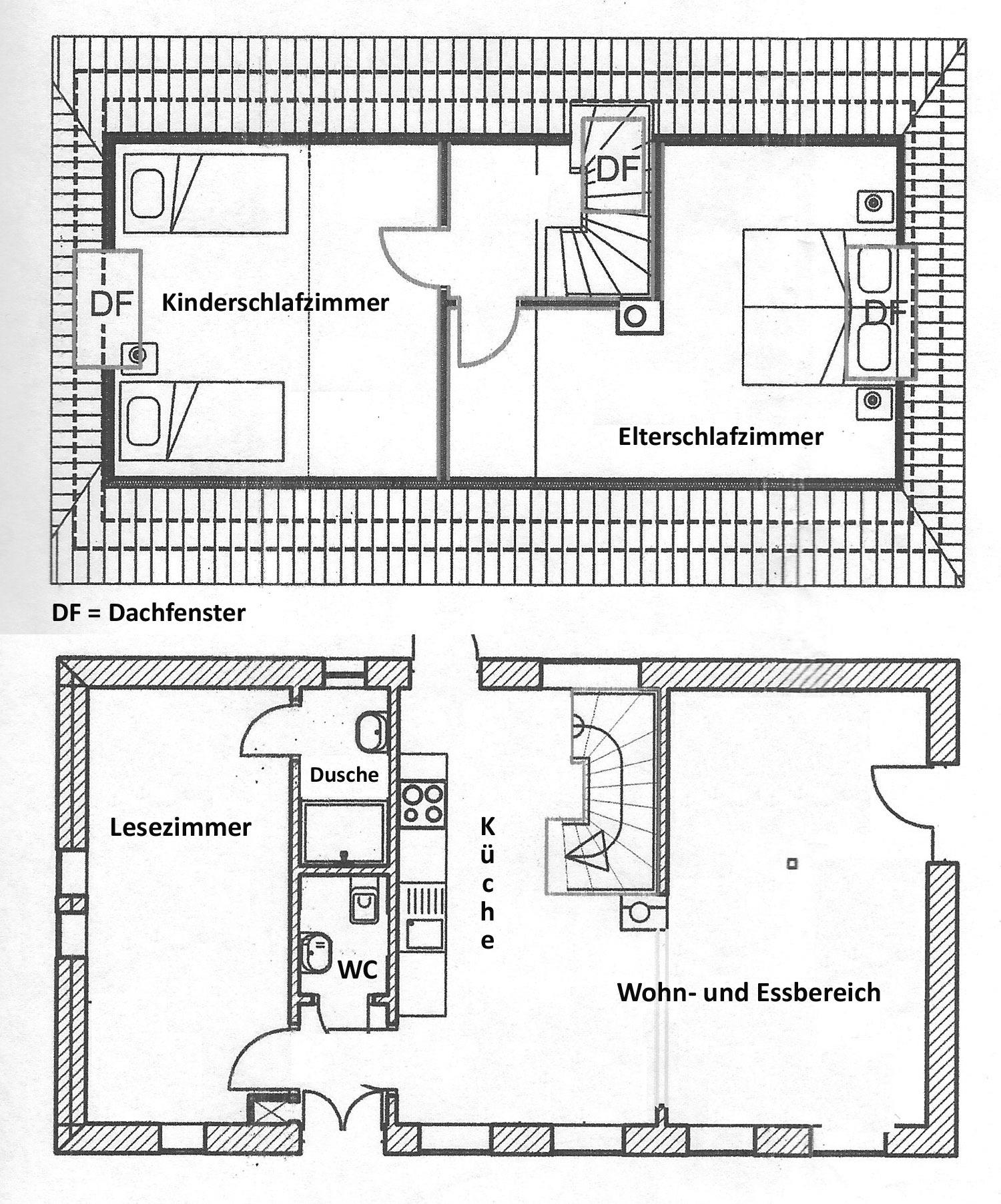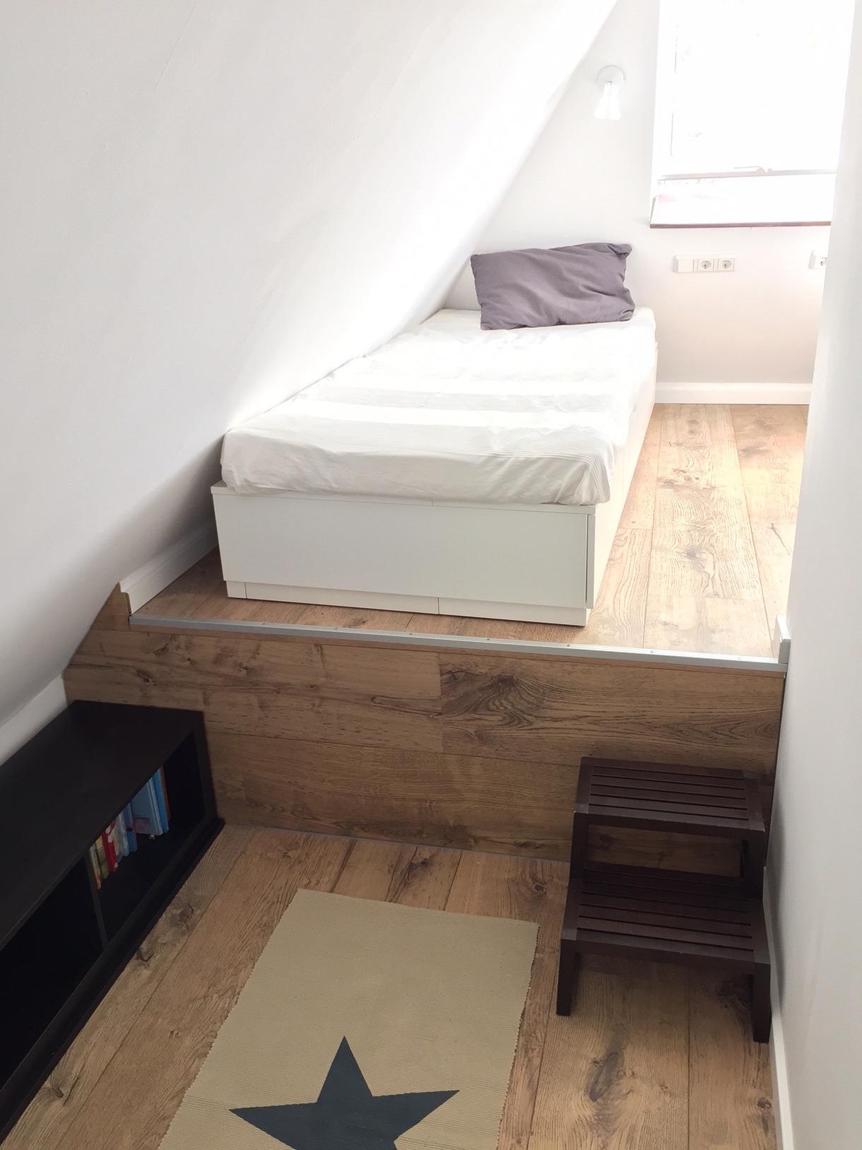 Während der Wintermonate 2017/2018 wurde das Dach ausgebaut, die beiden Schlafzimmer befinden sich getrennt voneinander unter dem Dach. Der Grundriss wird im Erdgeschoss so gestaltet, dass ein großer Wohnbereich mit Kamin entsteht. Das alte kleine Wohnzimmer unten wird dann ein zusätzliches Gästezimmer mit Leseecke.