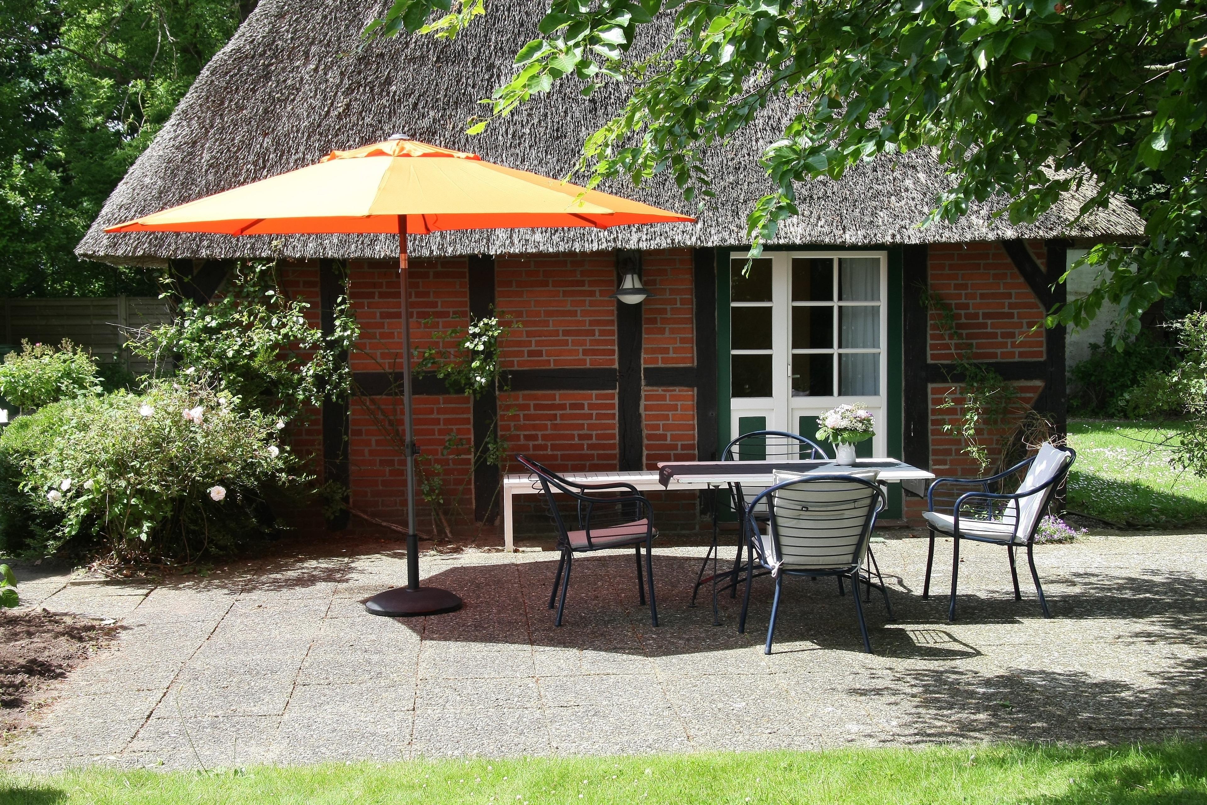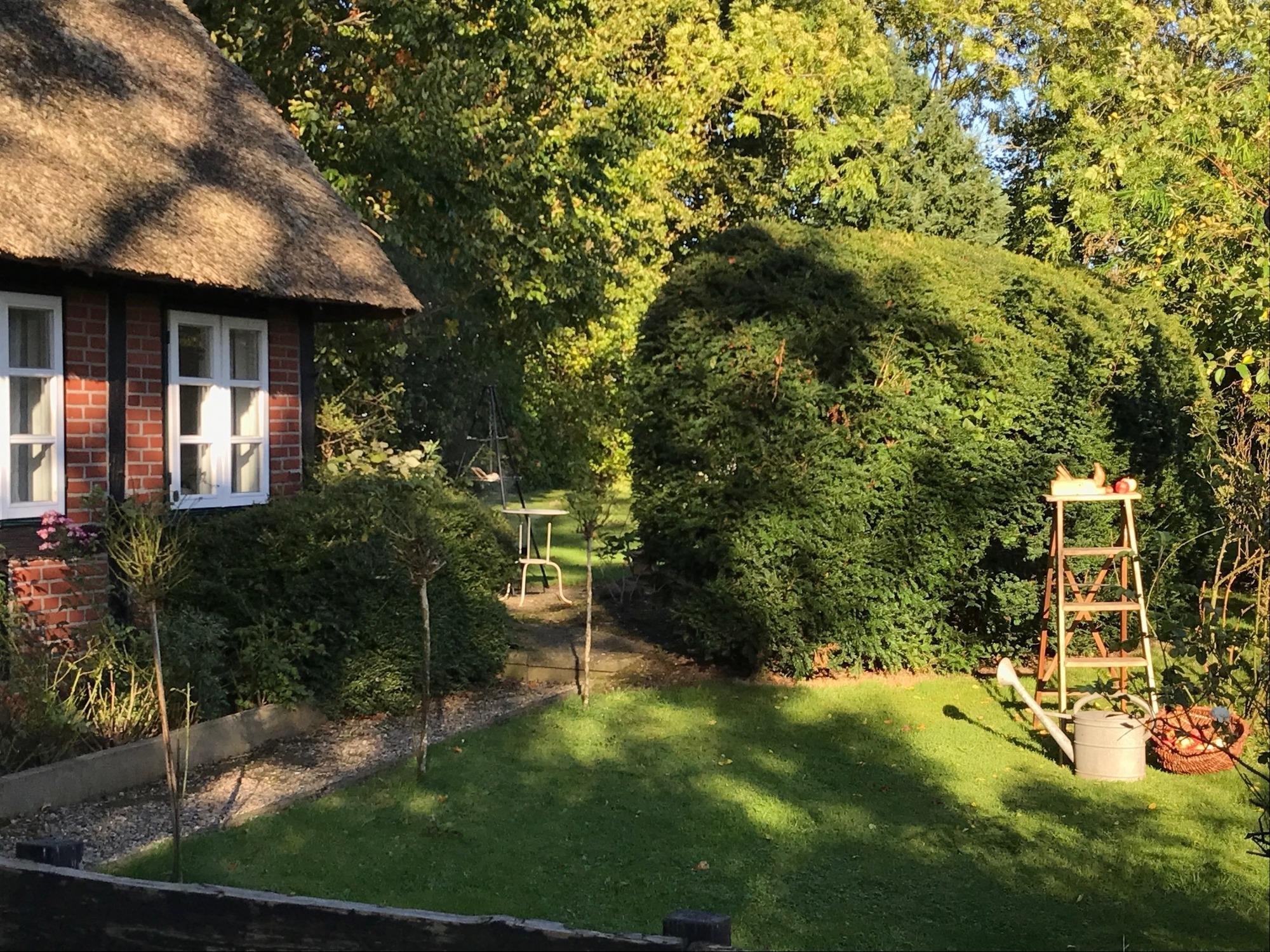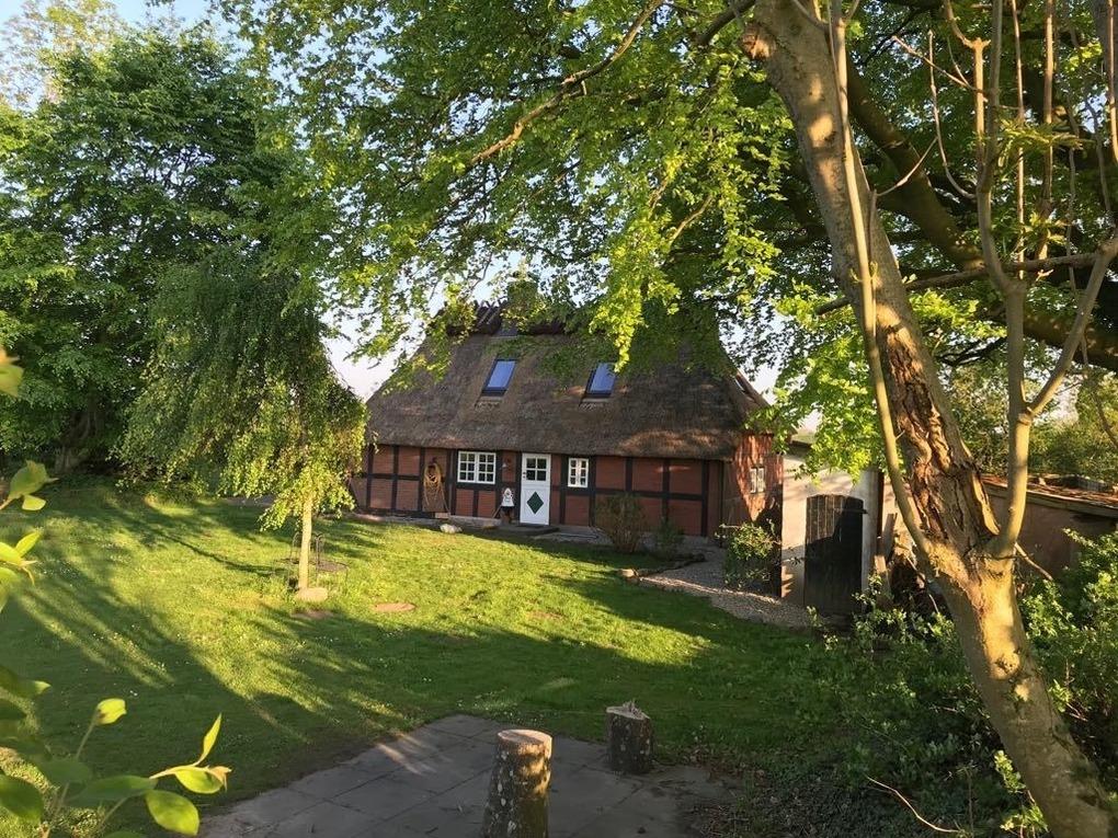 Idyllisches reetgedecktes Fachwerkhaus von 1850 in Alleinlage mit Kamin und großem Garten in Ostseenähe. Ein Hund ist erlaubt.