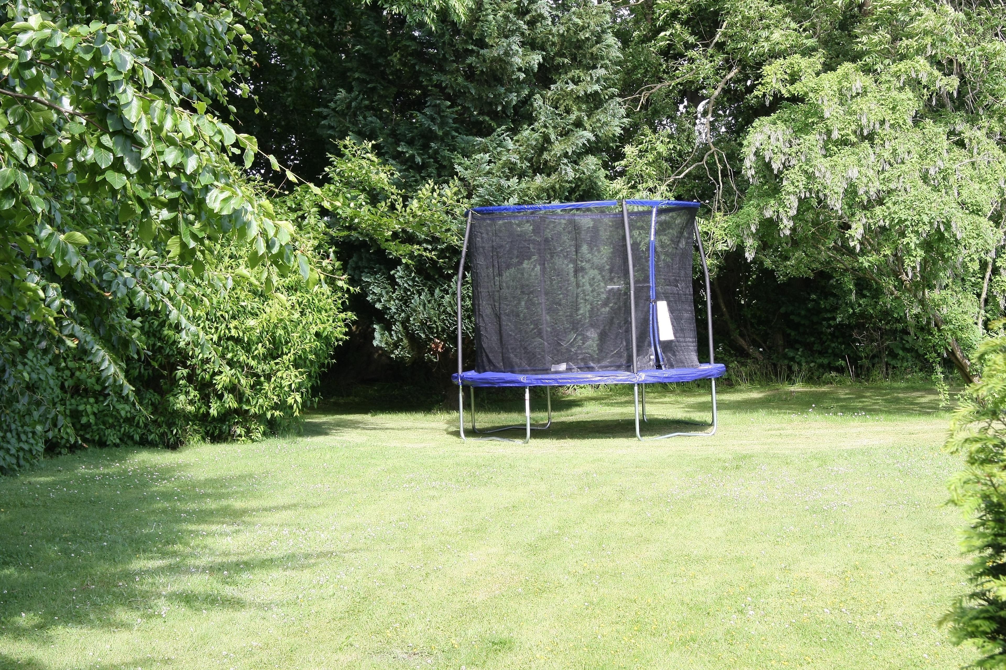 Der weitläufige Garten lädt mit Gartenmöbeln und Grill zum Entspannen ein.
