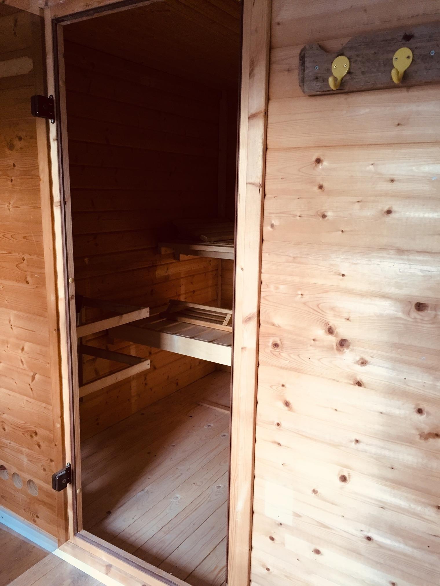 Die Sauna kann genutzt werden und kostet pro Stunde 8€. Sie wird mit einem Münzautomat (1€ Münzen) bedient.