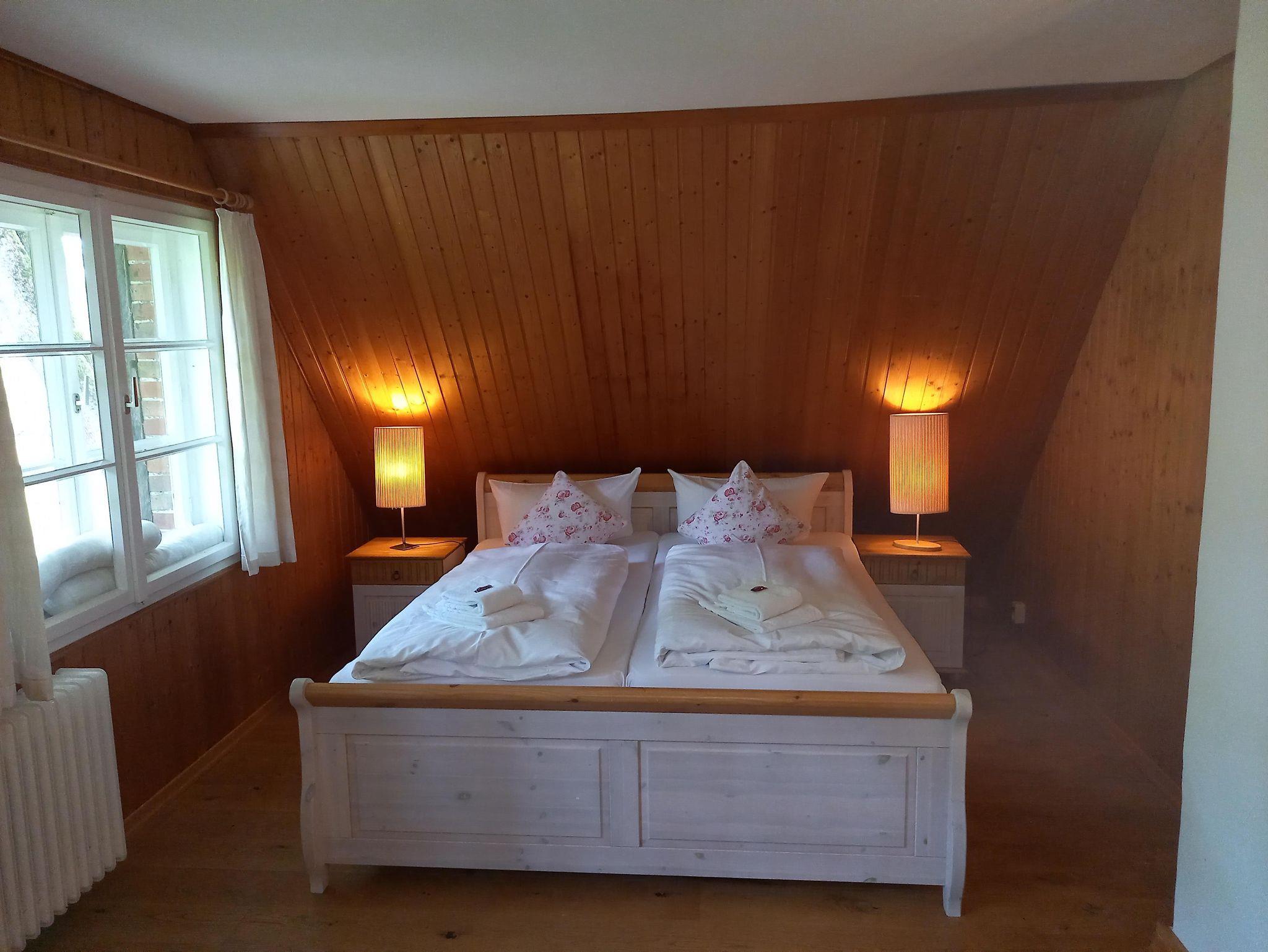 Mitten im Grünen, direkt an das Hotelgrundstück angrenzend und mit Blick auf den hauseigenen Natursee, liegt dieses romantische Ferienhaus. Die rustikale Einrichtung des 120 qm großen Hauses mit Badezimmer, Wohnküche, großzügigem Wohnbereich mit offenem Kamin und Terrasse bietet ein gemütliches Ambiente für den Urlaub unter Freunden oder mit der ganzen Familie.