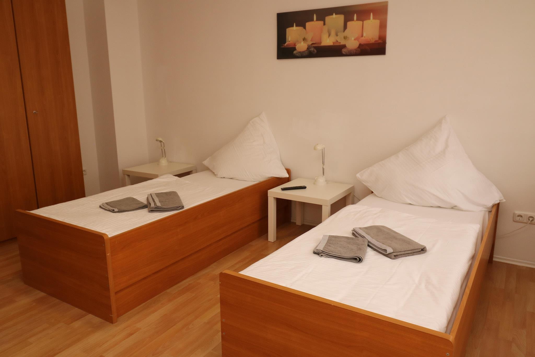 Denne innbydende ferieleiligheten i Essens Frohnhausen-distrikt er gjennomtenkt designet for 3 gjester, og tilbyr en avslappende base for messebesøk eller byrømninger. Ligger i 3. etasje, og har en privat terrasse, en balkong og et koselig salongsett – perfekt for å nyte måltider eller drinker utendørs. Innvendig har stue/soveområdet to enkeltsenger, TV og sittehjørne, mens det andre soverommet har to enkeltsenger til. Badet er utstyrt med dusj, servant og toalett, og kjøkkenkroken har kaffetrakter og vannkoker for lett matlaging. Gjestene drar nytte av betalt tilgang til vaskemaskin og tørketrommel, parkering på stedet og nærhet til nødvendigheter som butikker og restauranter (200 m). Sentrum og Essen HBF ligger bare 3 km unna, og Messe Essen er en kort 5 km kjøretur unna. Med enkel tilgang til Düsseldorf (40 km) og Dortmund (50 km) flyplasser, blander denne leiligheten komfort, bekvemmelighet og sjarm.