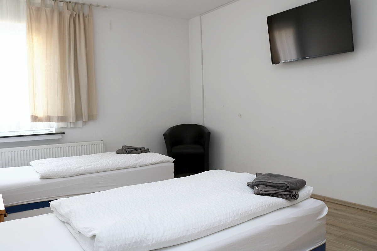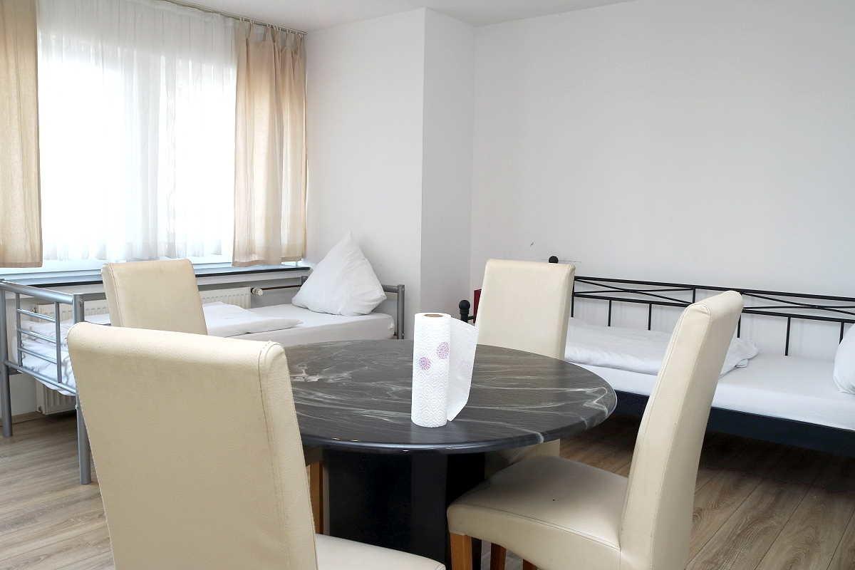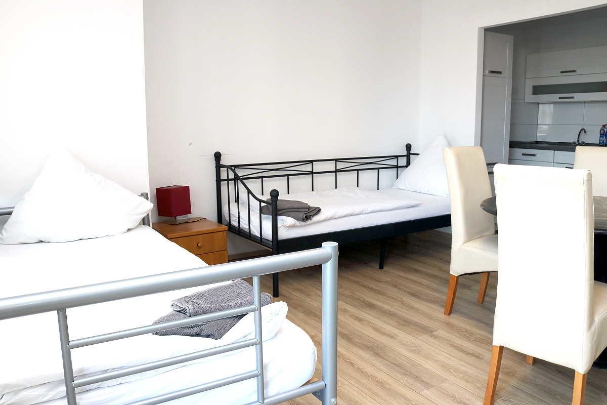 Apartment mit 1 Schlafzimmer für max. 2 Personen (2 Einzelbetten), Wohnraum mit 2 Einzelbetten und Küchenzeile, Duschbad. Geeignet für Städte- und Geschäftsreisende, Messemitarbeiter und Monteure.