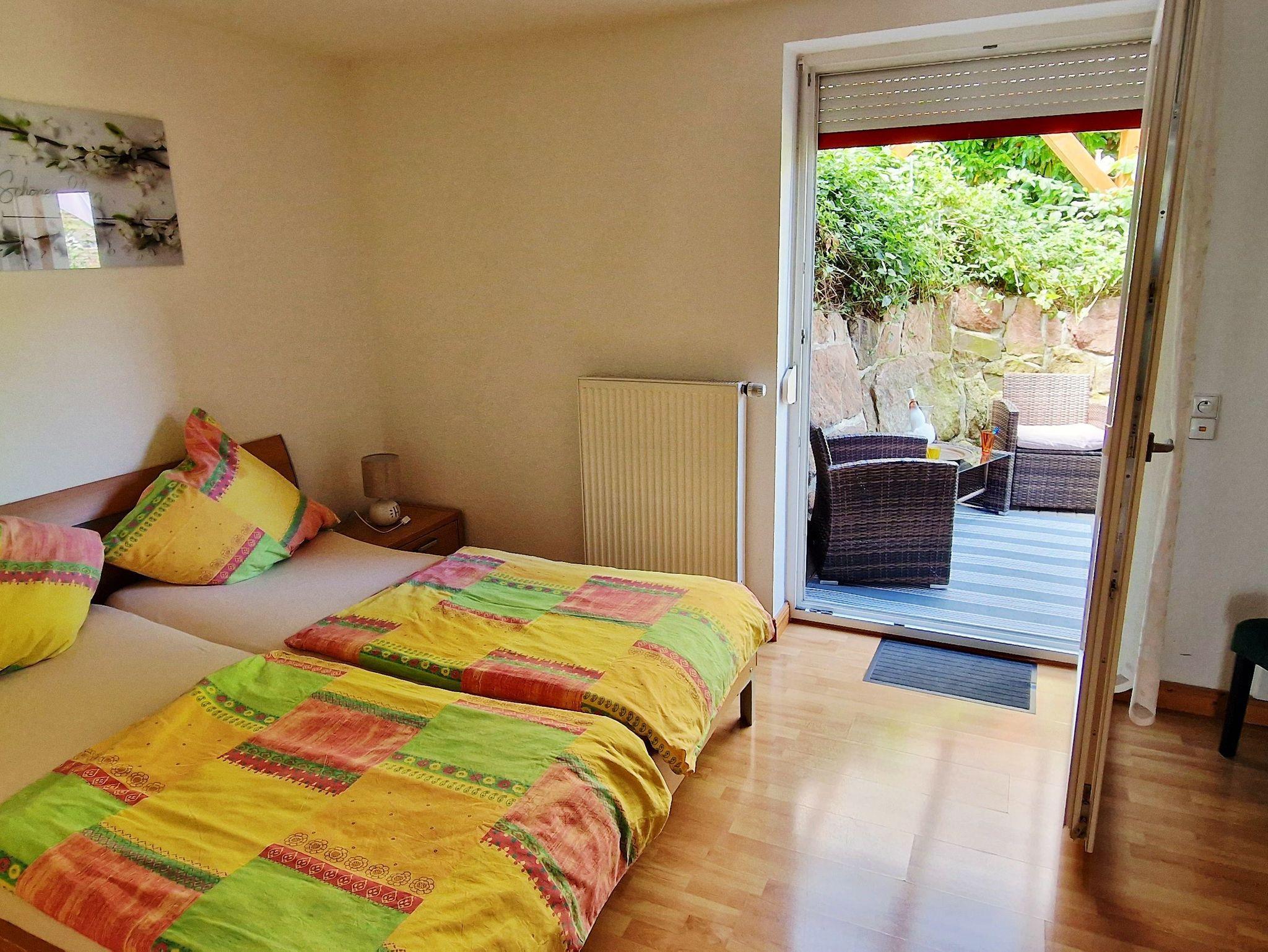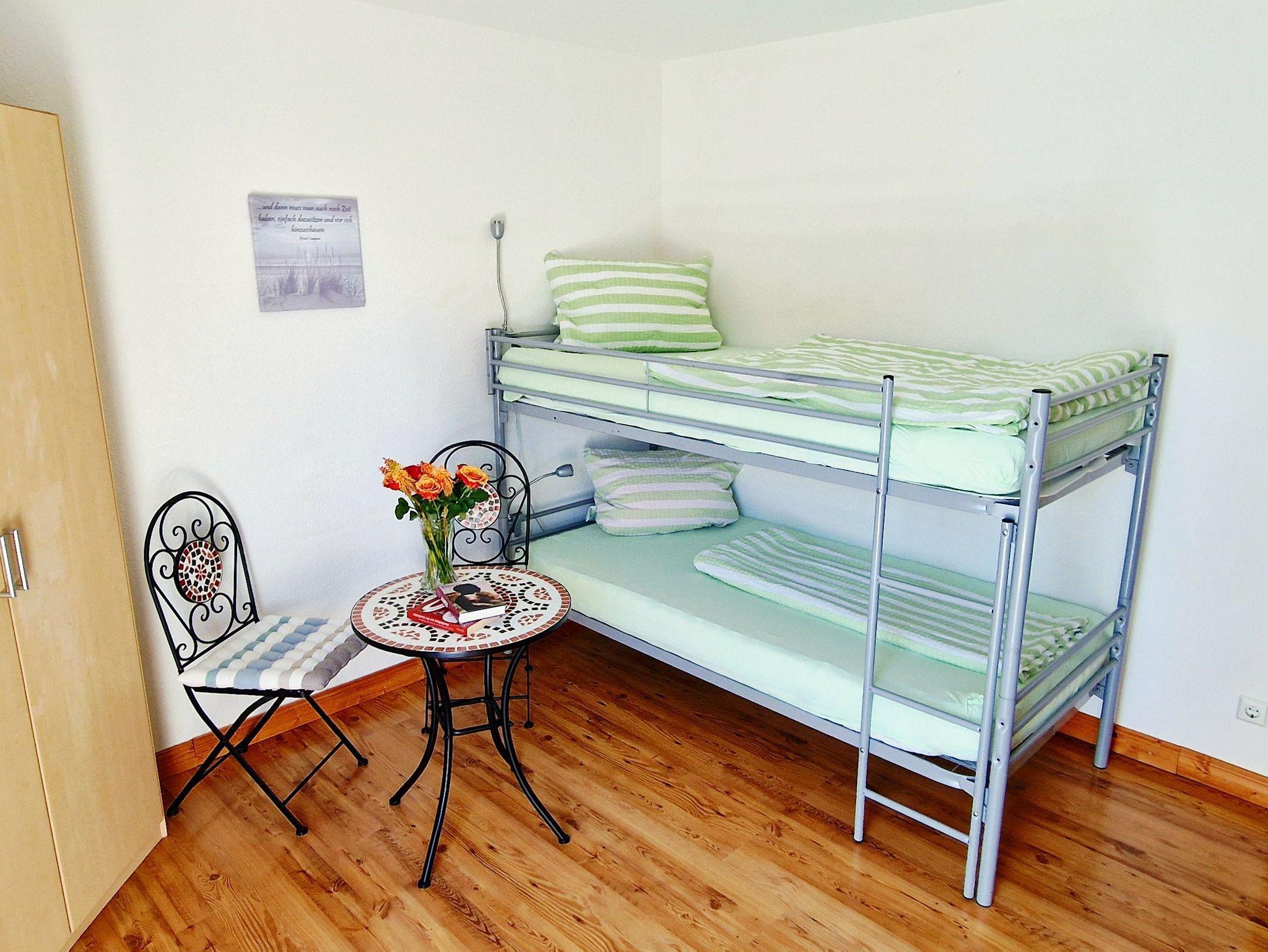 Die Ferienwohnung bietet ein Schlafzimmer mit einem Doppelbett sowie ein Schlafzimmer mit 3 Schlafplätzen.