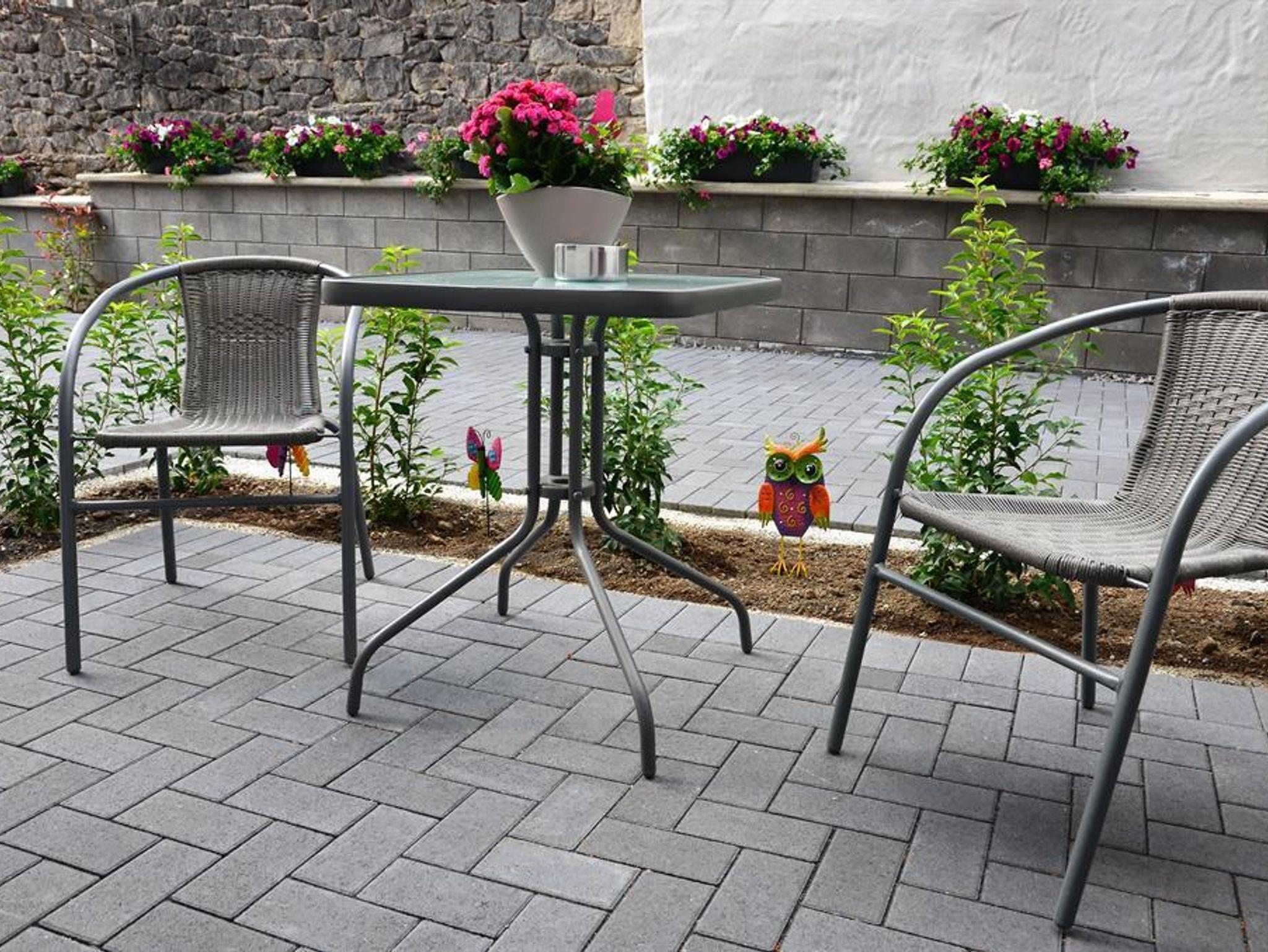 Große und ruhige Terrasse zum gemütlichen Verweilen für unsere Gäste.