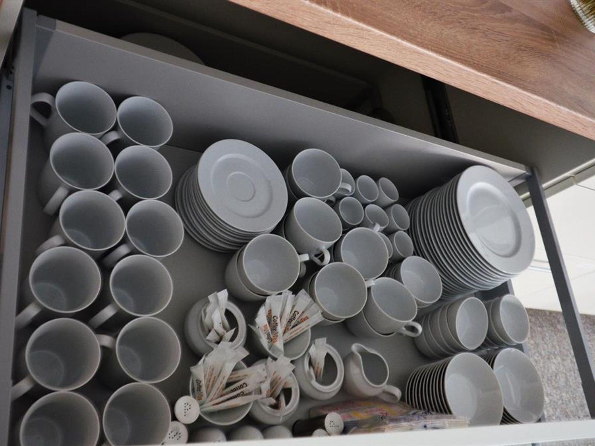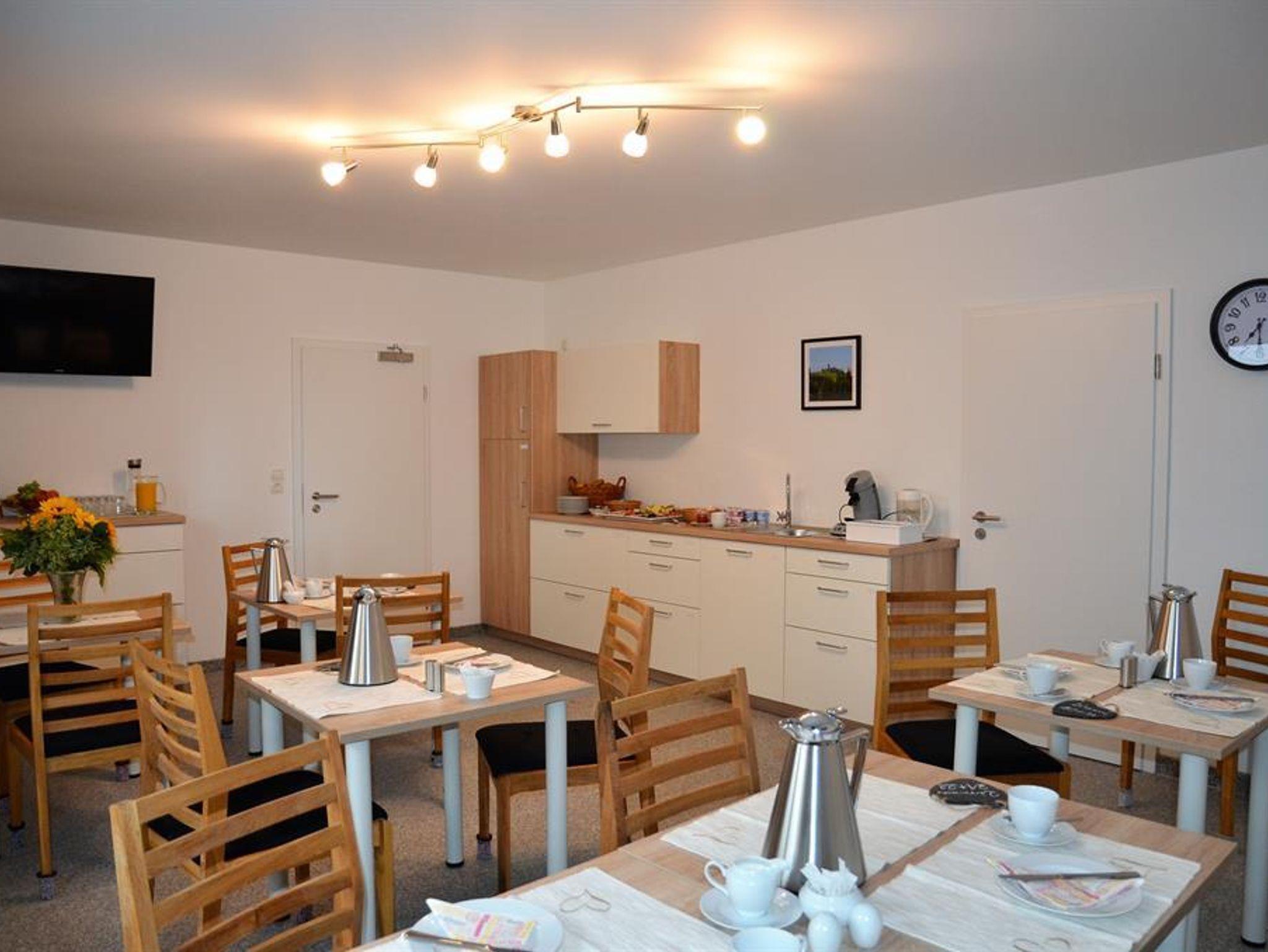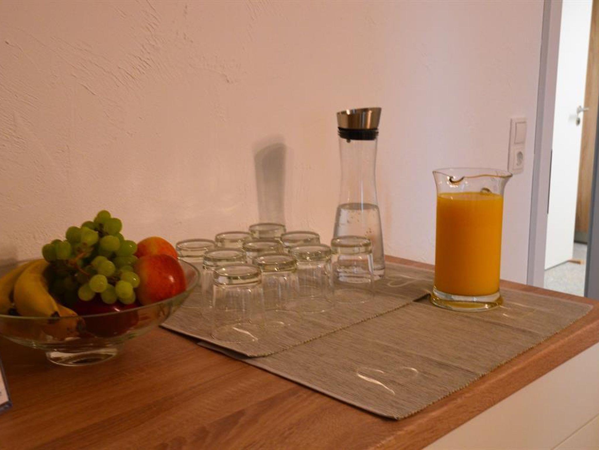 Im Frühstücks- und Aufenthaltsraum stehen Ihnen ein Getränkekühlschrank, Gästekühlschrank, Senseo Kaffeepadmaschine, Geschirr, Gläser und Besteck zu Verfügung.