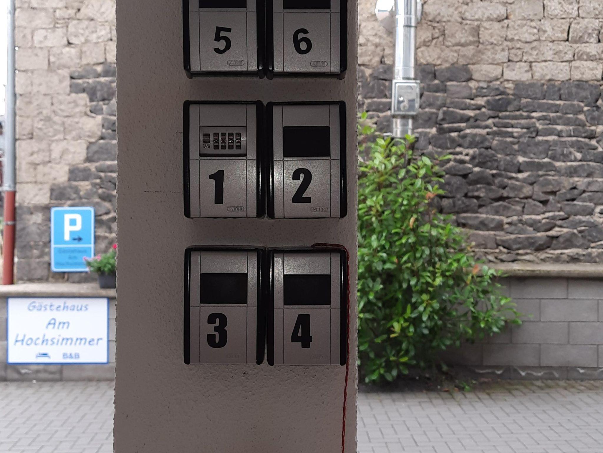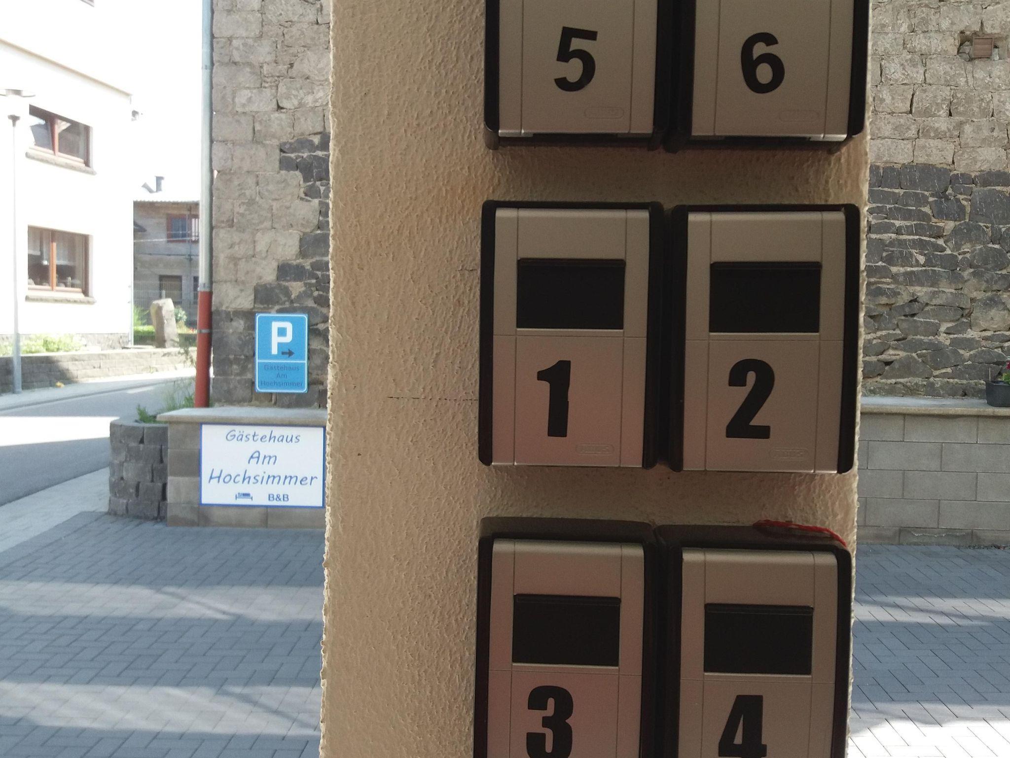 Zum Gästehaus gehören 4 kostenfrei Parkplätze und zwei Garagen, 1 x mit E-Auto-Ladestation (Wallbox).