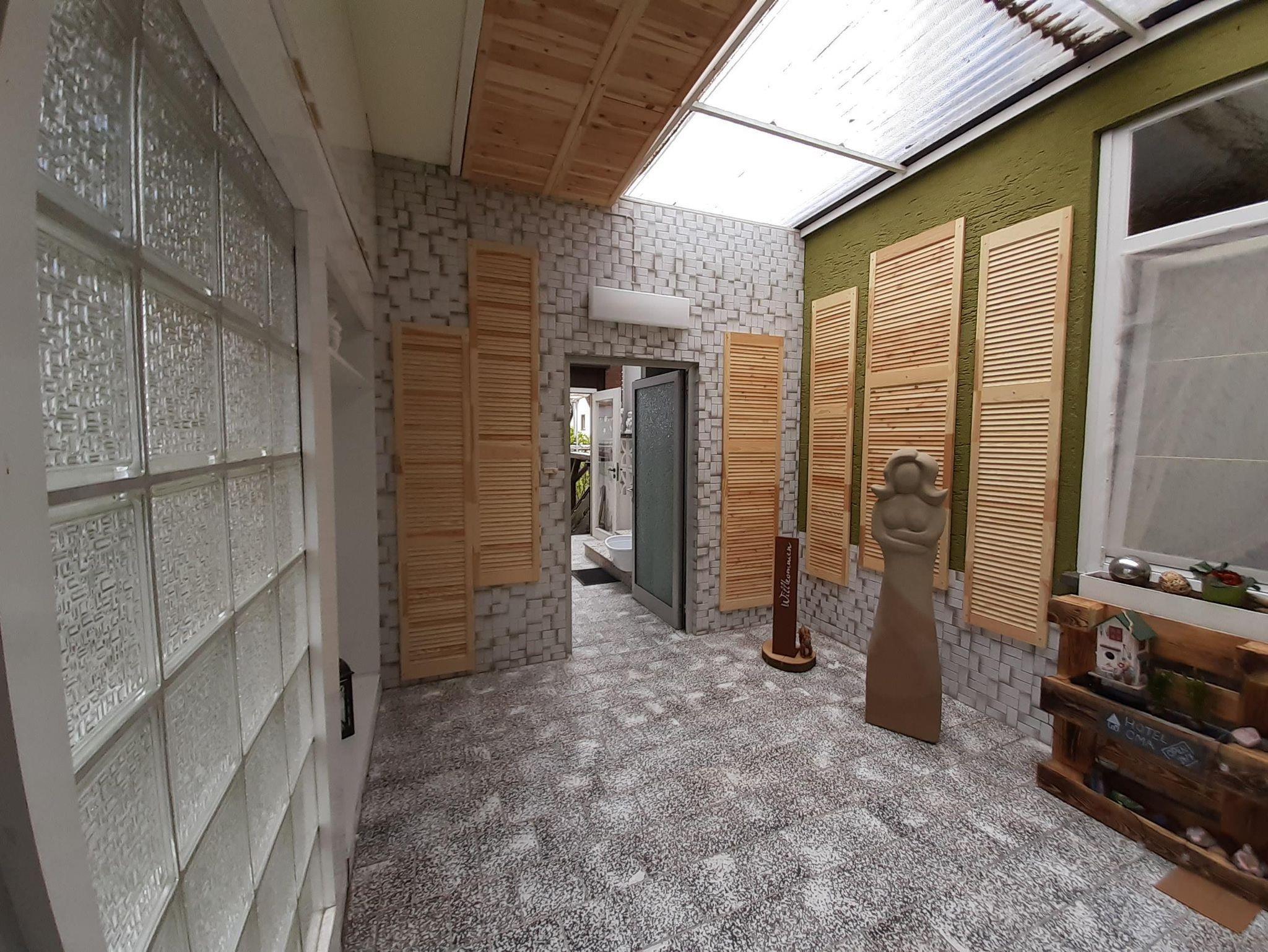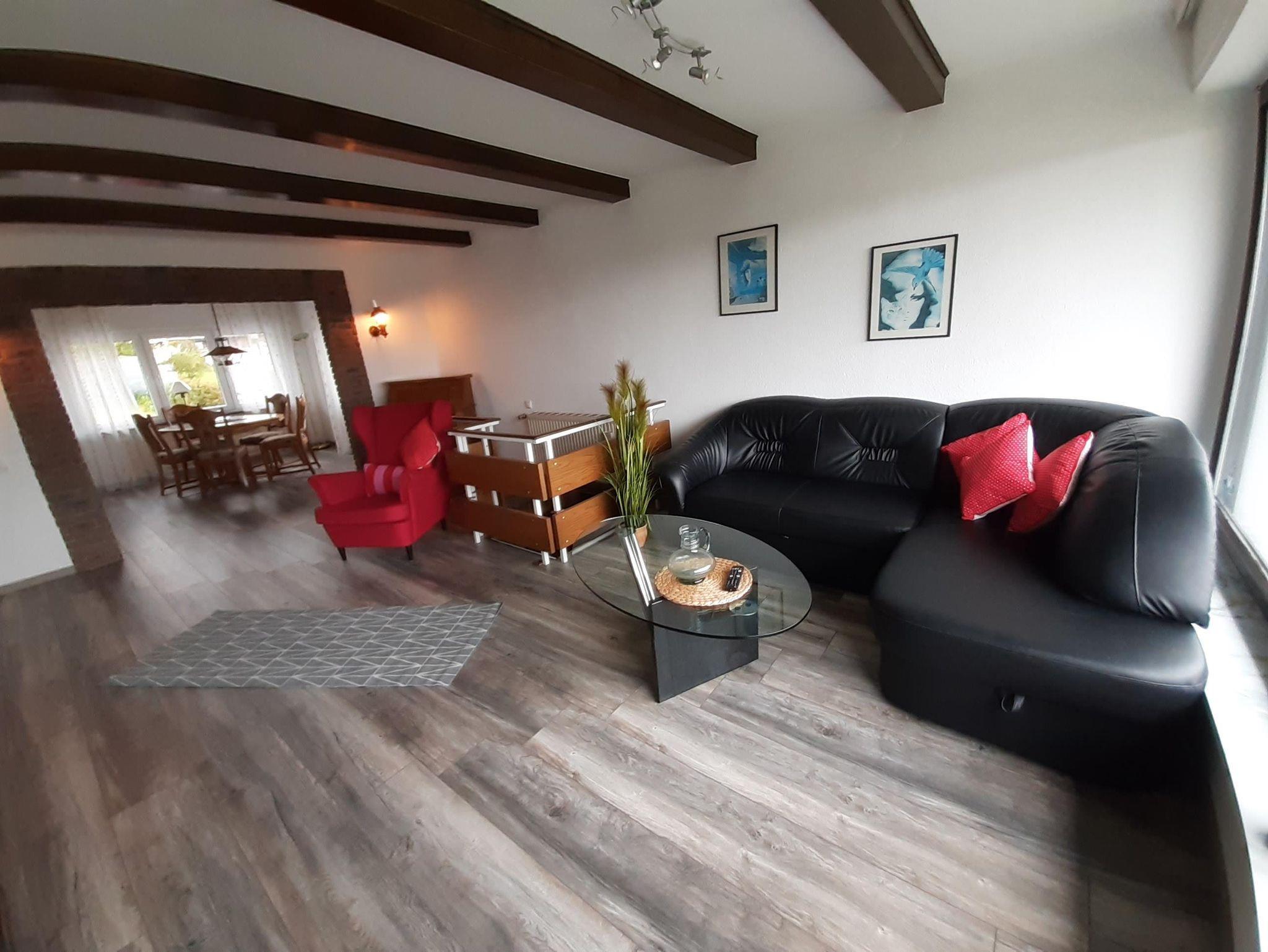 Das neu renovierte Ferienhaus bietet Ihnen und Ihren Lieben Platz auf 120 m² Wohnfläche. Es verfügt über 2 Schlafzimmer, wobei das erste sich im Erdgeschoss befindet und das zweite als Highlight in der liebevoll gestalteten ´´Genovevahöhle´´ untergebracht ist. Die große Küche bietet Platz zum Frühstücken mit insgesamt 4 Personen; und falls Sie einmal mehr Platz benötigen, nutzen Sie einfach das angrenzende Esszimmer. Das lichtdurchflutete Wohnzimmer lädt zum Verweilen ein. Nicht nur wegen der gemütlichen großen Couch sondern insbesondere durch die Glasfront, welche sich über die gesamte Wandlänge erstreckt. Aus der Diele gelangen Sie in das stilvolle Badezimmer mit Dusche und WC, sowie in einen Abstellraum mit Waschmaschine etc. Genießen Sie die Vorzüge eines großen Garten mit Sonnenterrasse und Fischteich oder relaxen Sie in der überdachten Lounge Ecke.