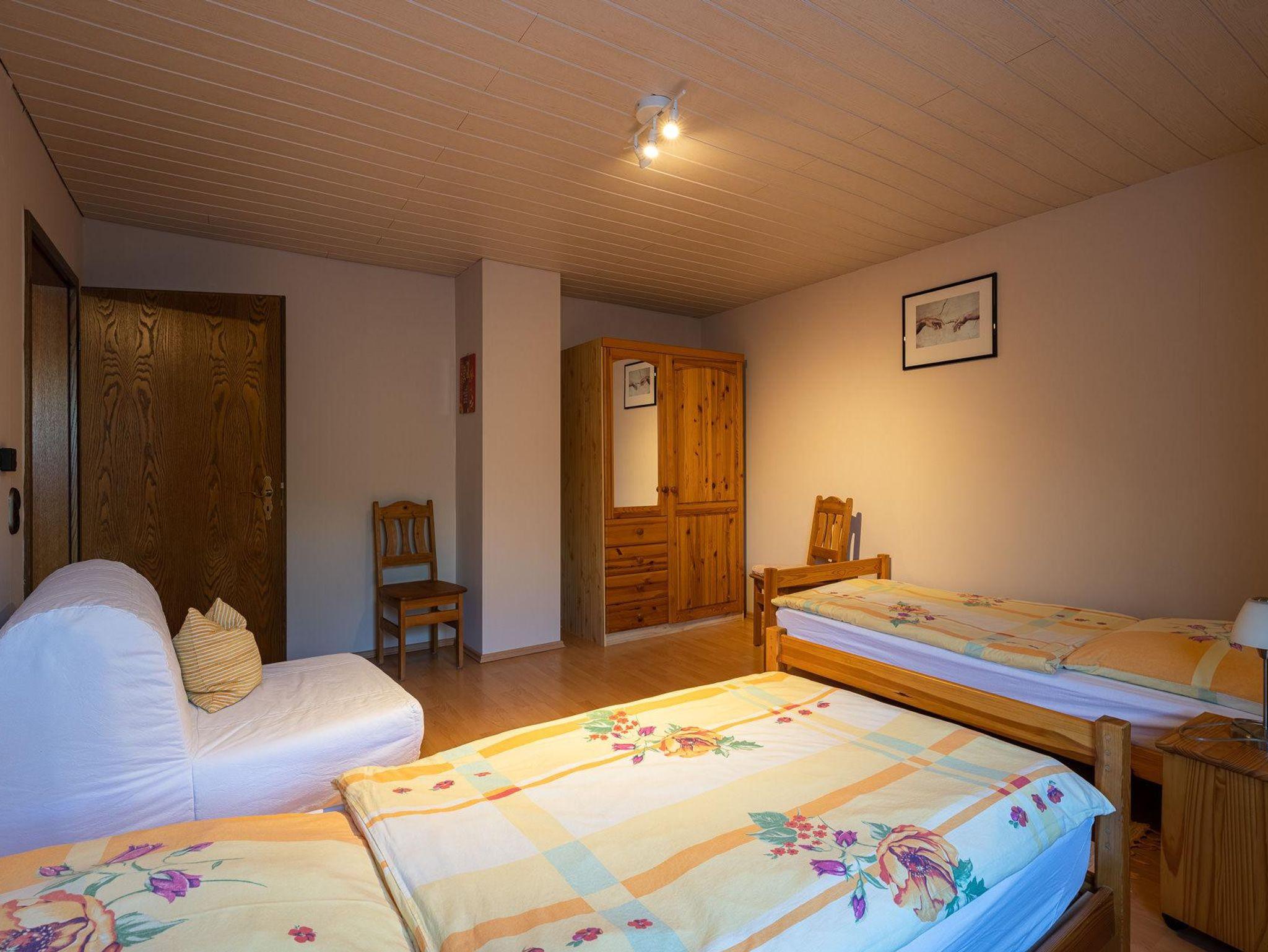 • 1 Schlafzimmer mit 2 Einzelbetten. Im Wohnzimmer ist ein Zustellbett möglich.