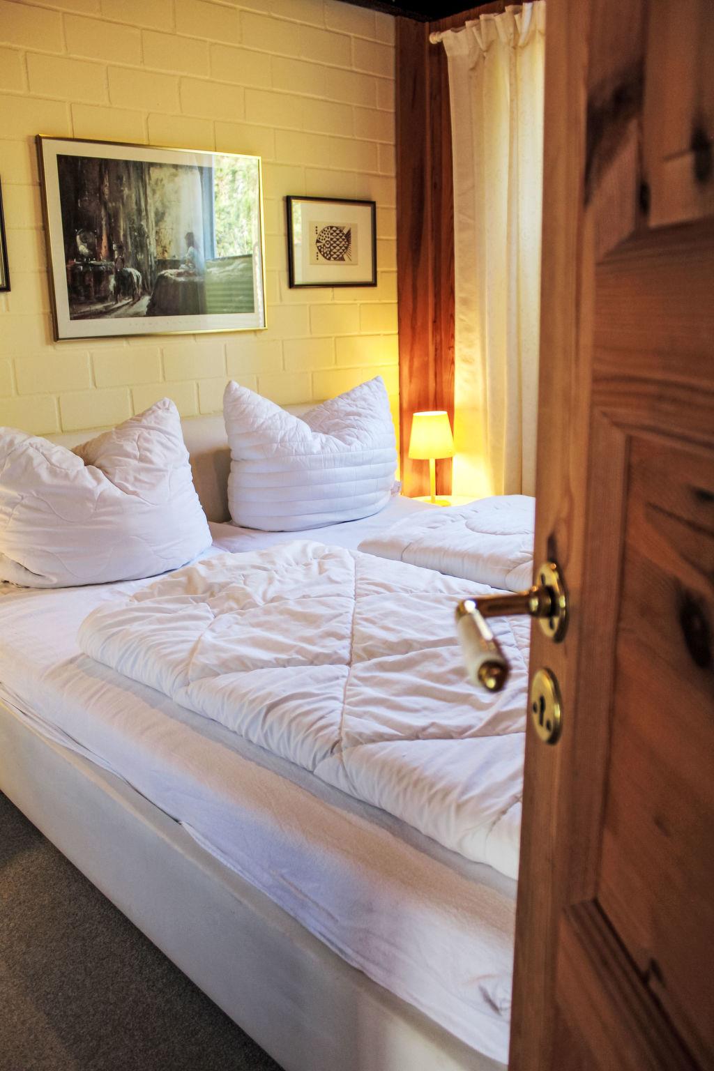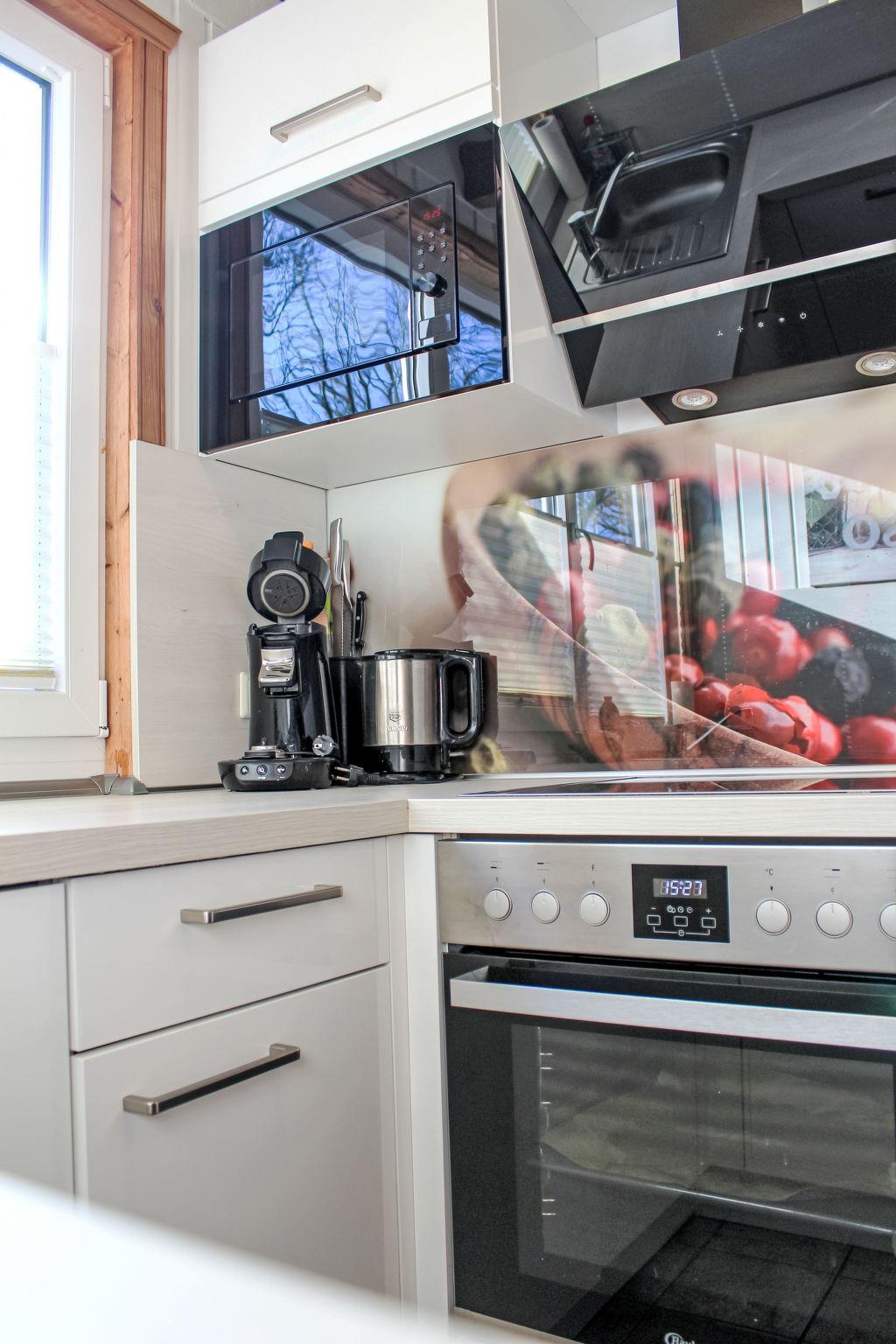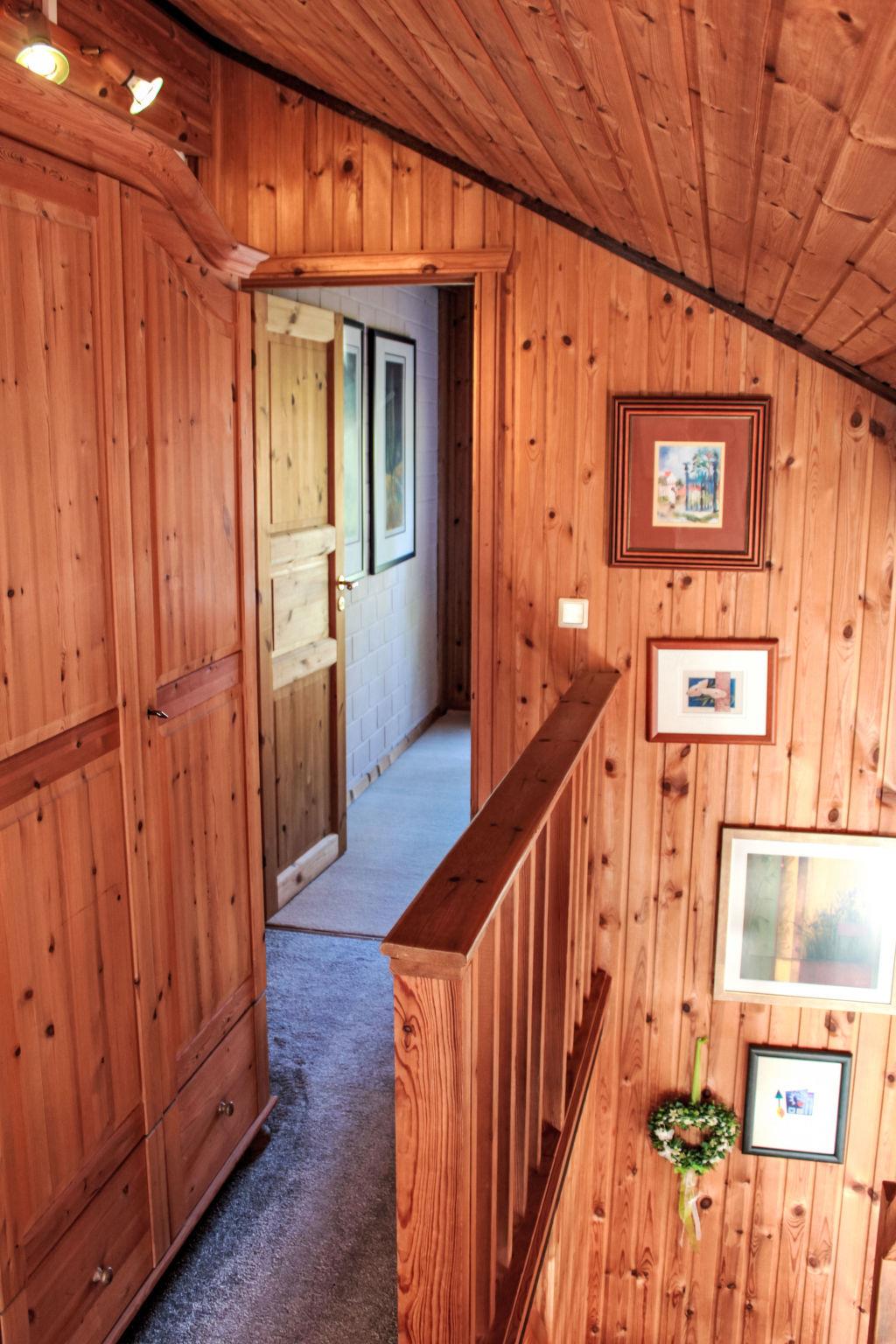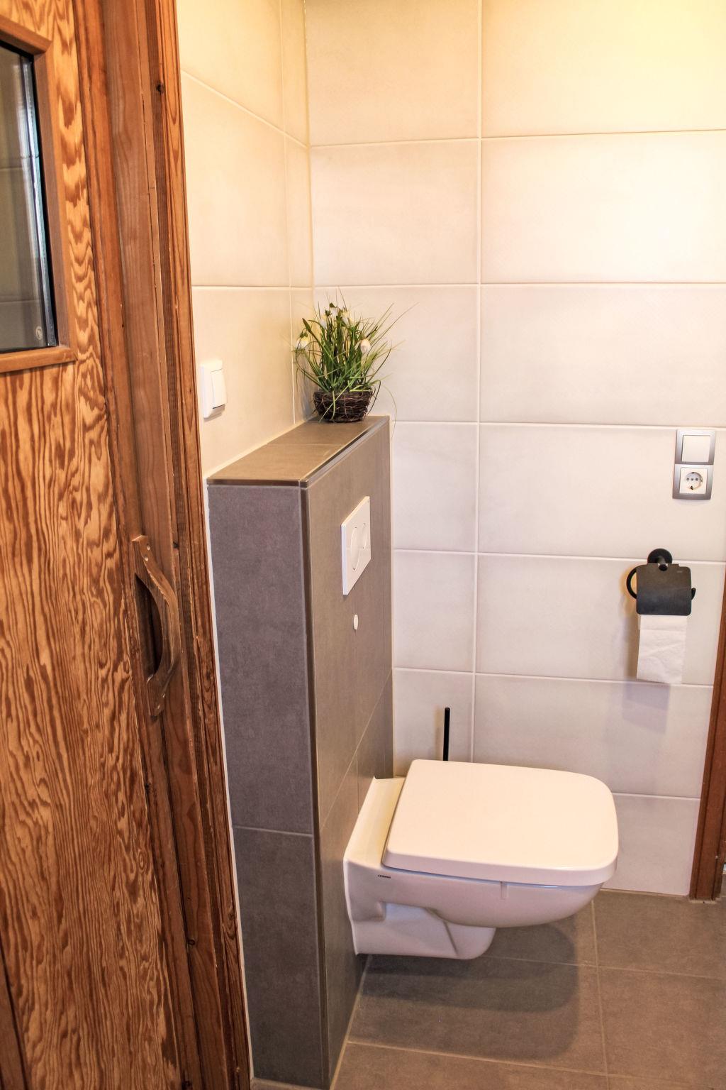 4-room semi-detached house 80 m2. Cosy furnishings: living room with 1 double sofabed (2 x 90 cm, length 200 cm), TV. 1 room with 1 french bed (2 x 90 cm, length 200 cm). Kitchenette (oven, dishwasher, 4 ceramic glass hob hotplates, toaster, kettle, microwave, freezer) with dining table. Shower/WC, sep. WC, Sauna. Electric heating, wood heating, floor heating. Upper floor: 1 room with 1 bed (90 cm, length 200 cm). 1 room with 1 double bed (2 x 100 cm, length 200 cm). Terrace 20 m2. Terrace furniture. Beautiful view of the mountains. Facilities: baby cot, hair dryer. Internet (WiFi, free). Please note: non-smoking house. 1 pet/ dog allowed. Smoke alarm.